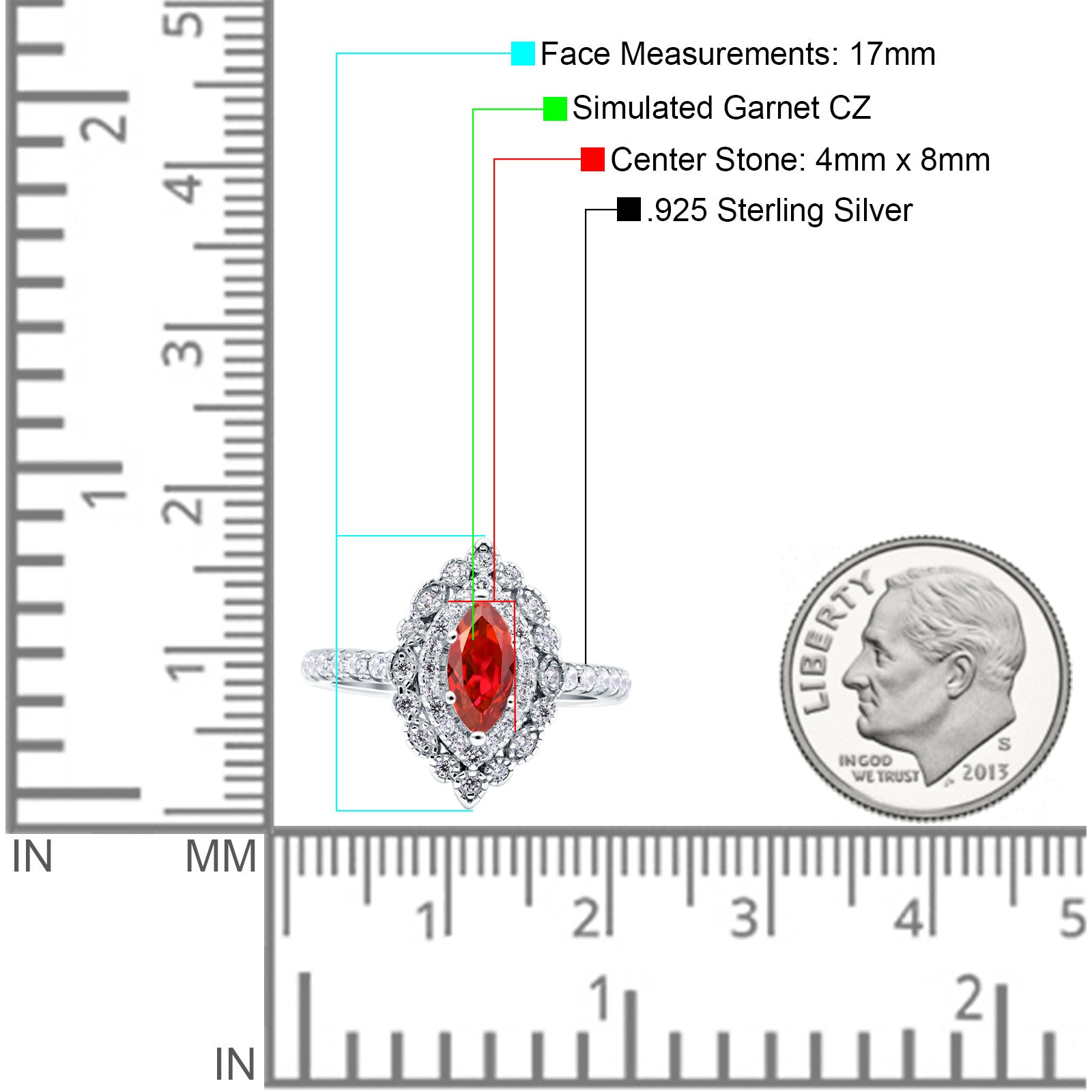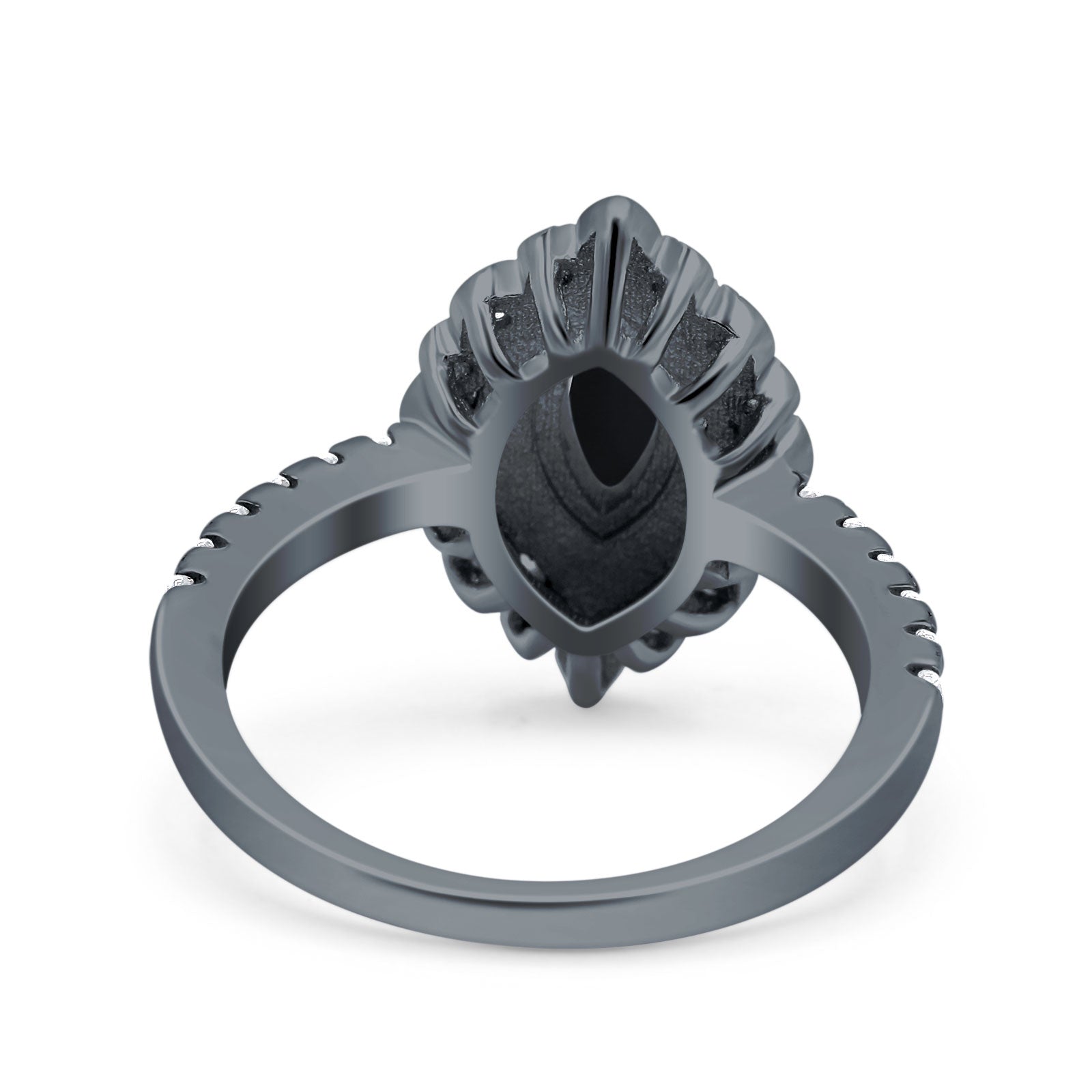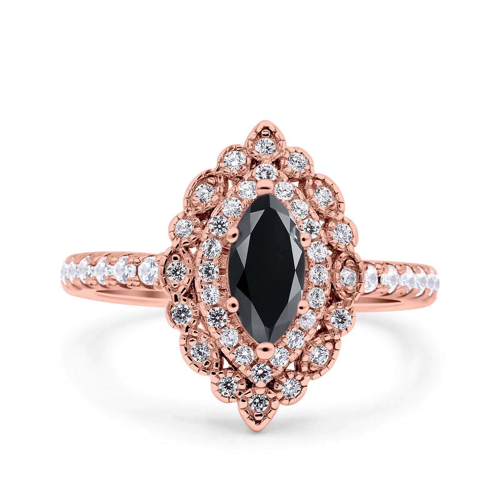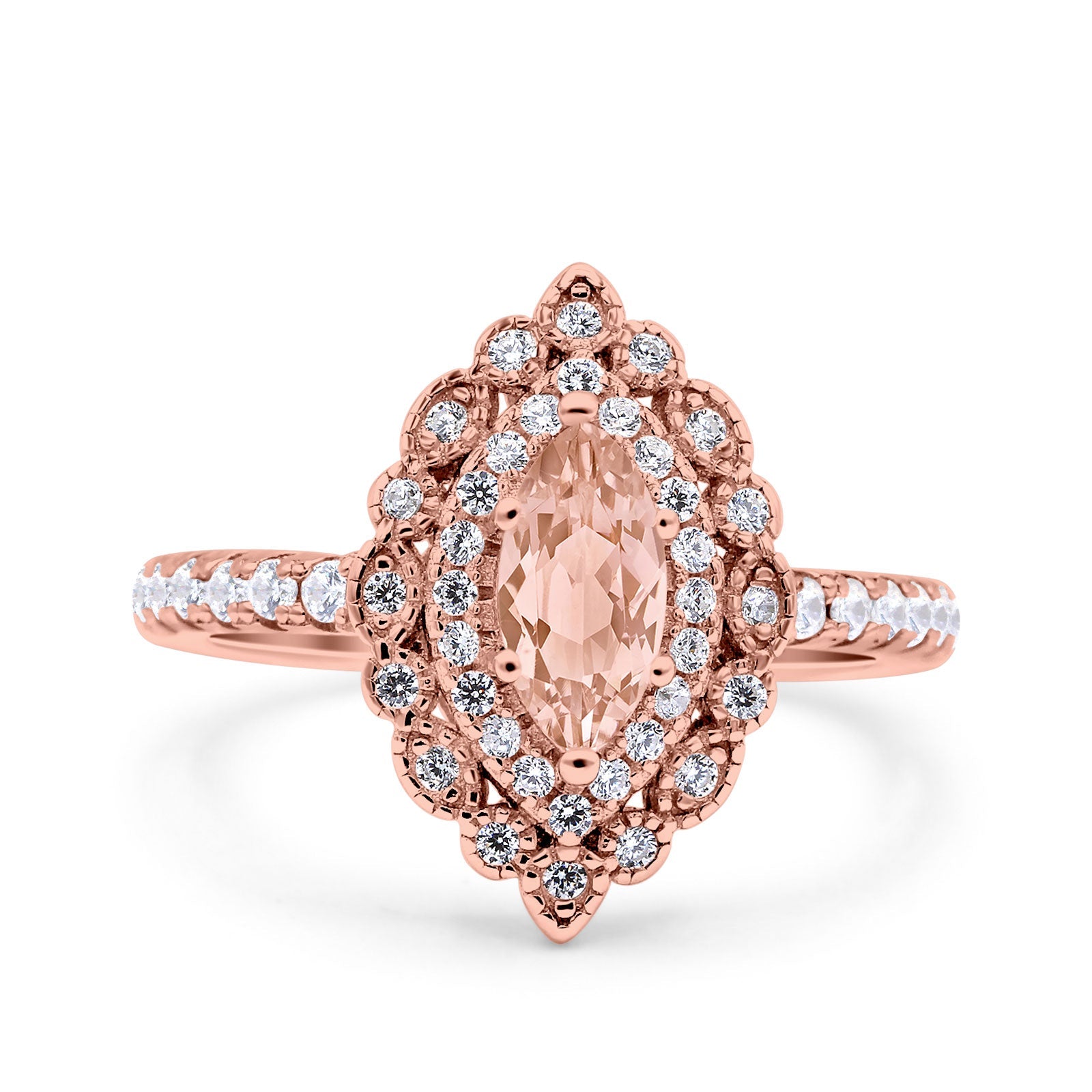Halo Vintage Style Art Deco Solitaire Accent Marquise Wedding Engagement Ring Round Simulated Cubic Zirconia 925 Sterling Silver