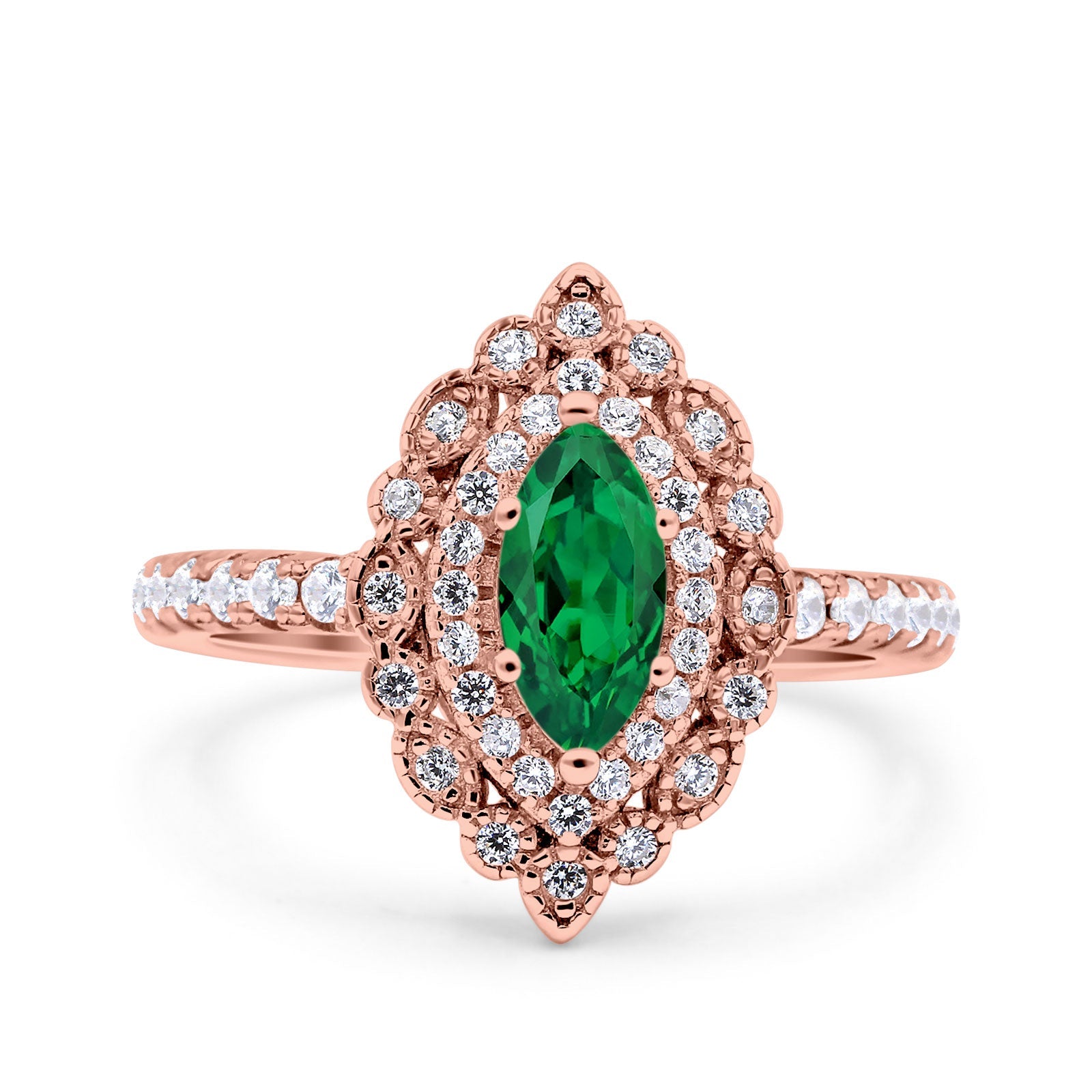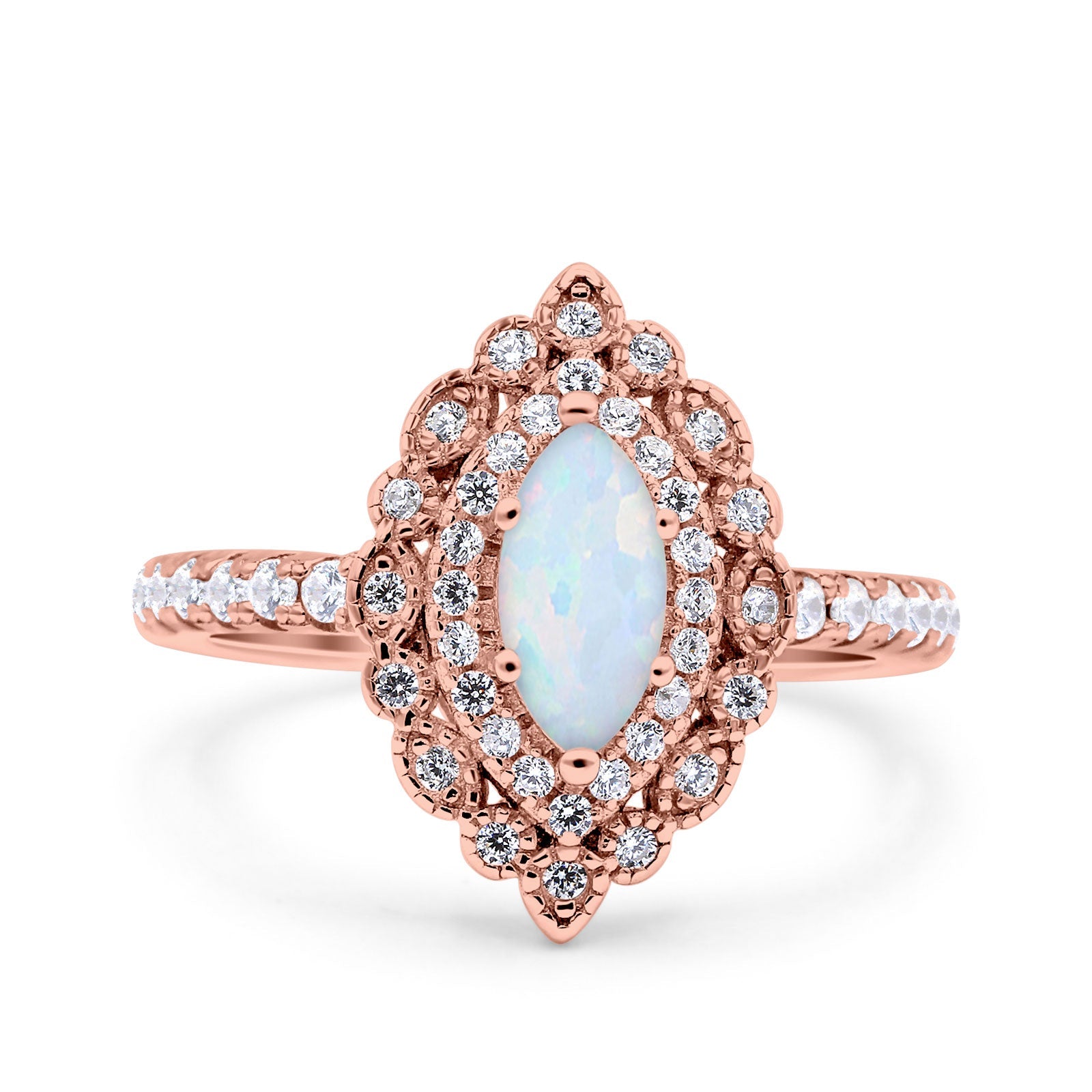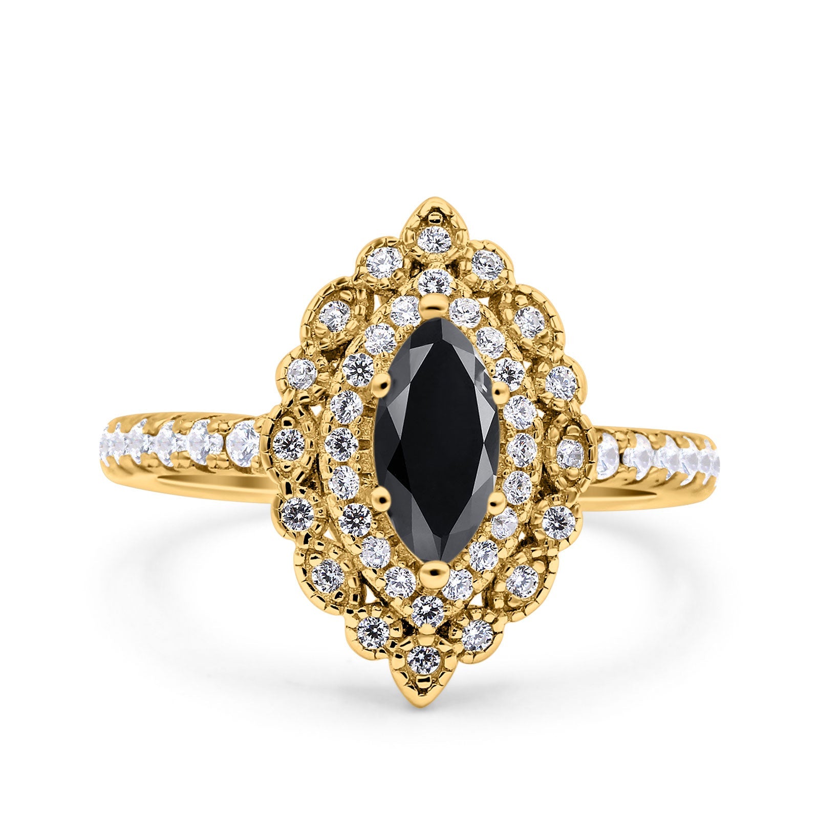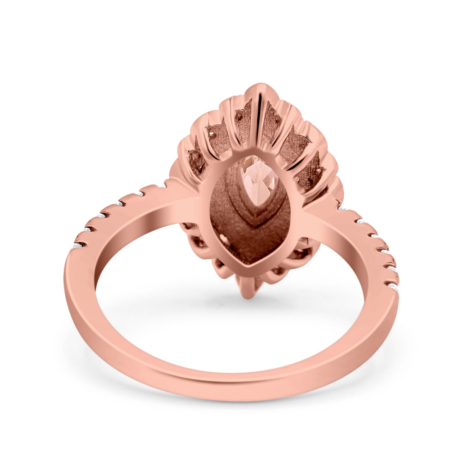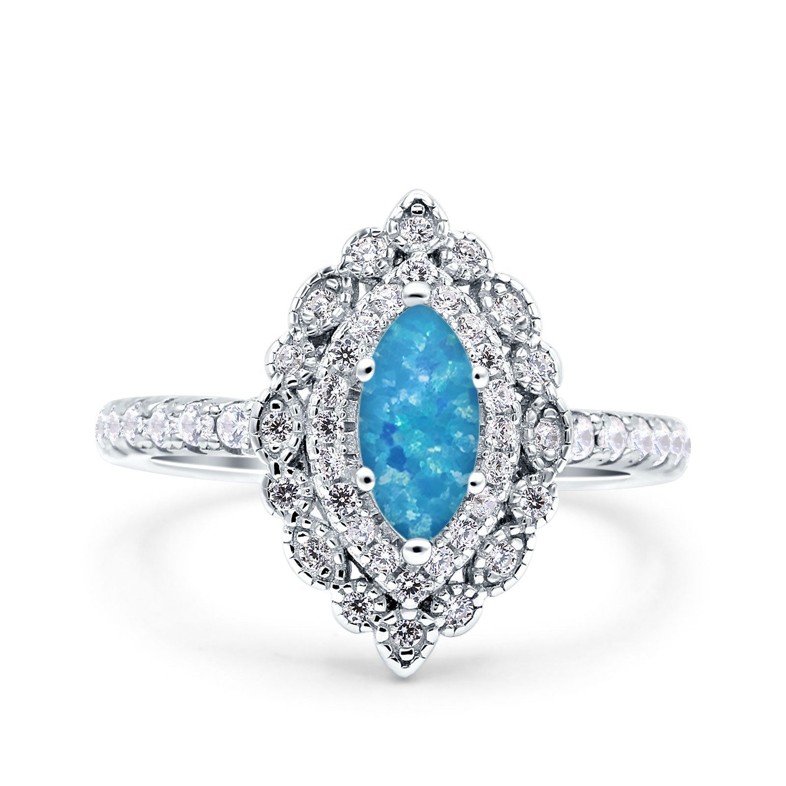 Halo Vintage Style Art Deco Solitaire Accent Marquise Wedding Engagement Ring Round Simulated Cubic Zirconia 925 Sterling Silver