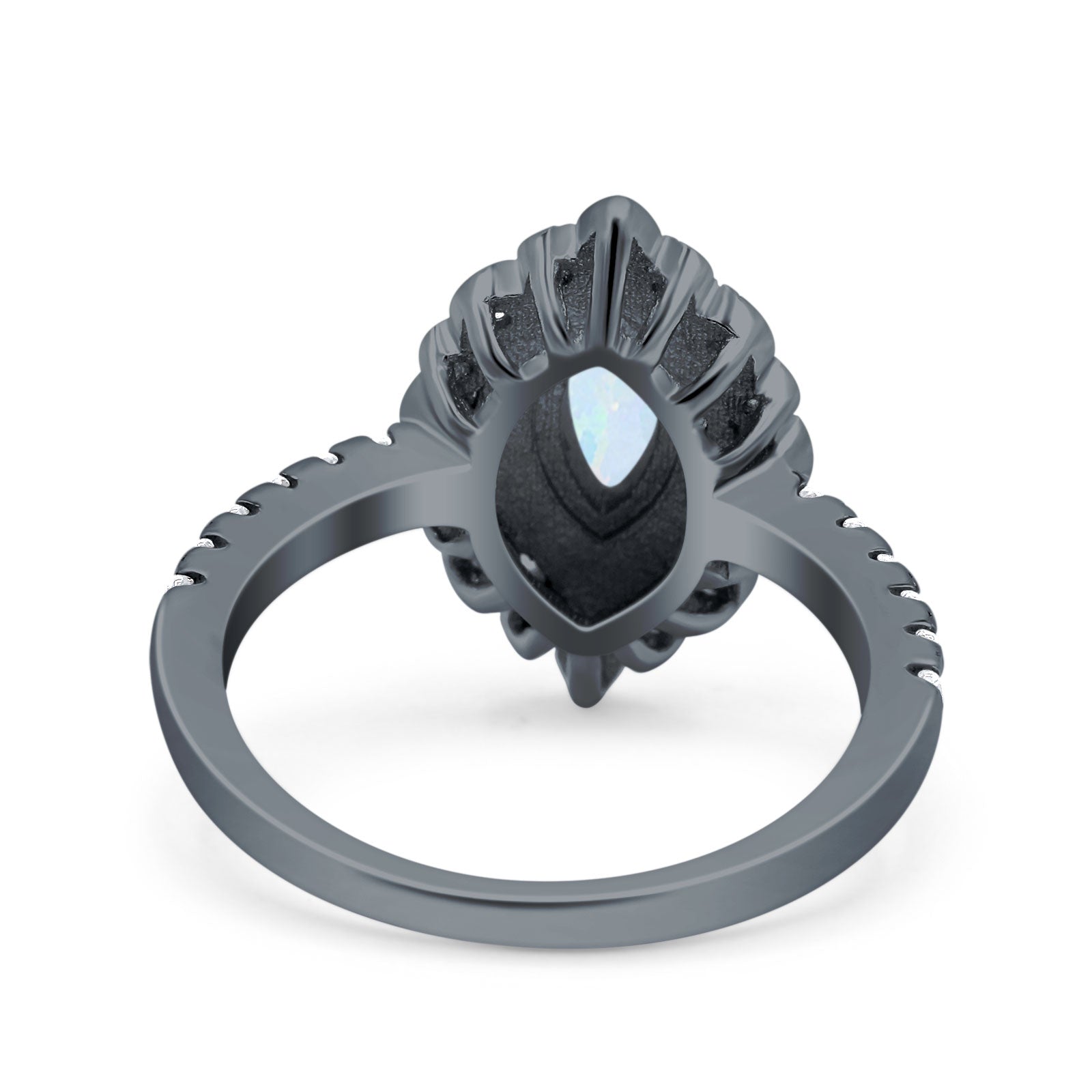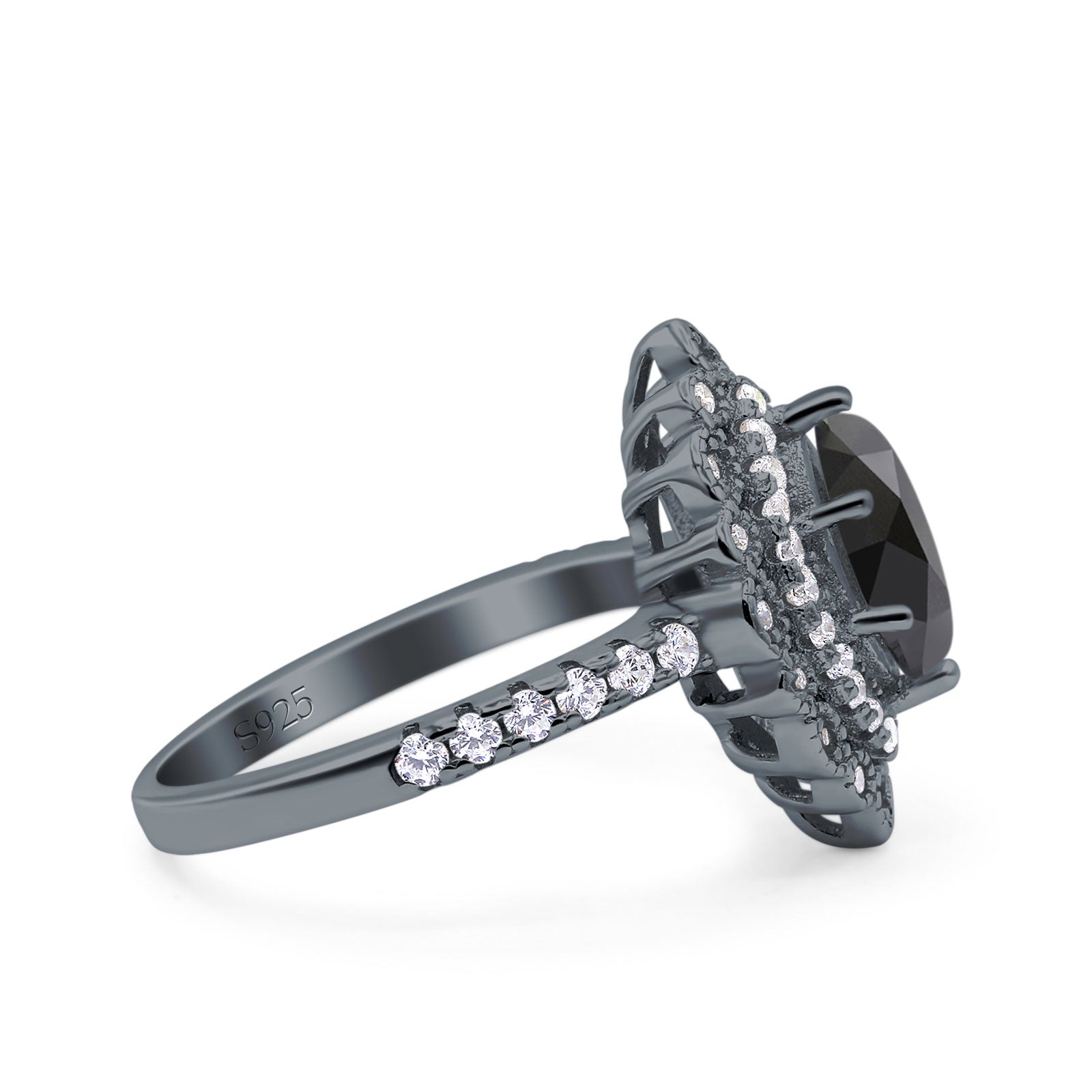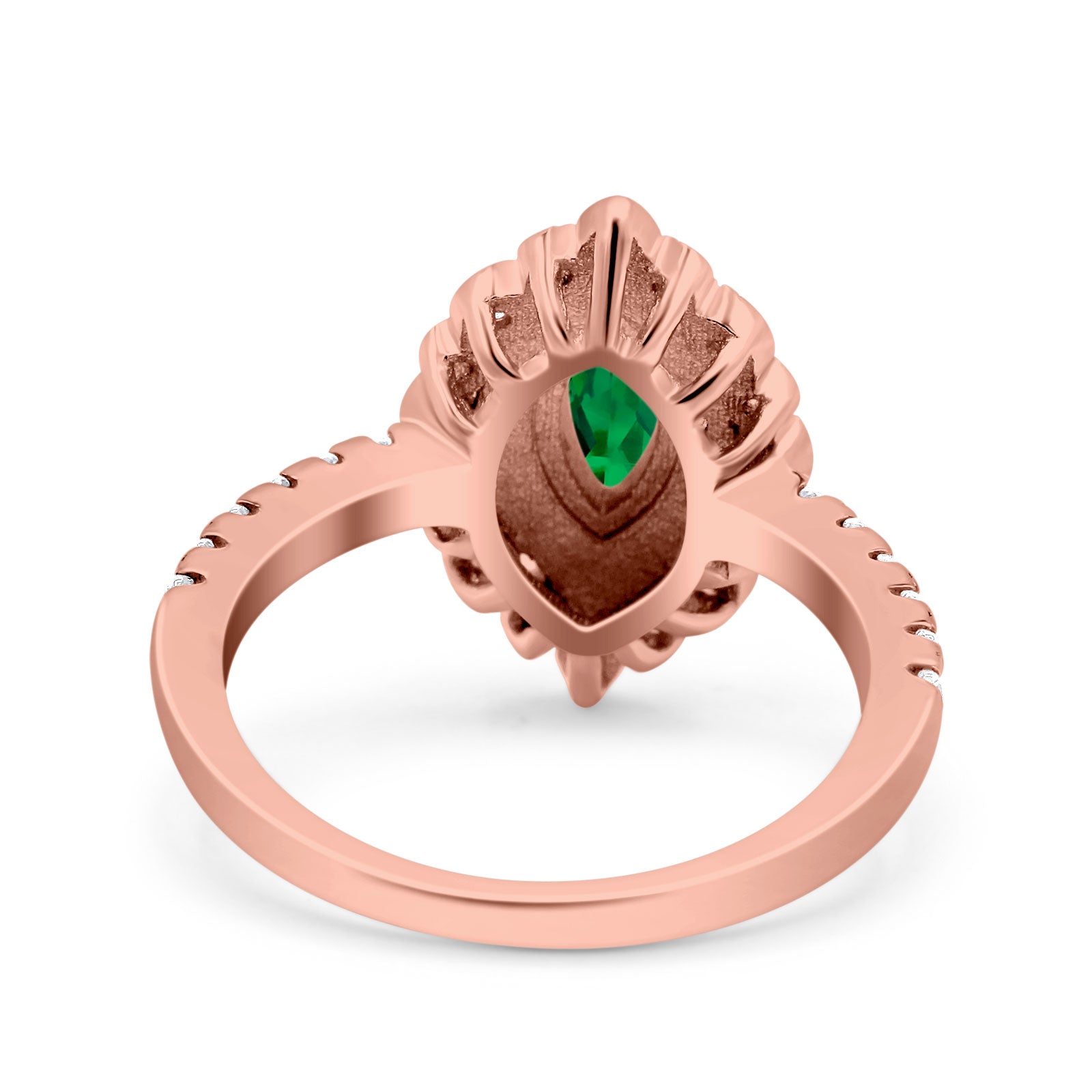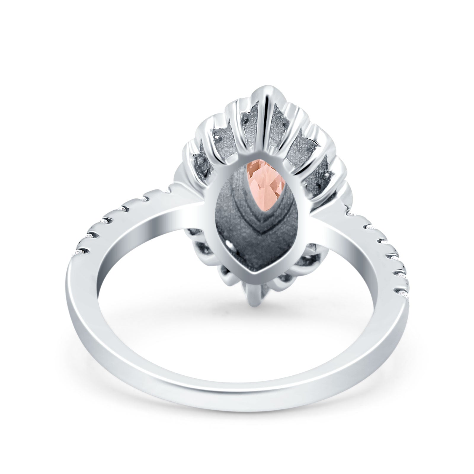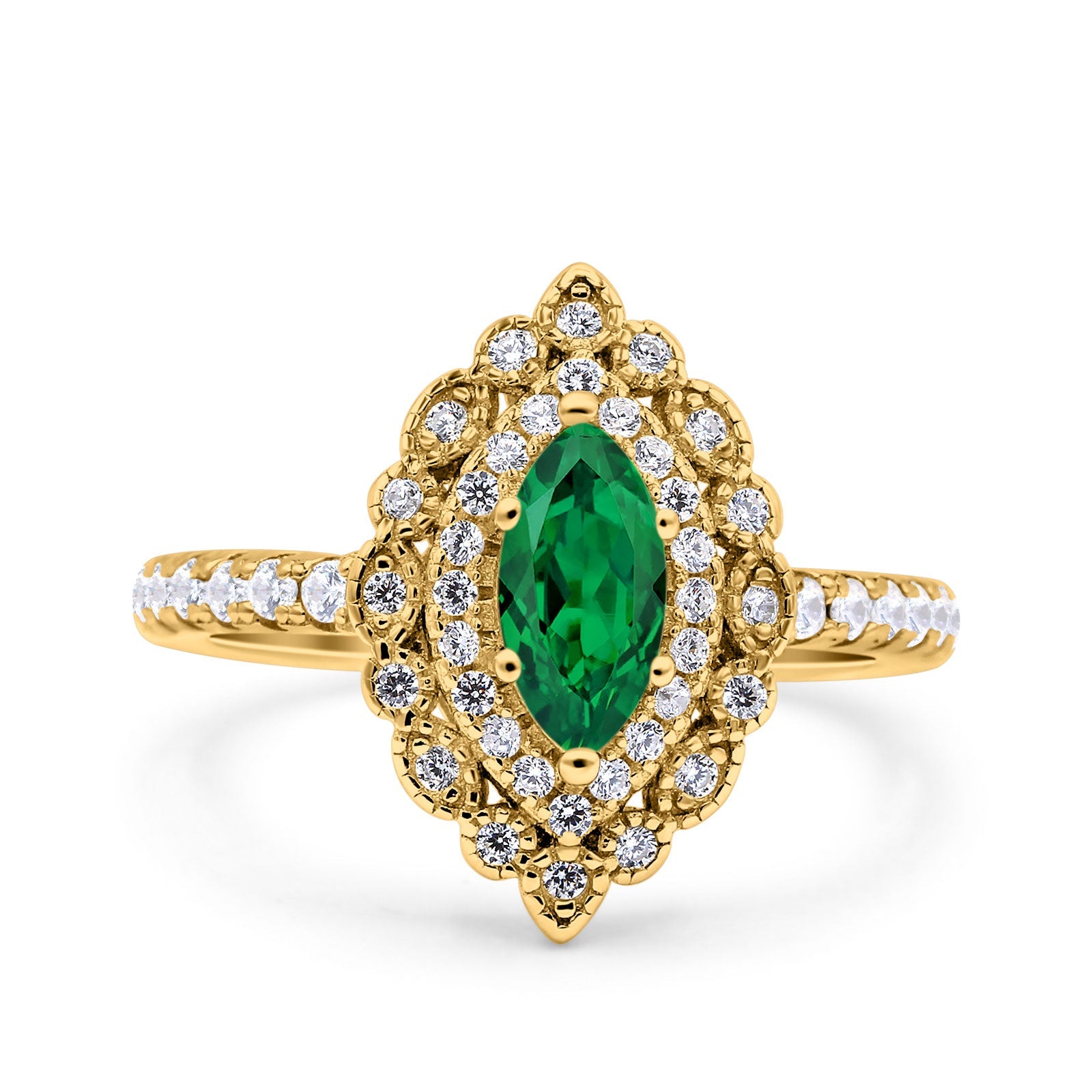 Halo Vintage Style Art Deco Solitaire Accent Marquise Wedding Engagement Ring Round Simulated Cubic Zirconia 925 Sterling Silver