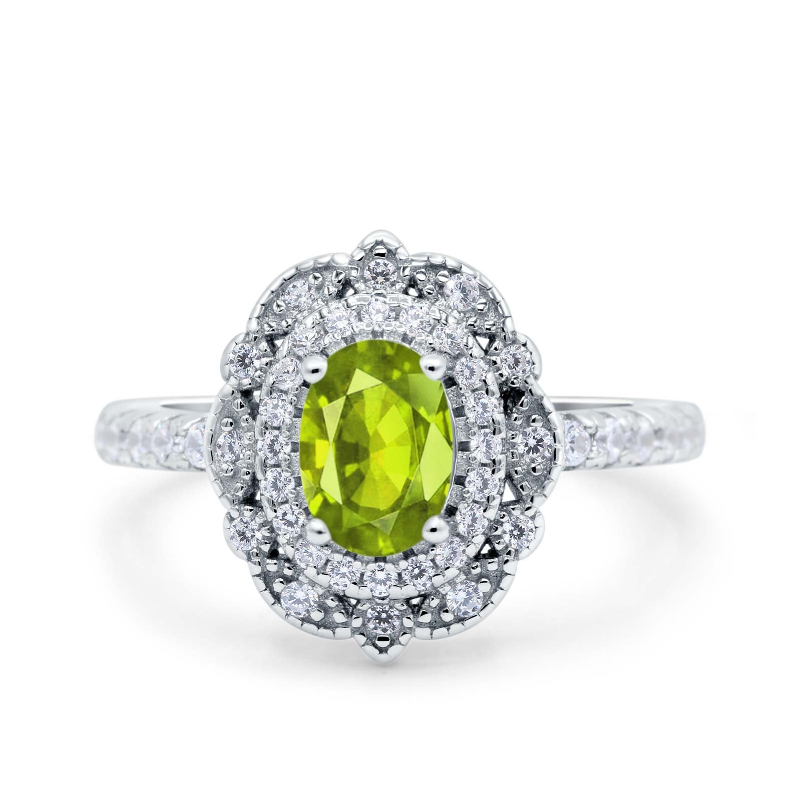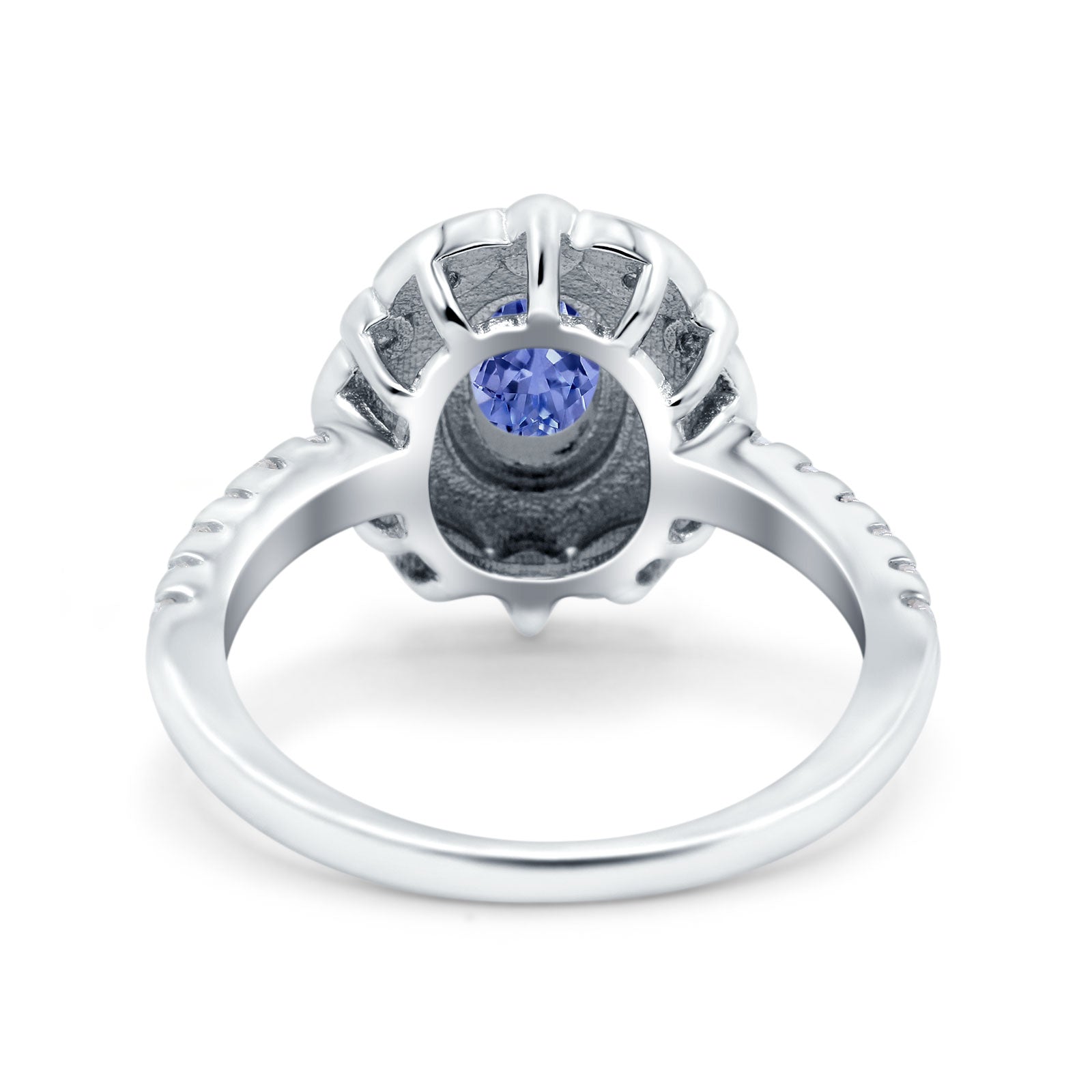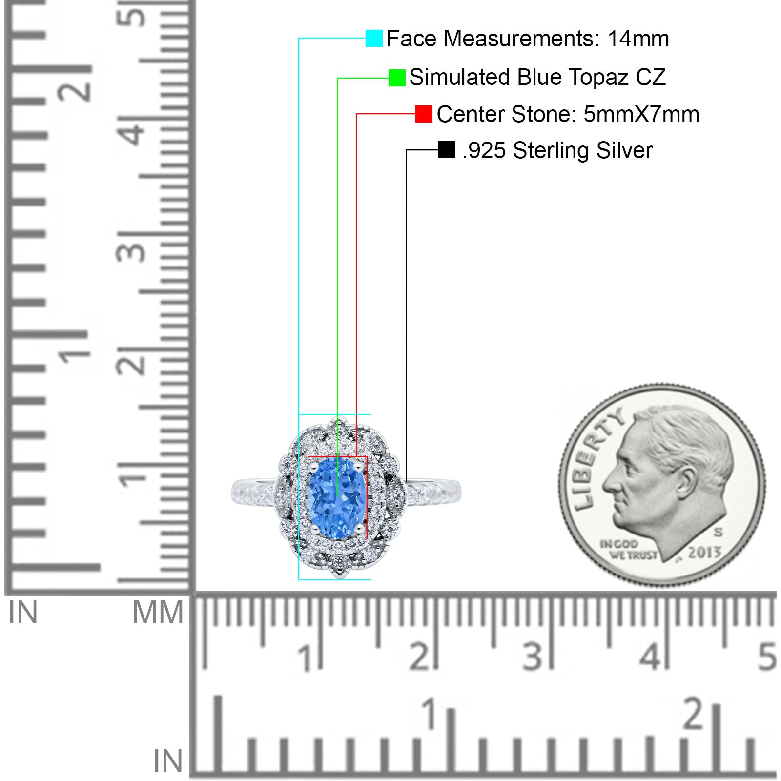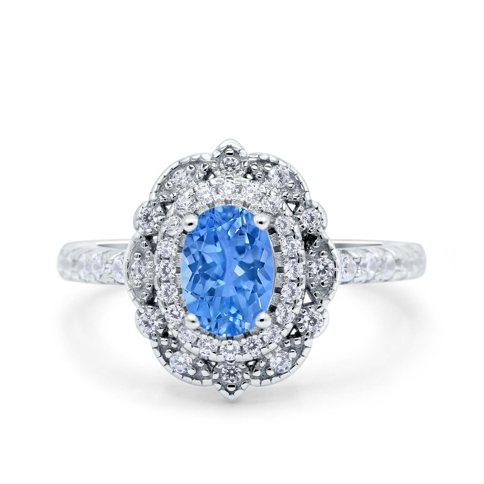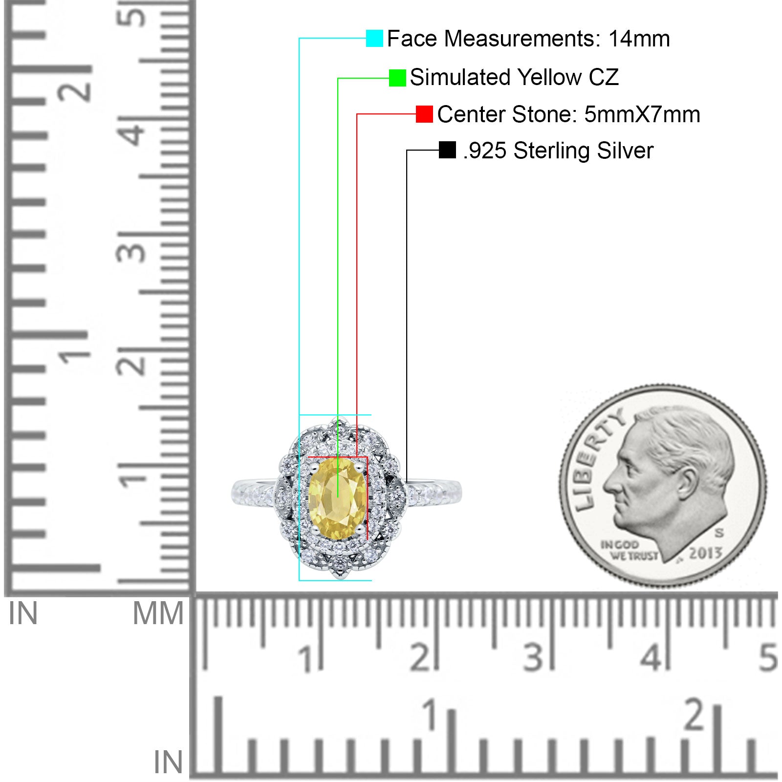Halo Vintage Style Art Deco Solitaire Accent Oval Wedding Engagement Ring Simulated Cubic Zirconia 925 Sterling Silver