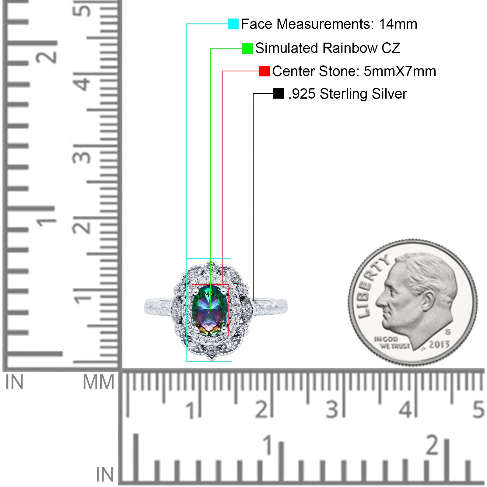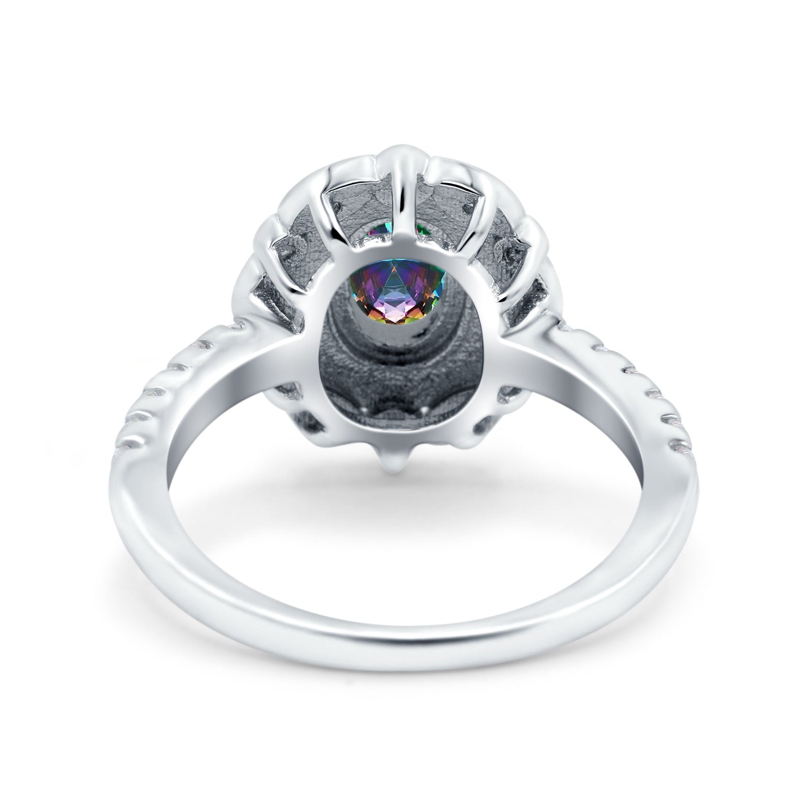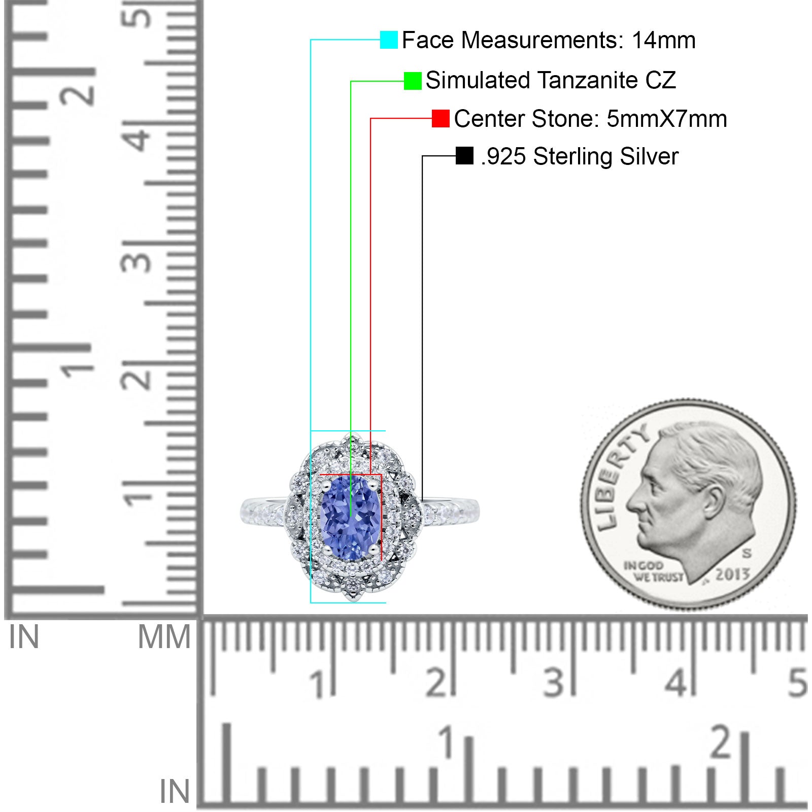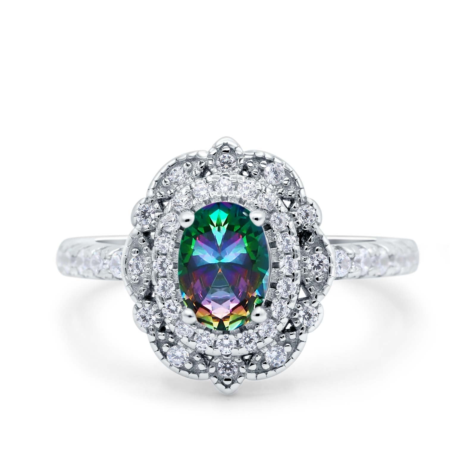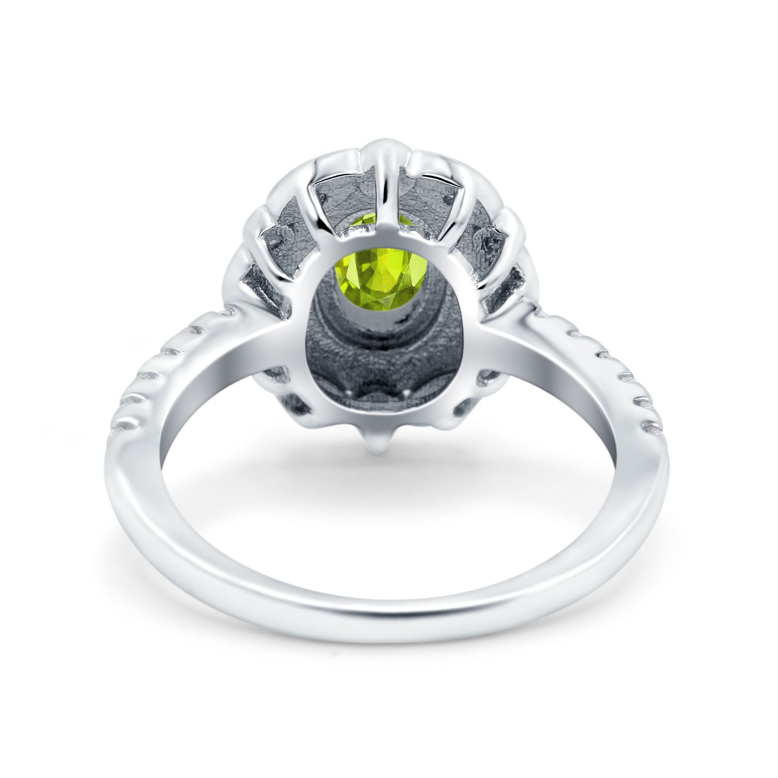 Halo Vintage Style Art Deco Solitaire Accent Oval Wedding Engagement Ring Simulated Cubic Zirconia 925 Sterling Silver