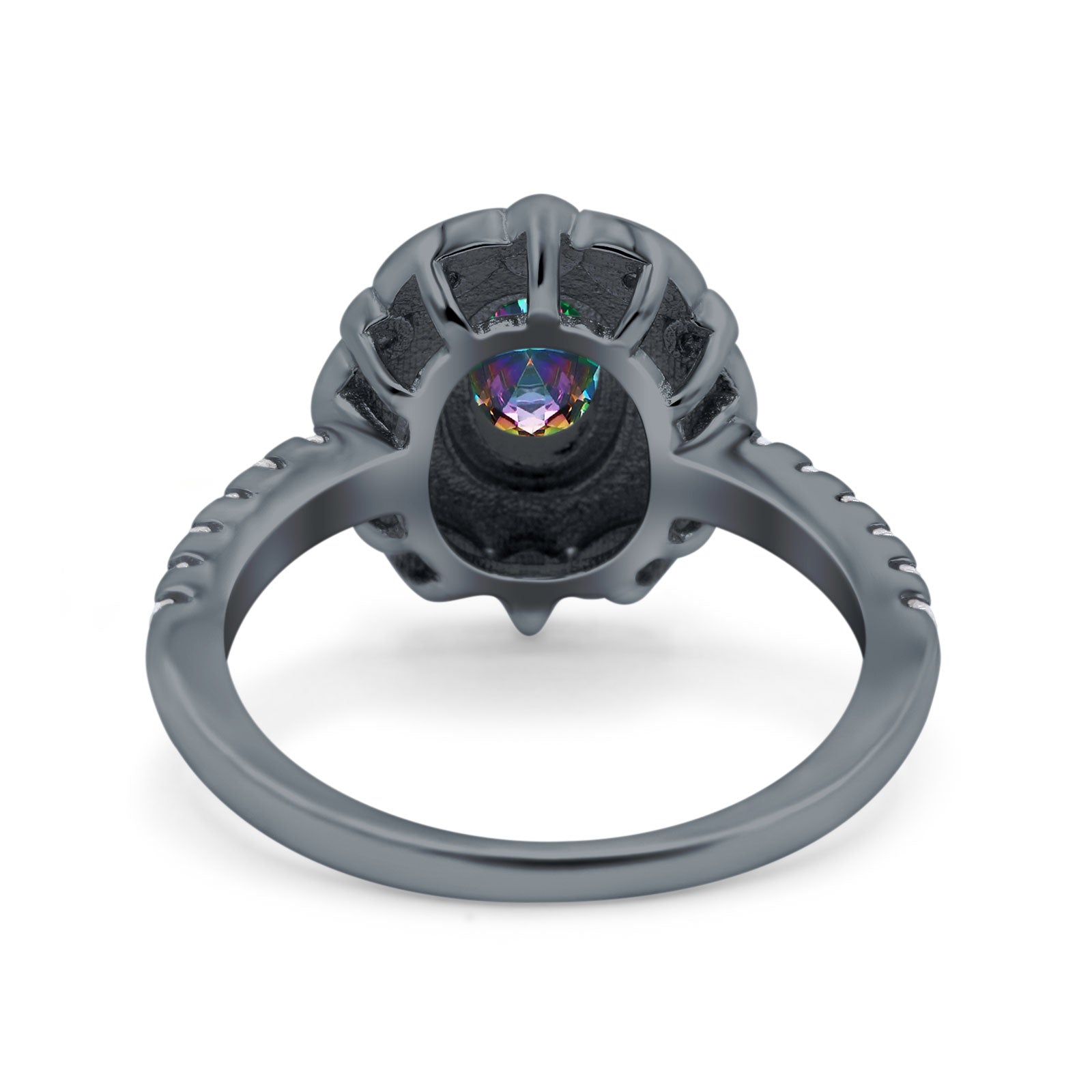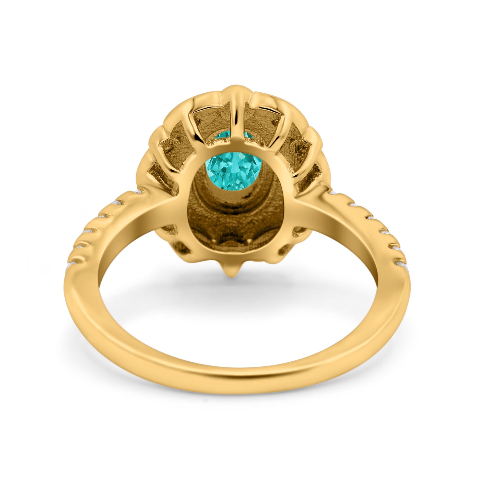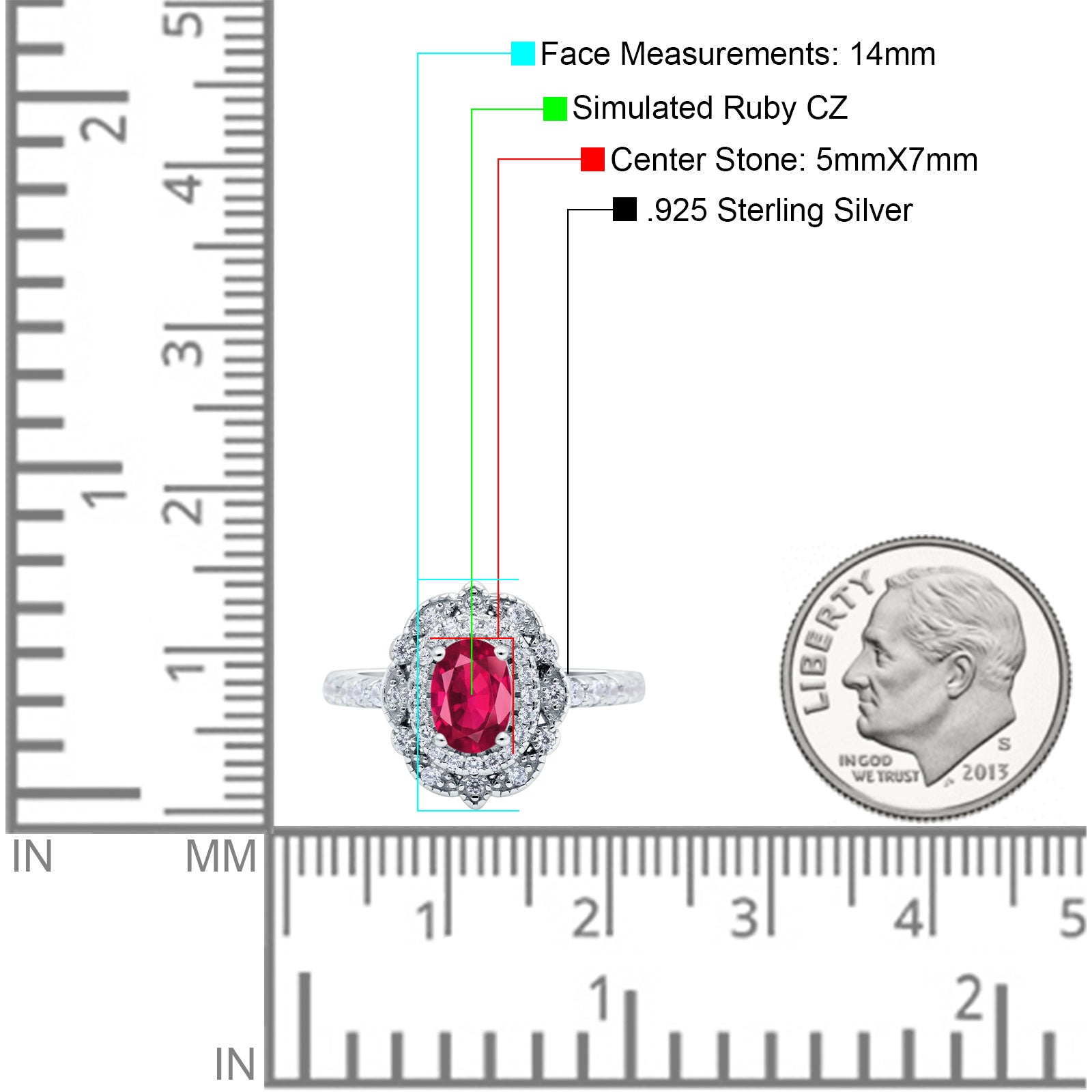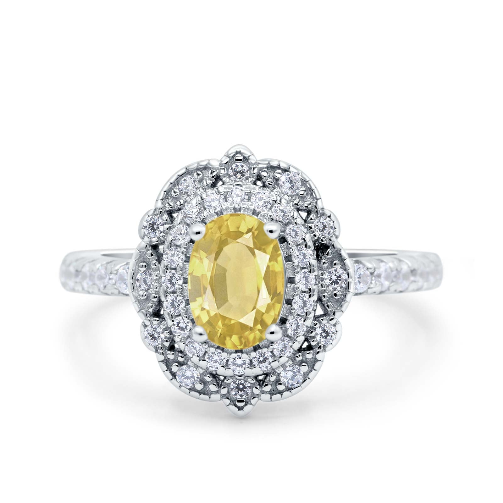 Halo Vintage Style Art Deco Solitaire Accent Oval Wedding Engagement Ring Simulated Cubic Zirconia 925 Sterling Silver