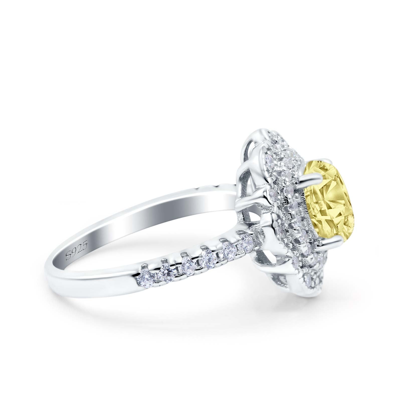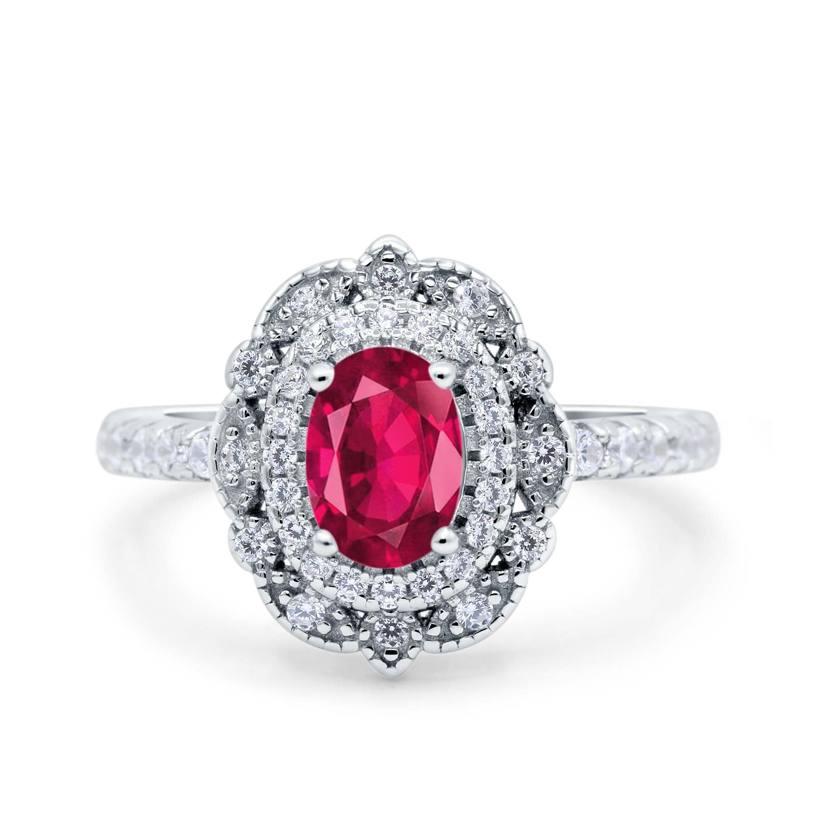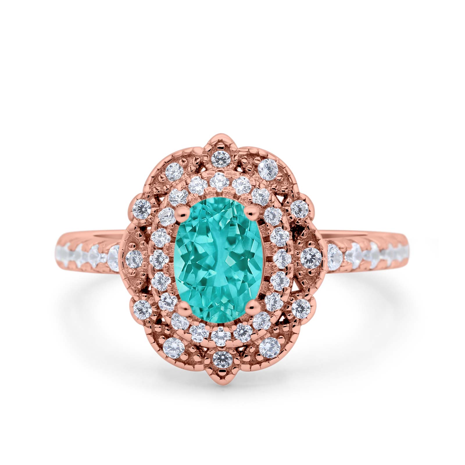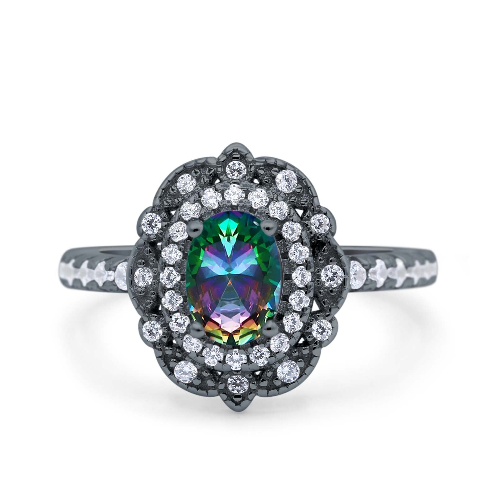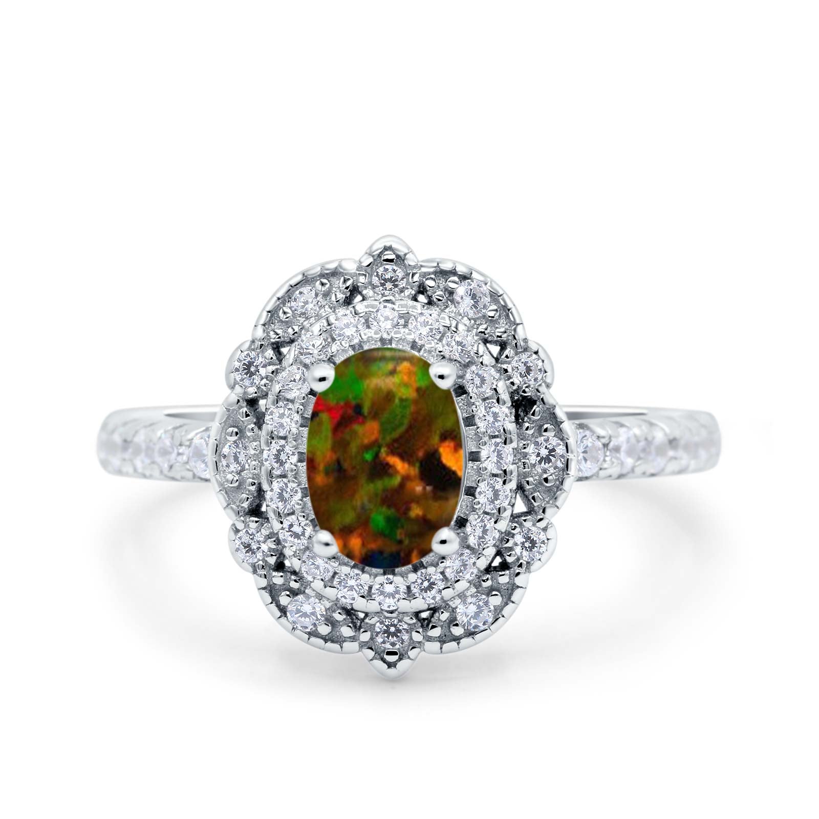 Halo Vintage Style Art Deco Solitaire Accent Oval Wedding Engagement Ring Simulated Cubic Zirconia 925 Sterling Silver
