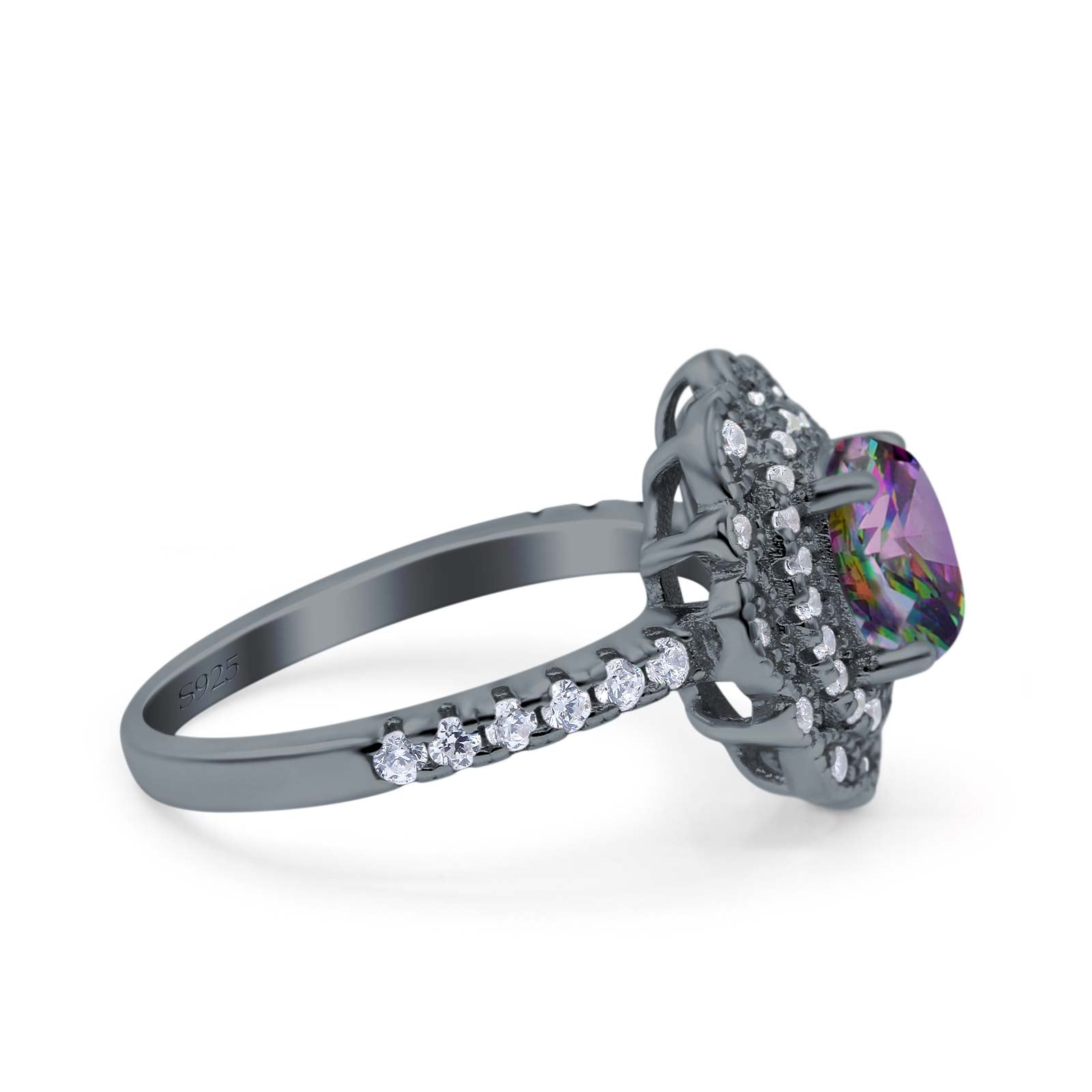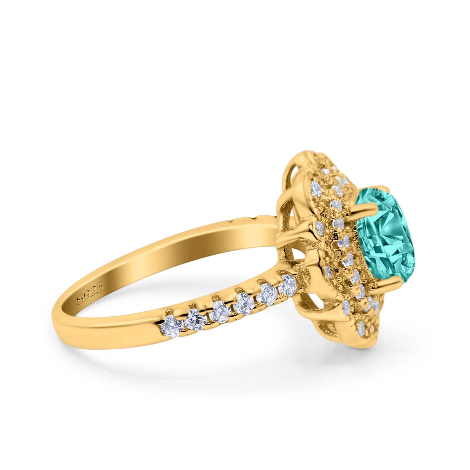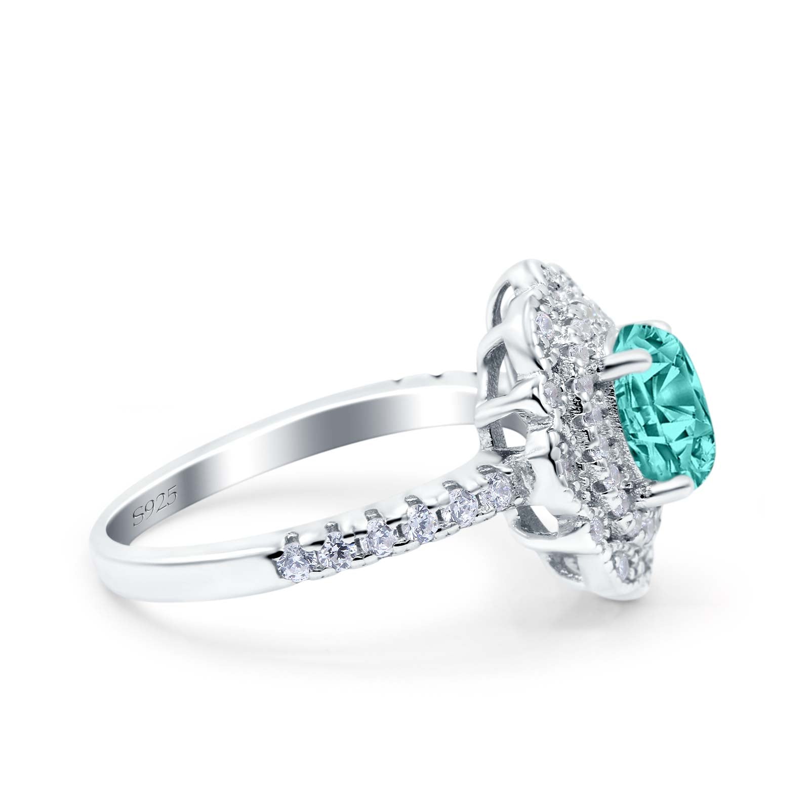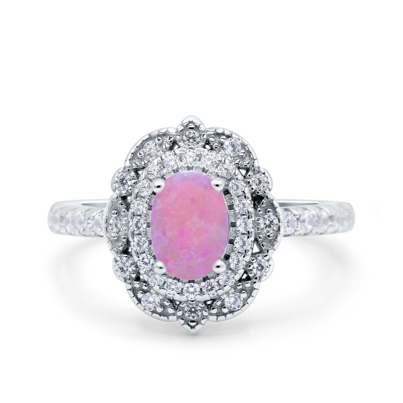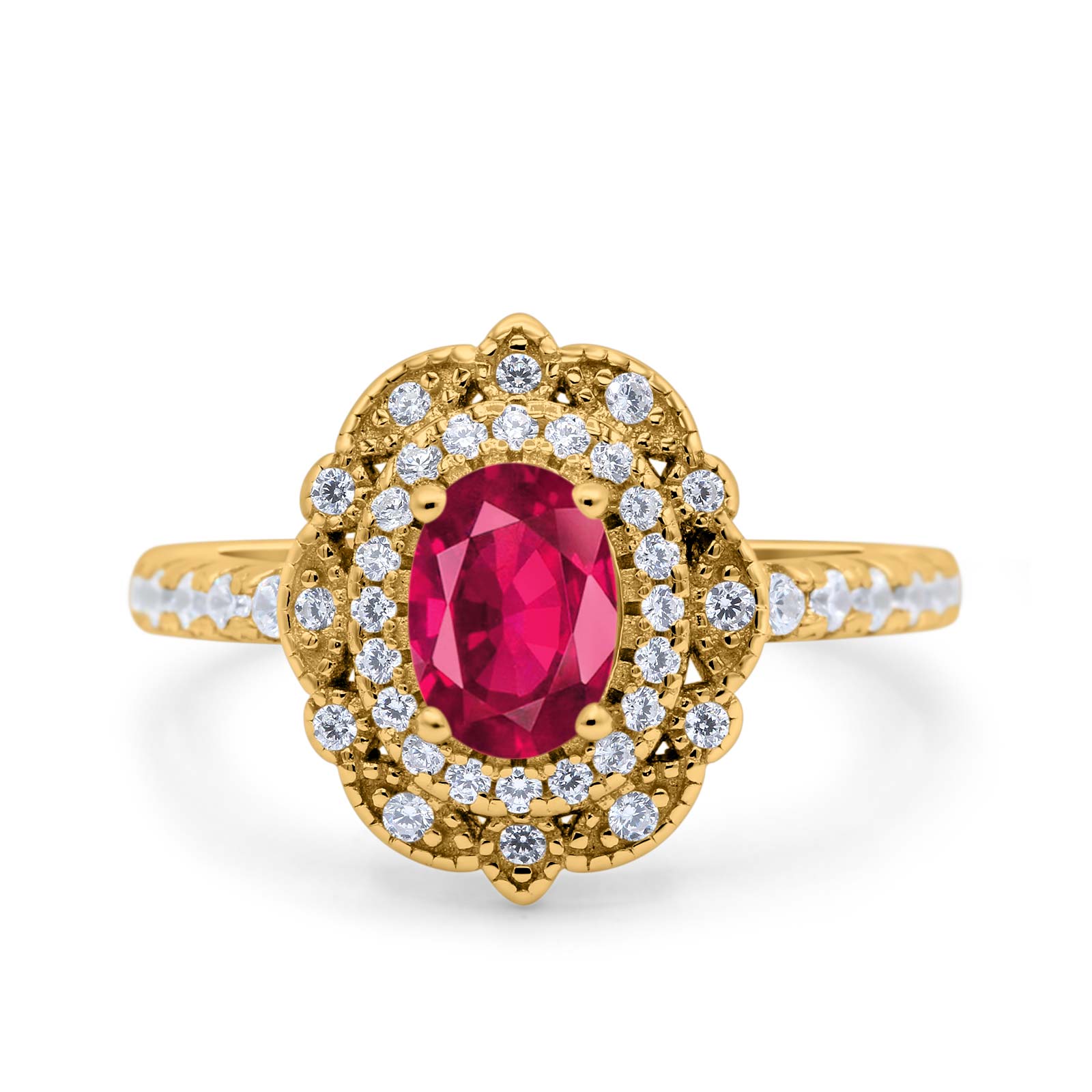 Halo Vintage Style Art Deco Solitaire Accent Oval Wedding Engagement Ring Simulated Cubic Zirconia 925 Sterling Silver