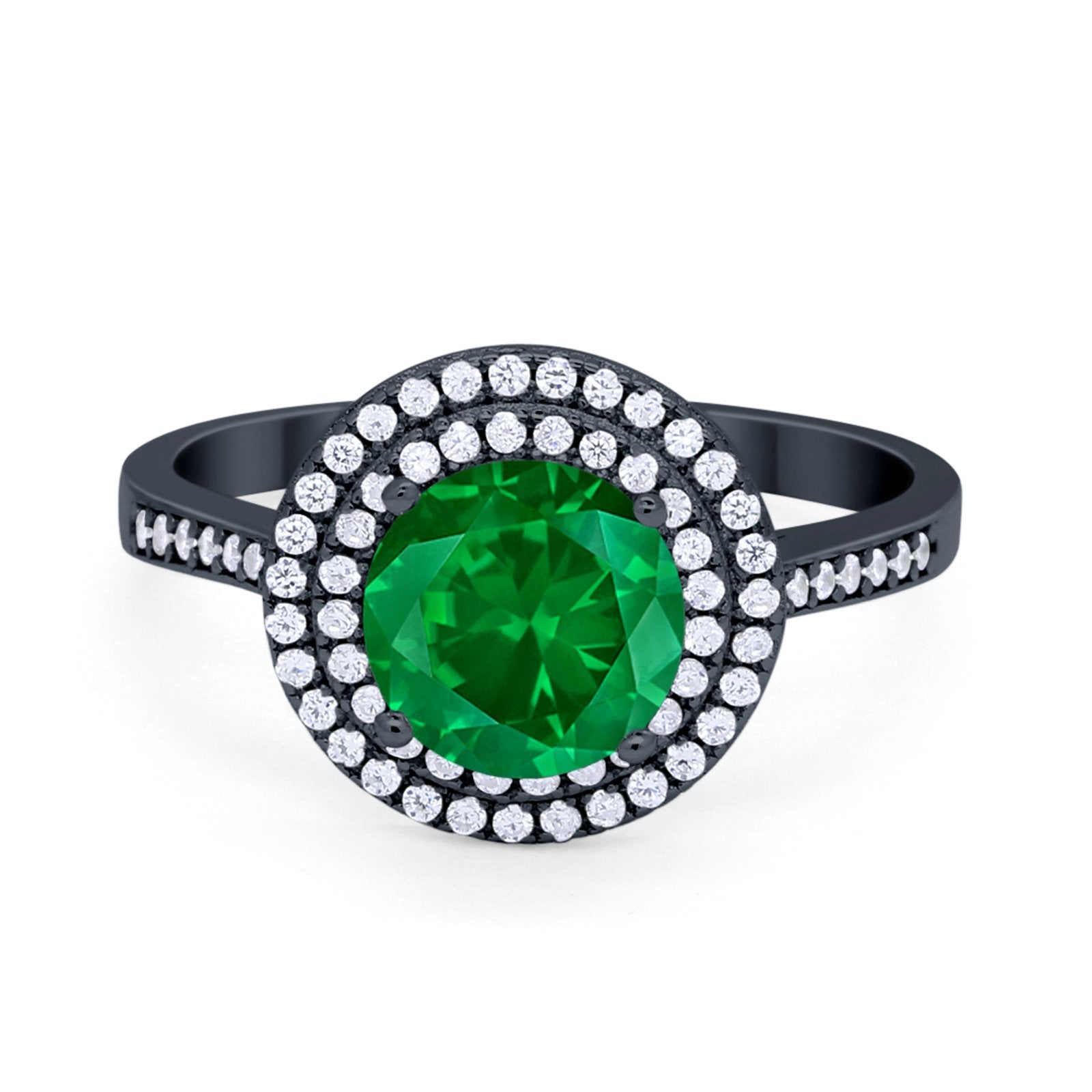 CZ & Green Emerald CZ Black Tone Silver