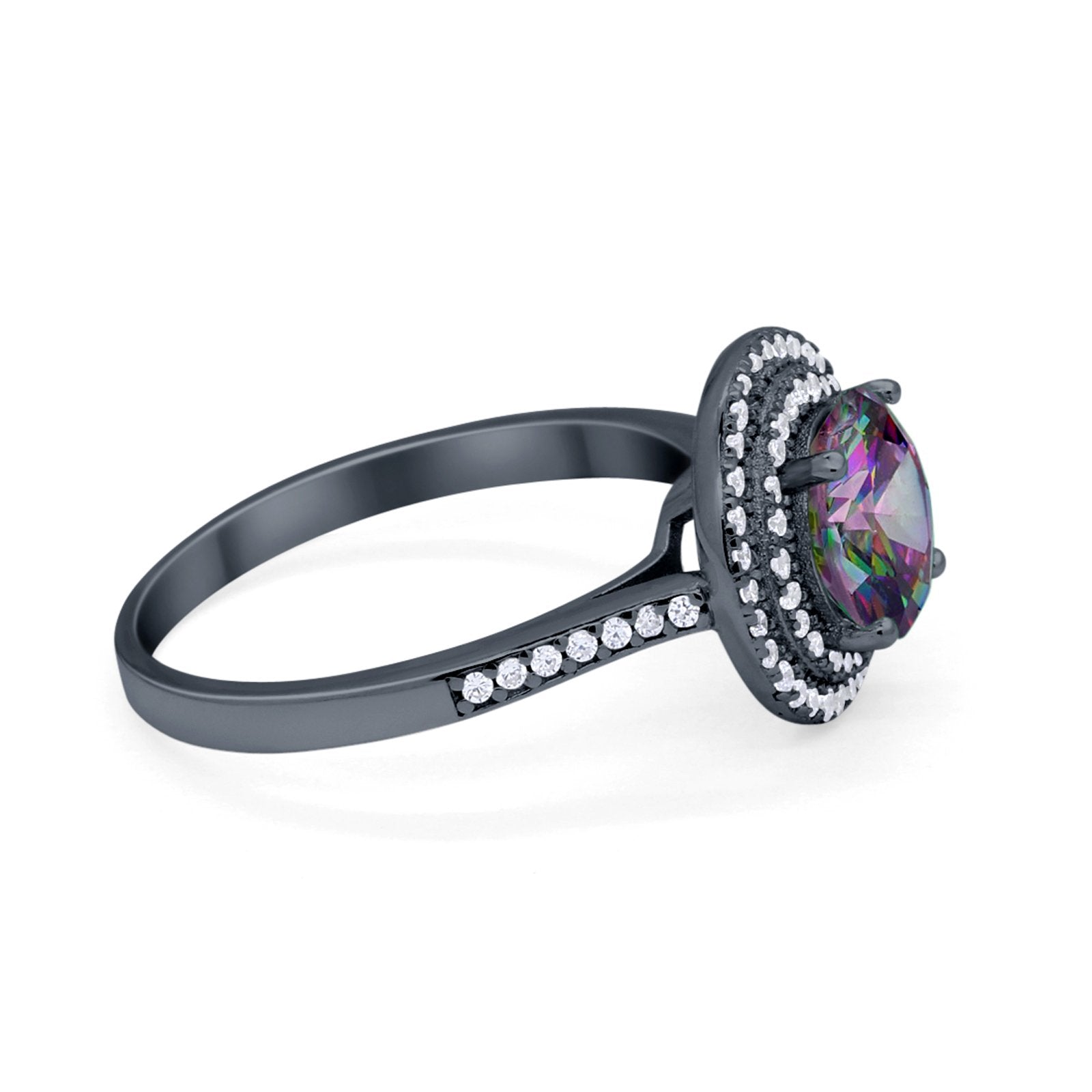 CZ & Blue Sapphire CZ Black Tone Silver