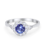 CZ & Blue Sapphire CZ Rose Tone Silver