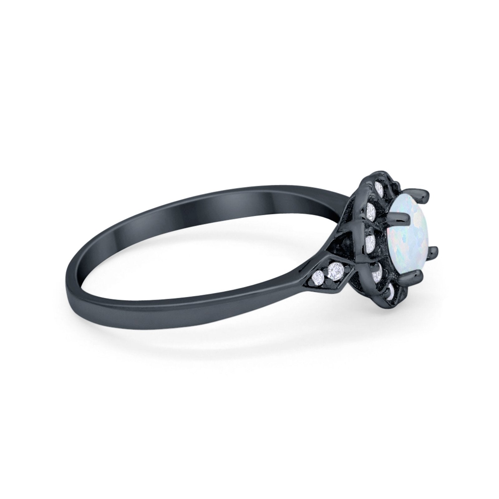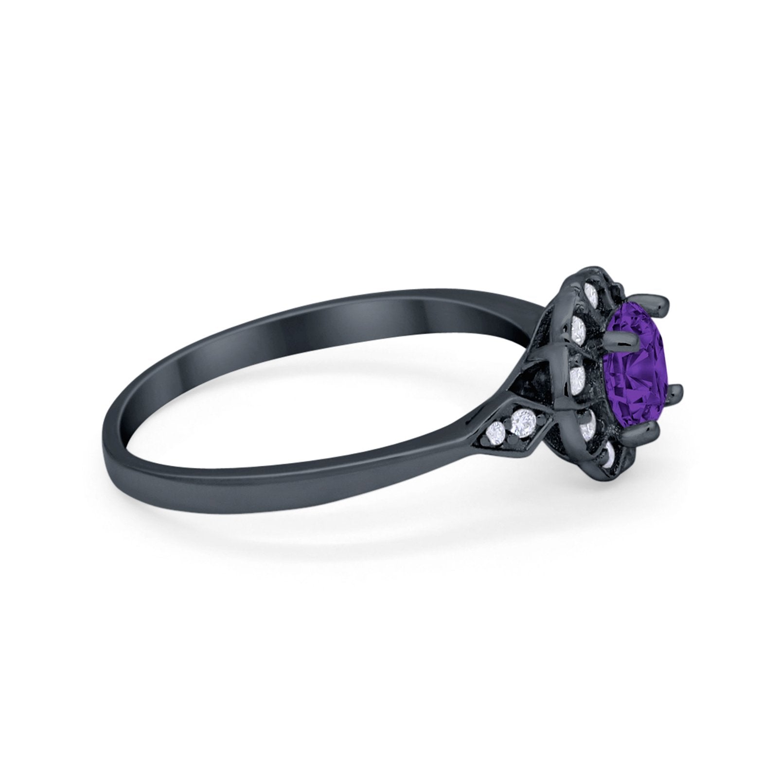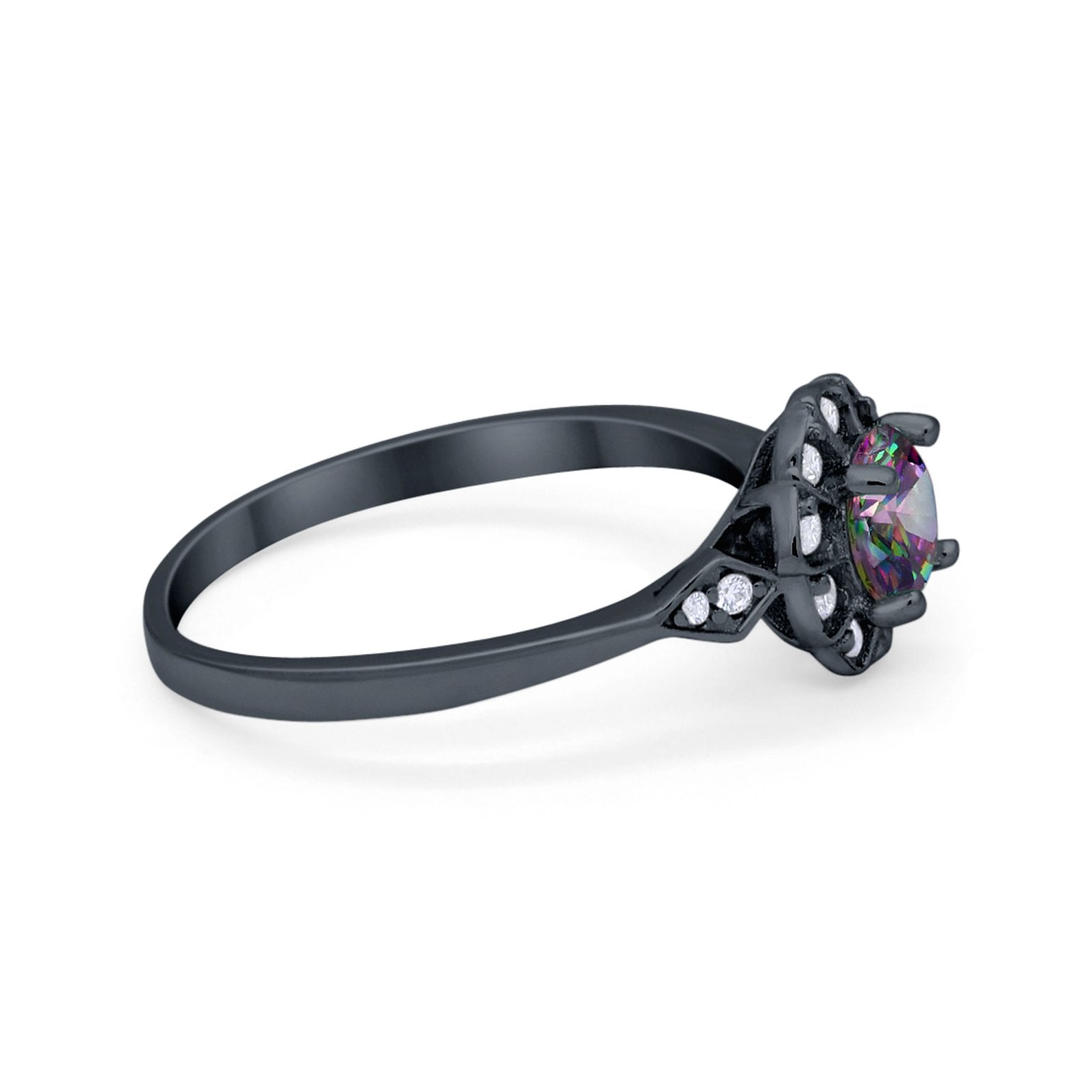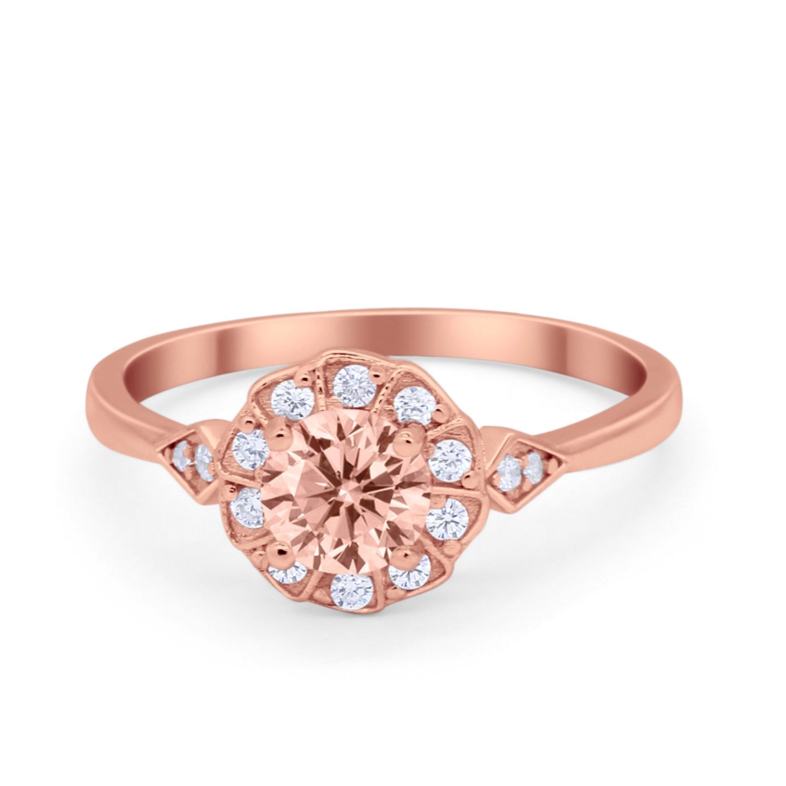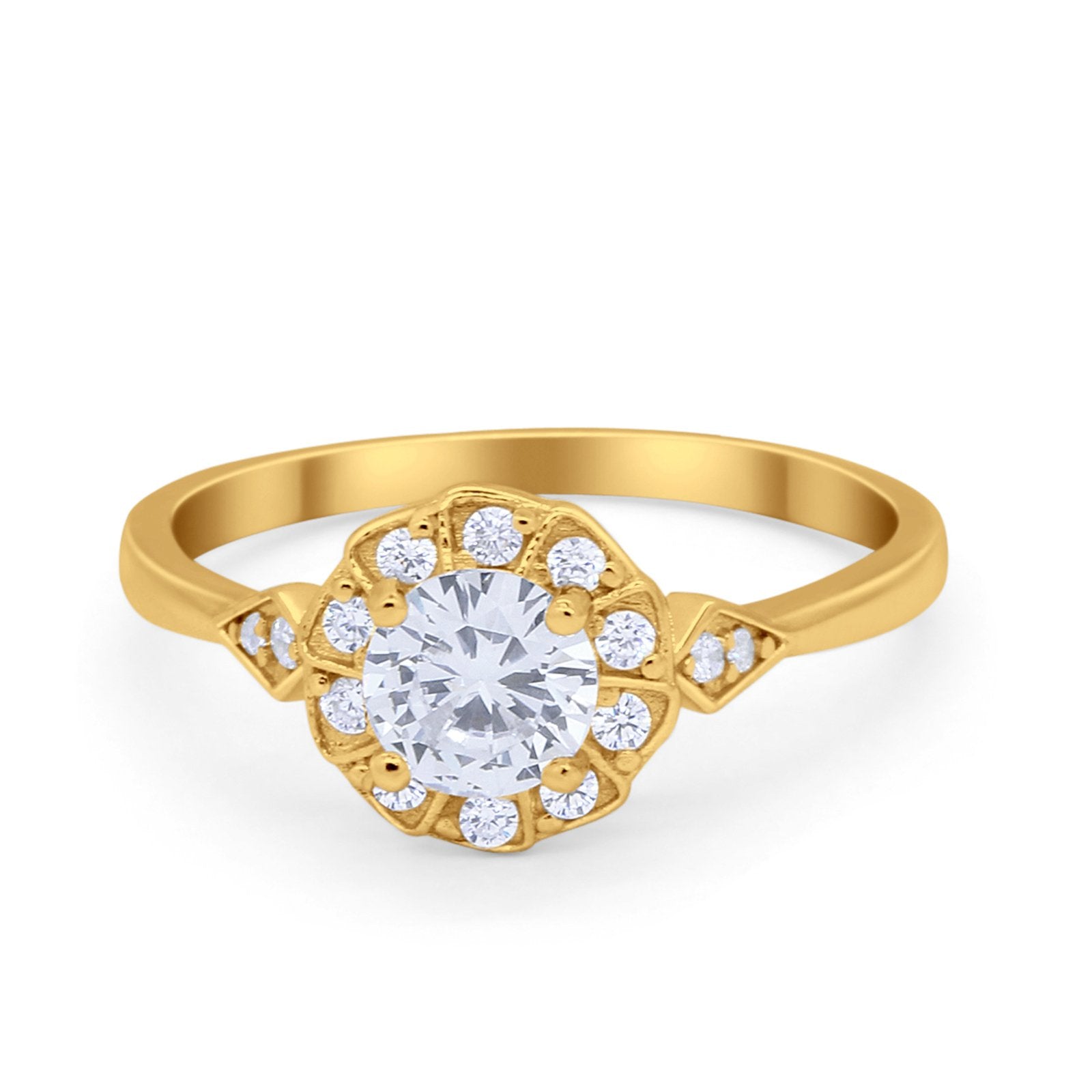 Halo Wedding Engagement Vintage Style Bridal Ring Round Cubic Zirconia 925 Sterling Silver