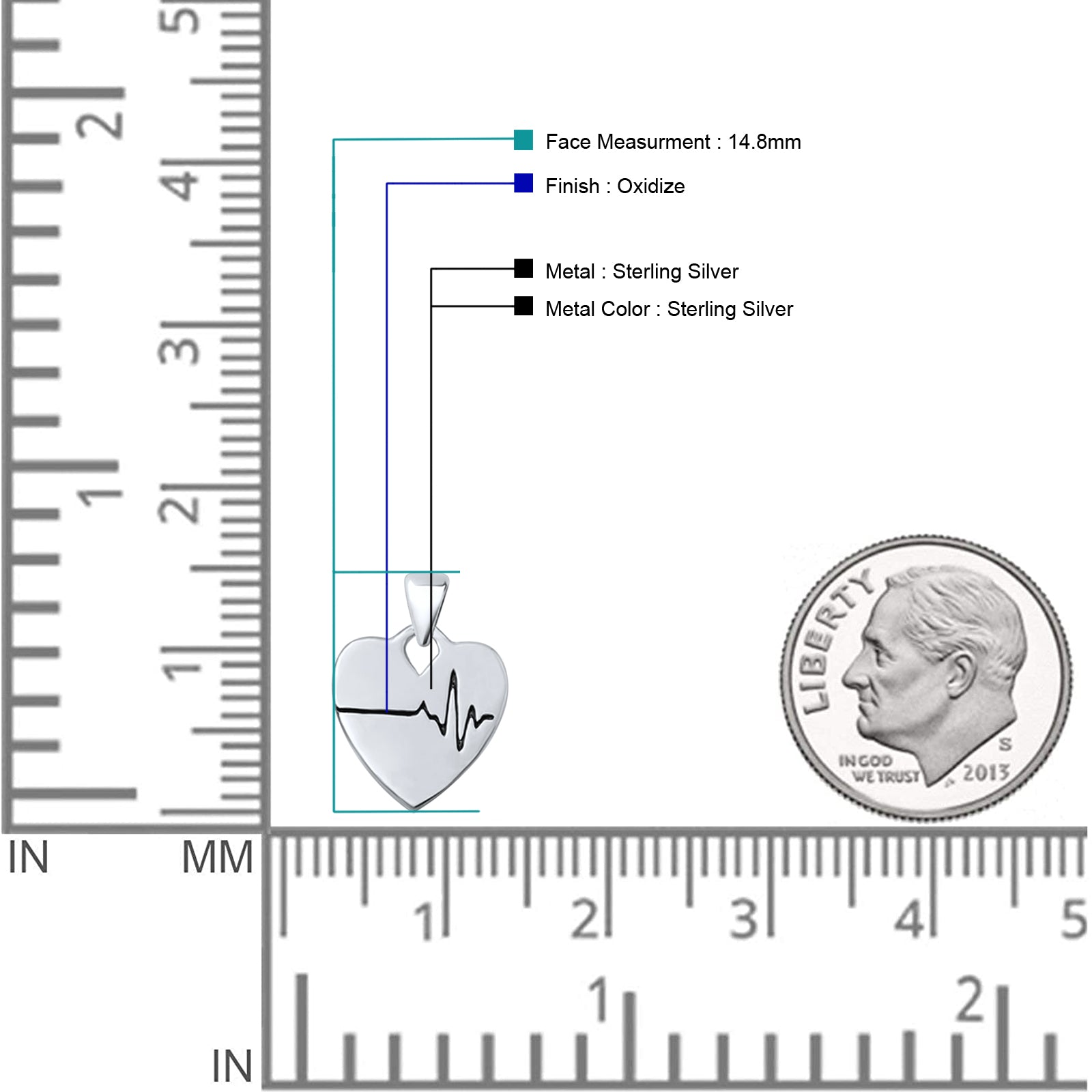 Heart & EKG Pendant Oxidized Rolo Chain Necklace 925 Sterling Silver