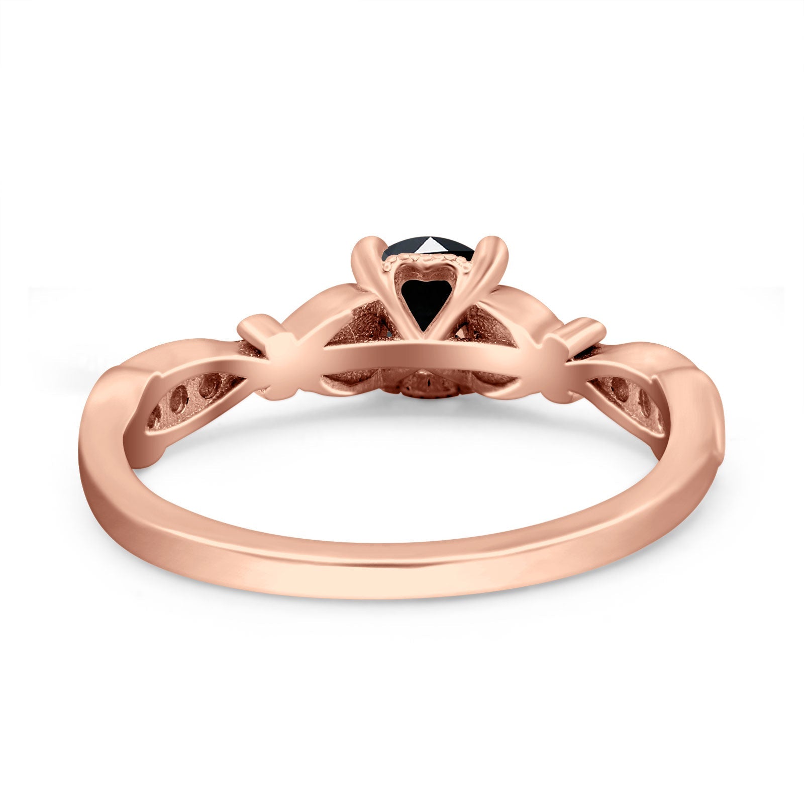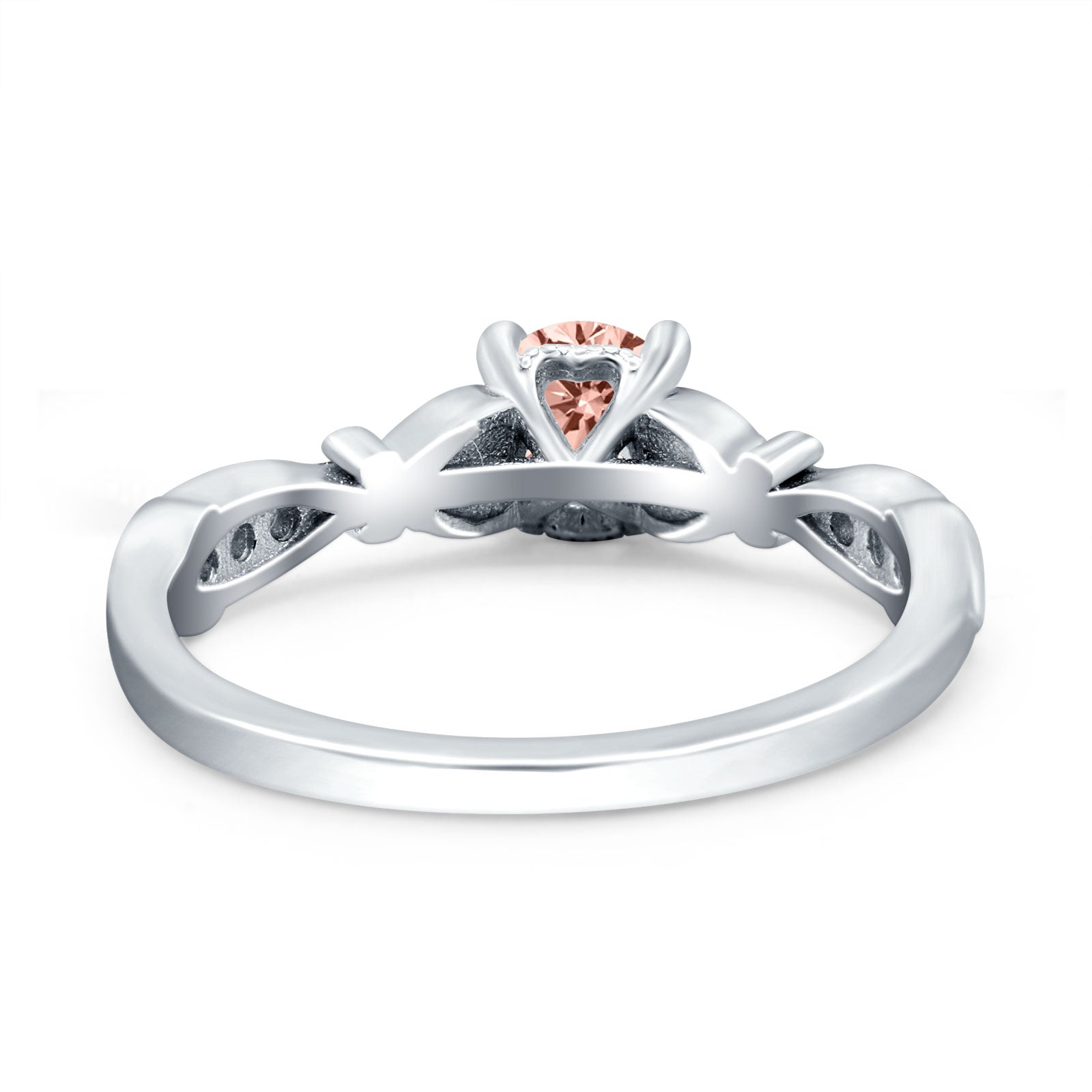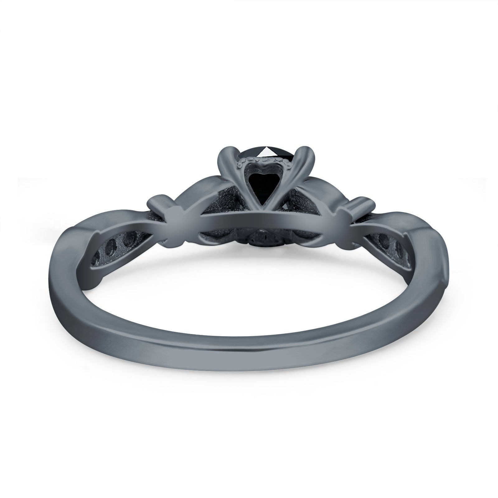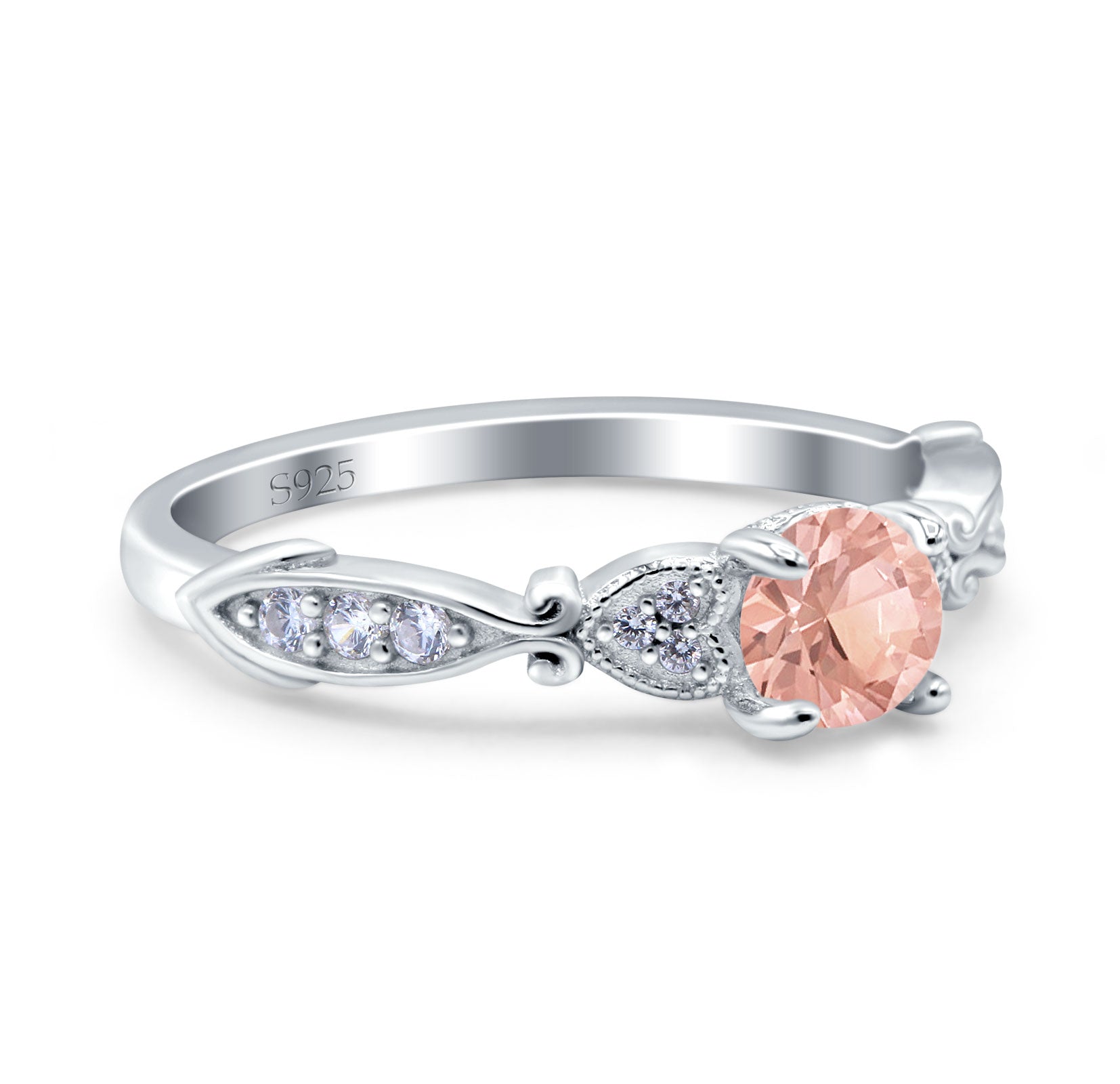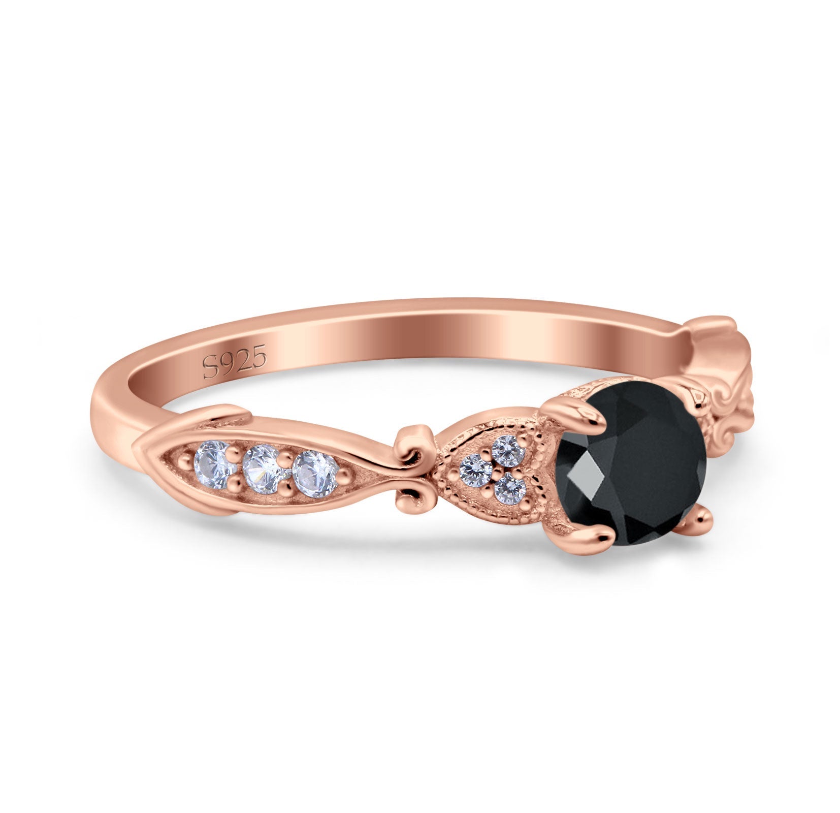 Heart Filigree Art Deco Wedding Bridal Ring Round Simulated Cubic Zirconia 925 Sterling Silver