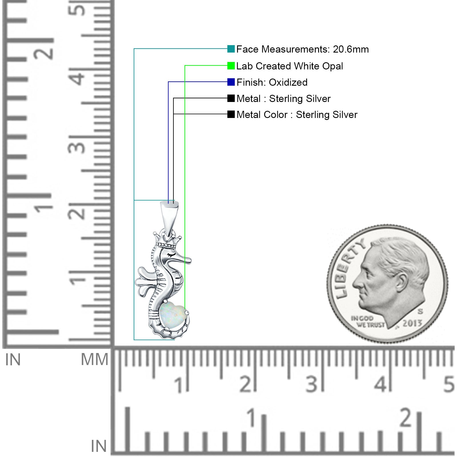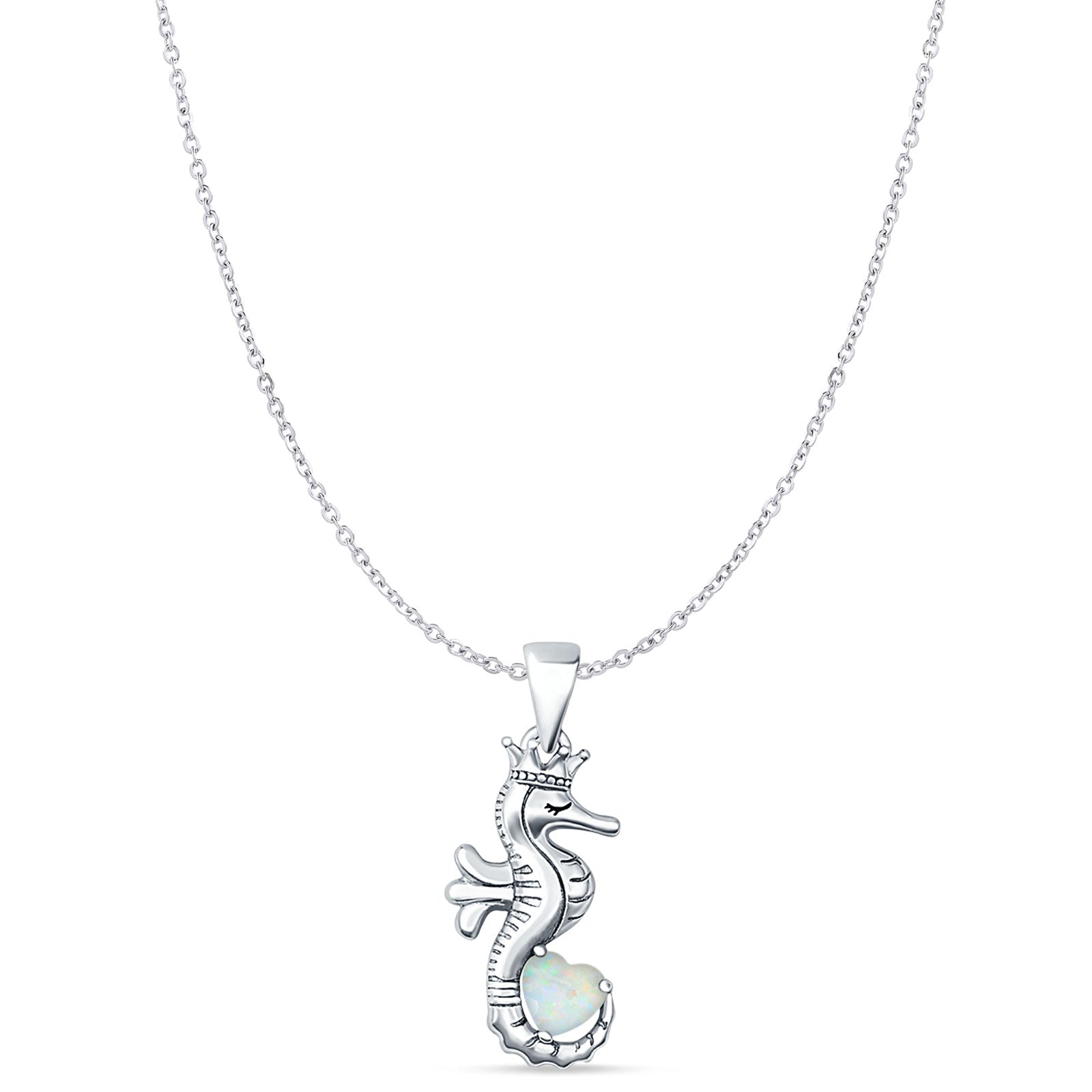 Heart Lab Created White Opal Seahorse Pendant Cable Chain Necklace 925 Sterling Silver