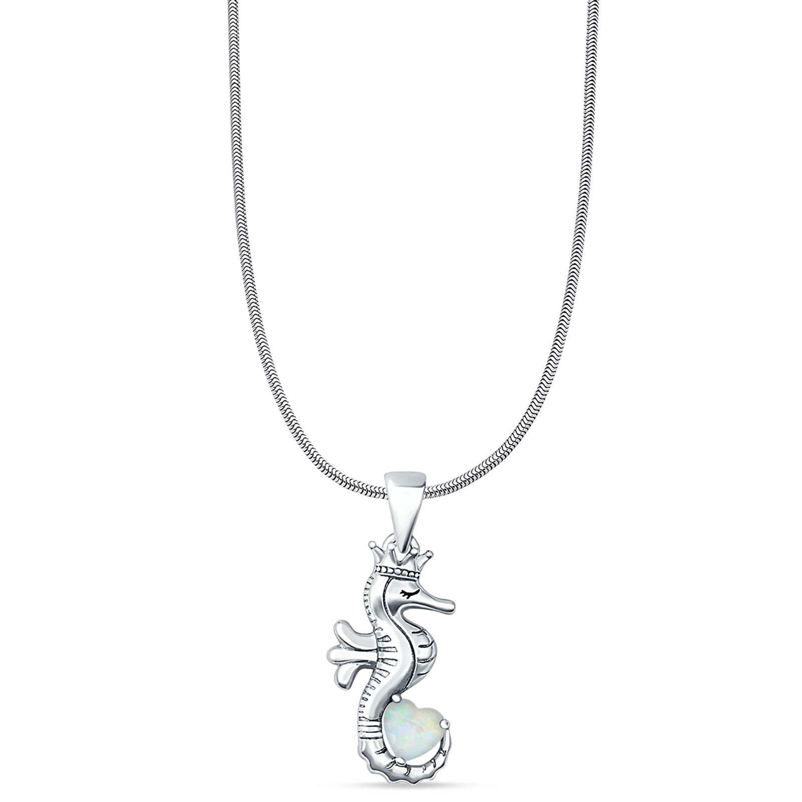 Style: Lab Created White Opal Seahorse Pendant Necklace