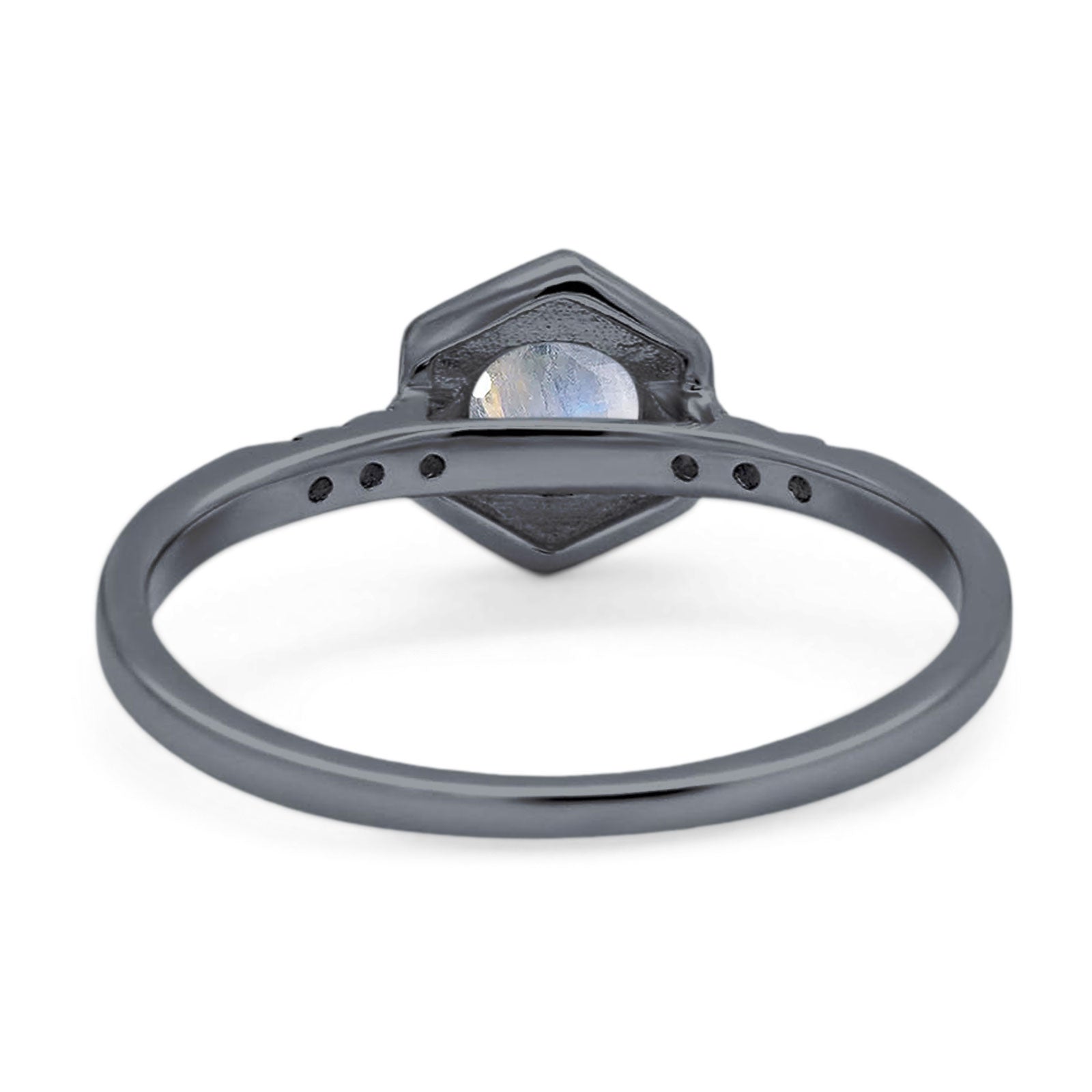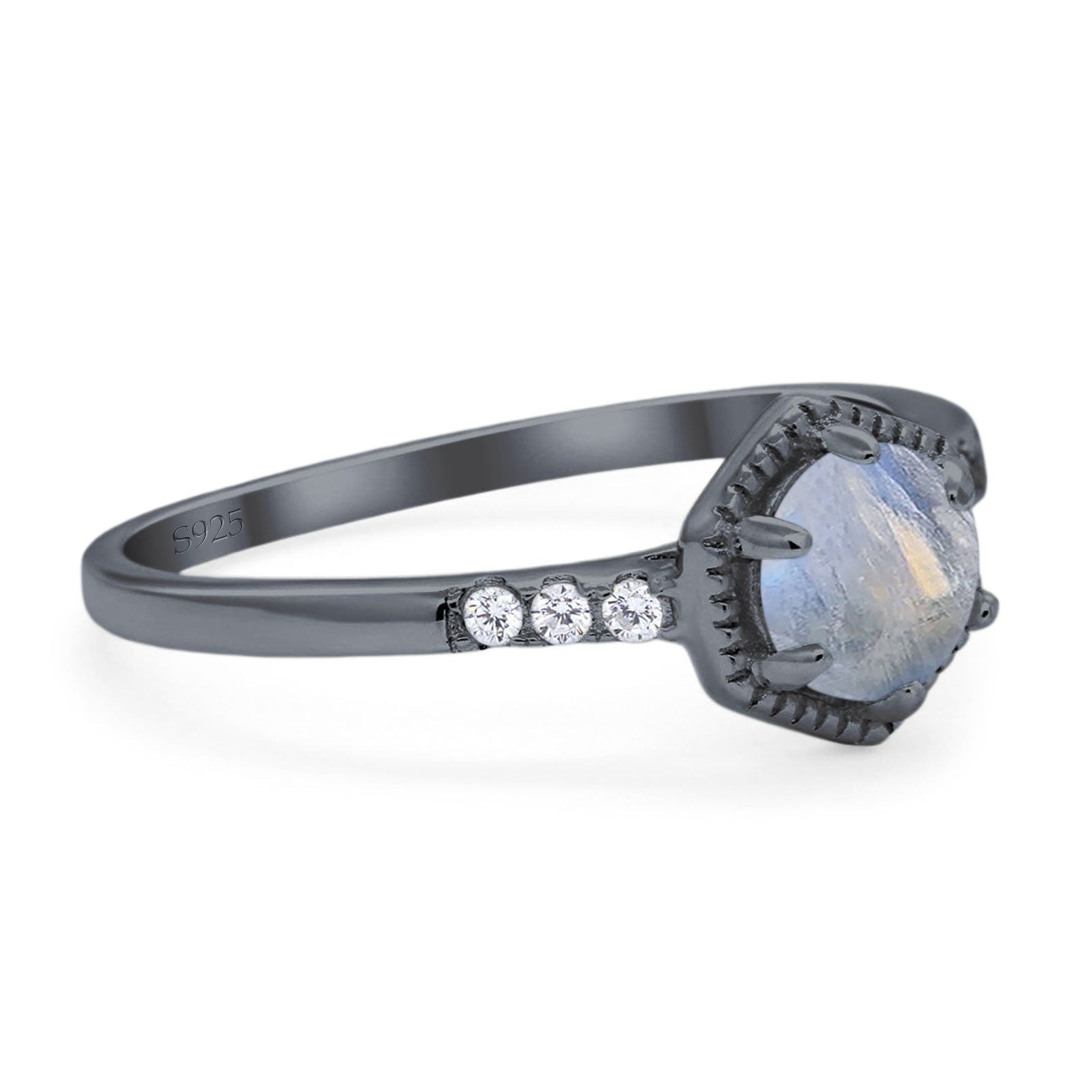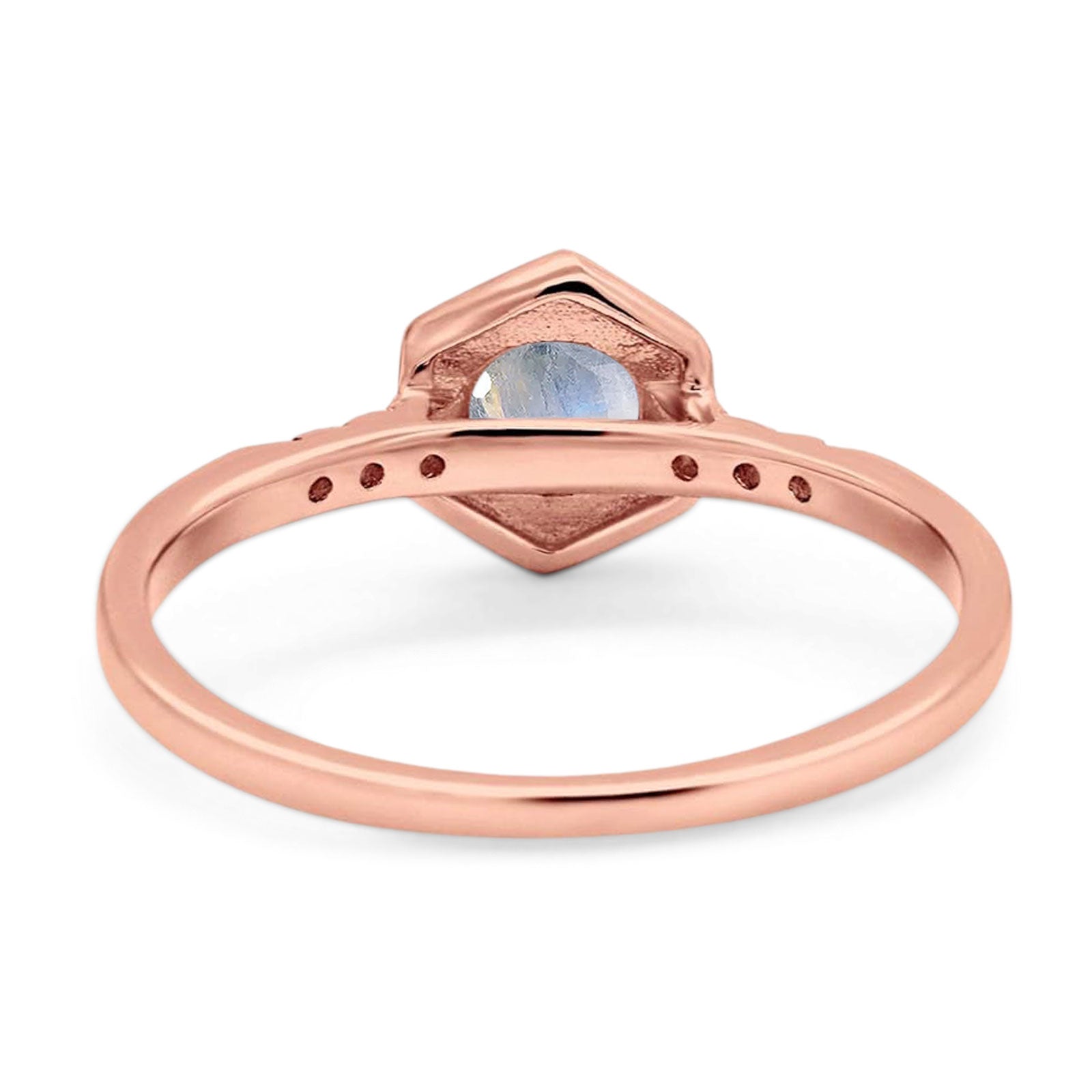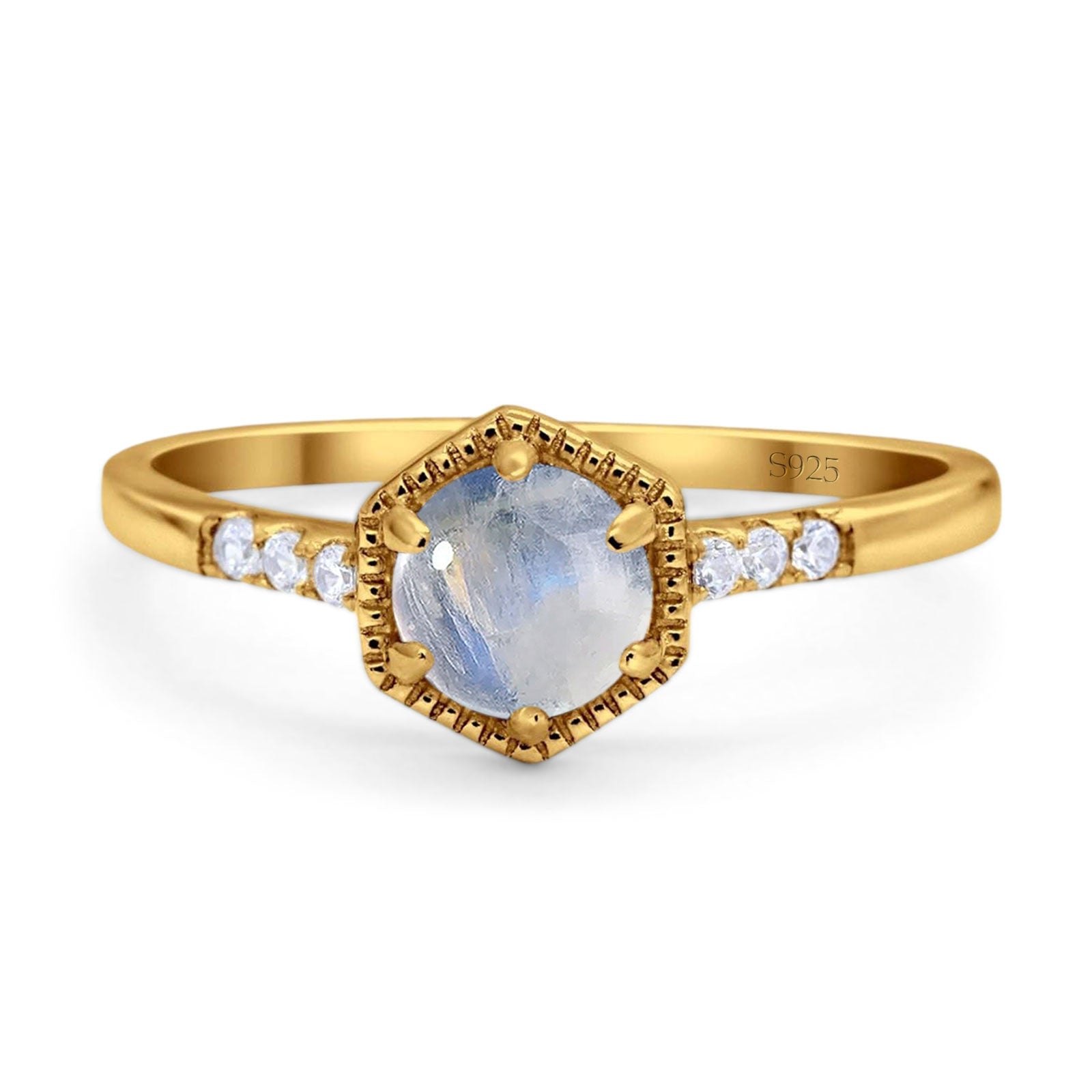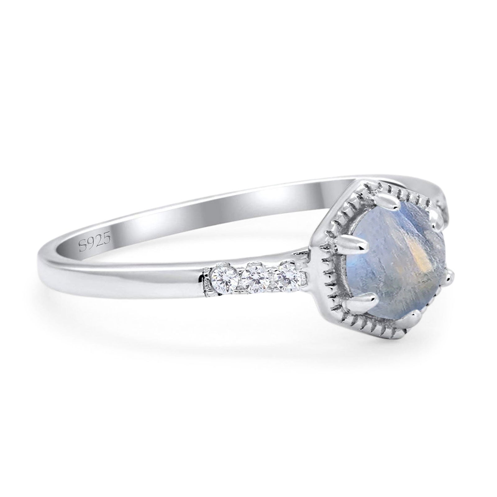 Hexagonal Shaped Round Natural Moonstone Wedding Ring 925 Sterling Silver