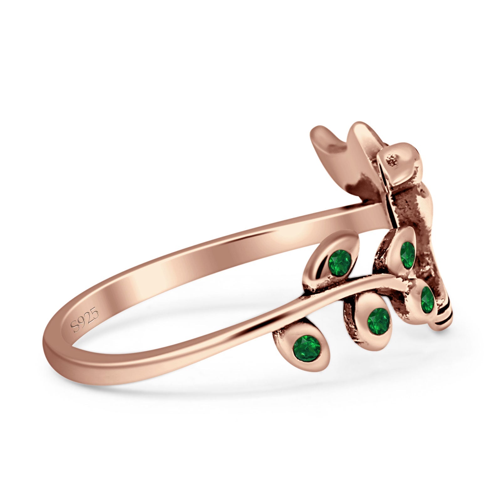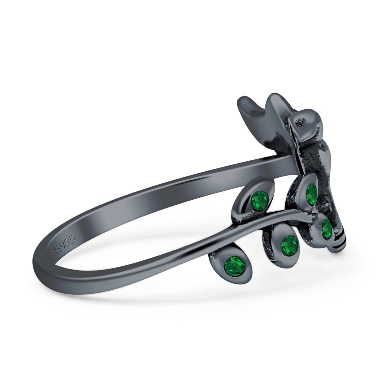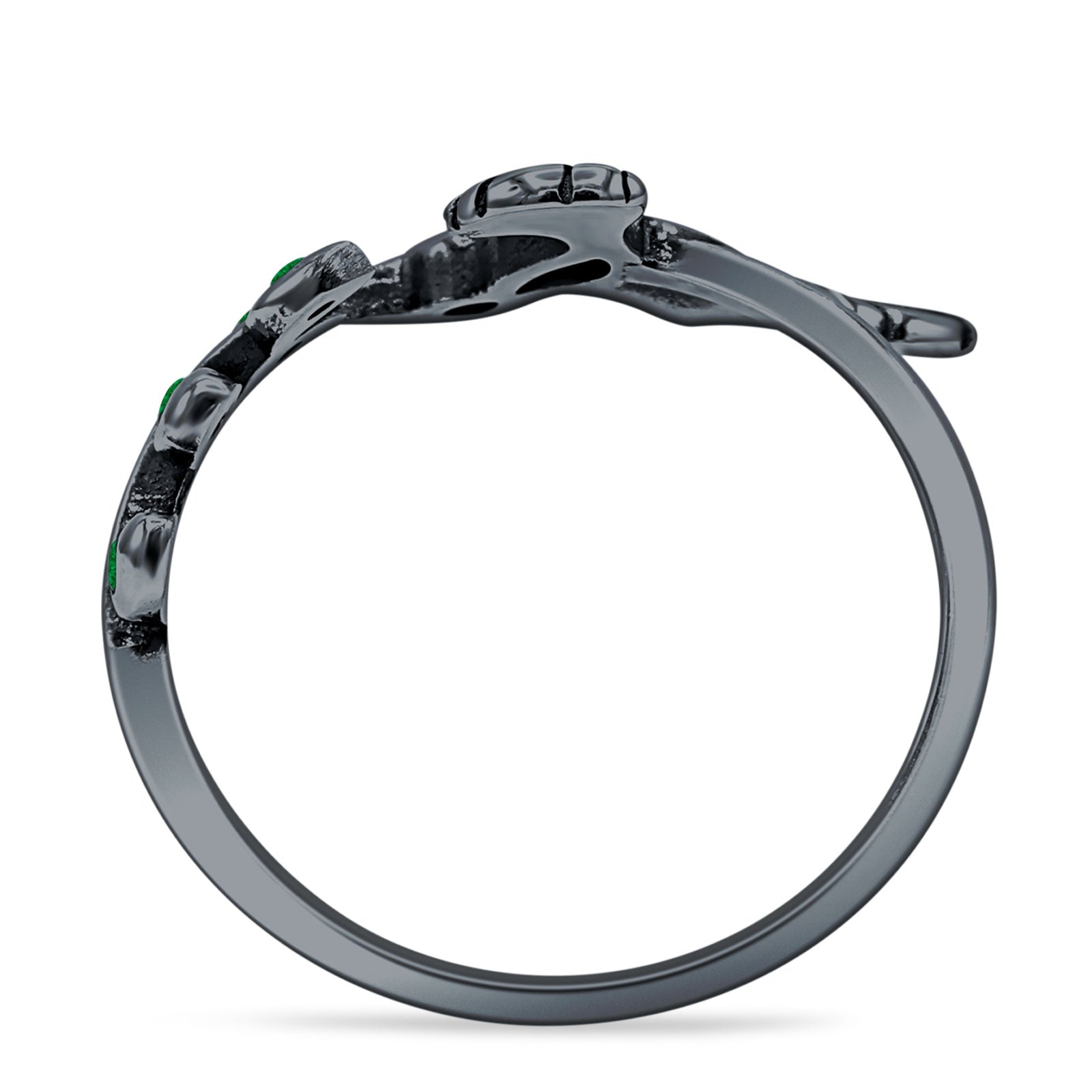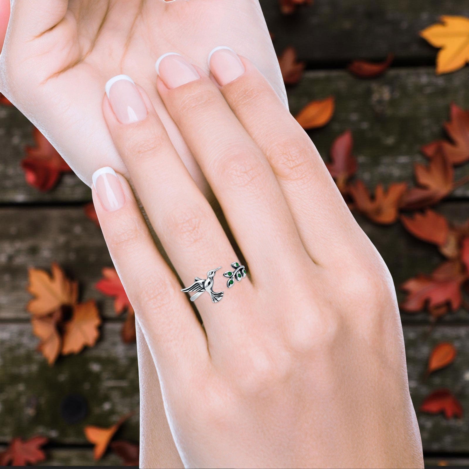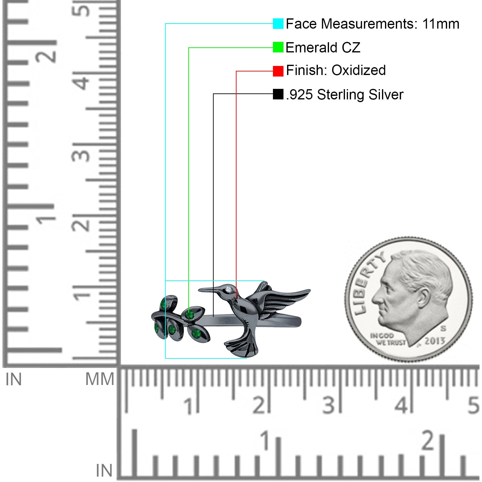 Hummingbird Ring 11mm Green Emerald CZ Oxidized 925 Sterling Silver
