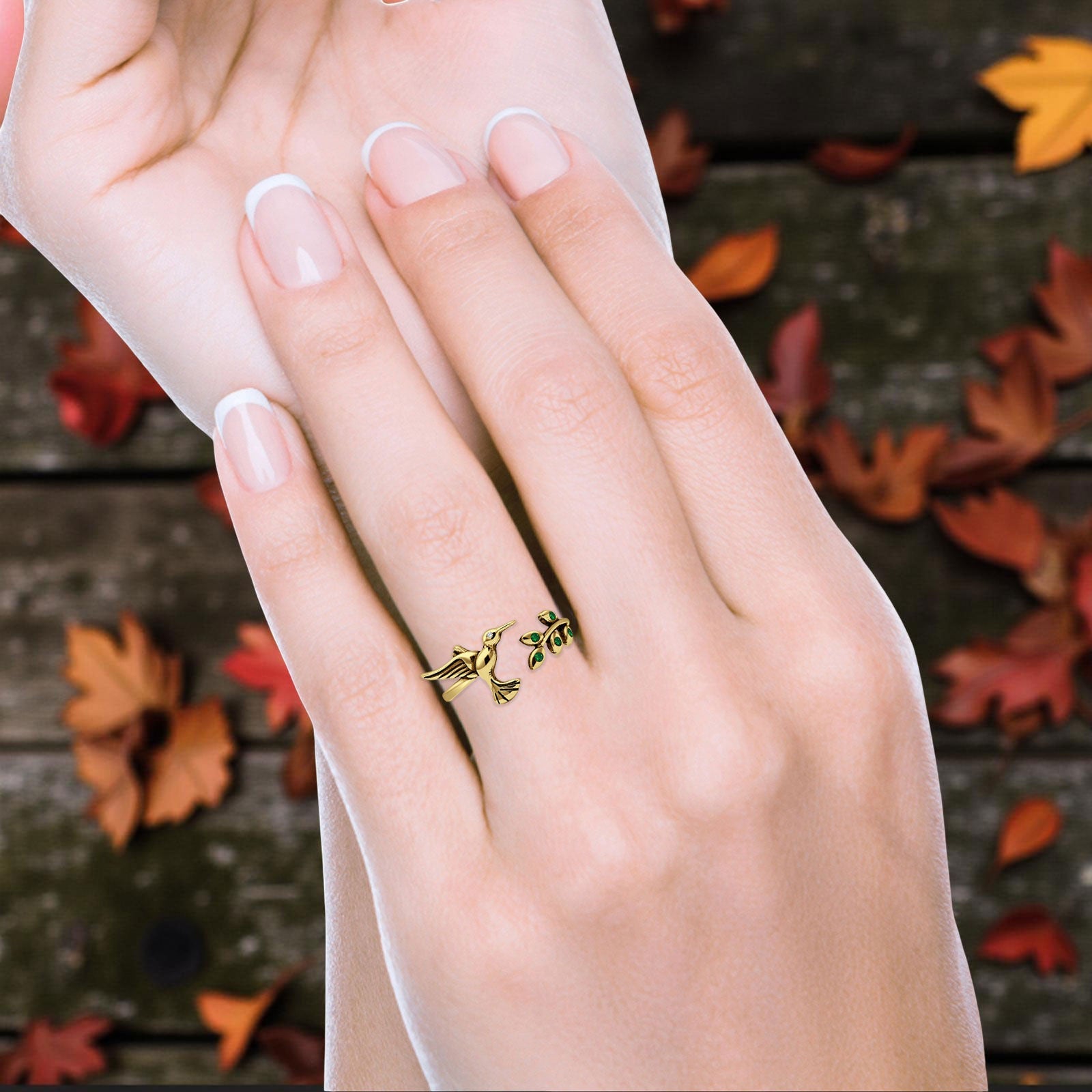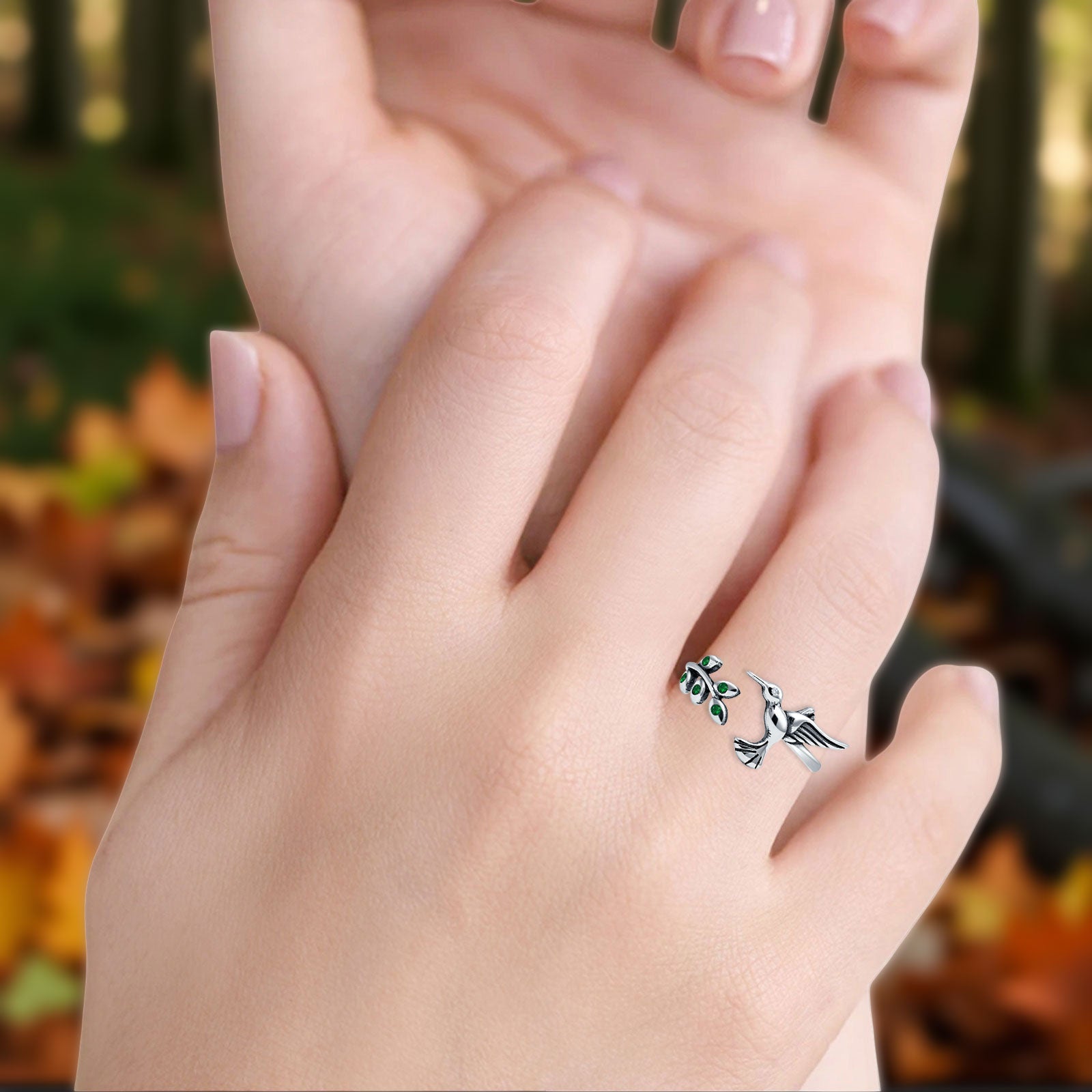 Design: Hummingbird Green Emerald CZ Oxidized Ring