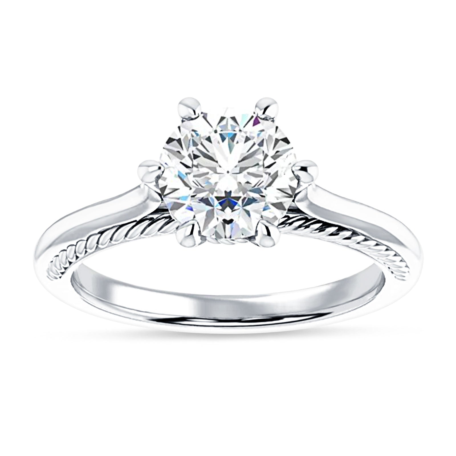This lab grown diamond ring is available in three different carat weights and also comes in a choice of various metal types.(Tarnish Resistant Sterling Silver, 14K Gold & 18K Gold)