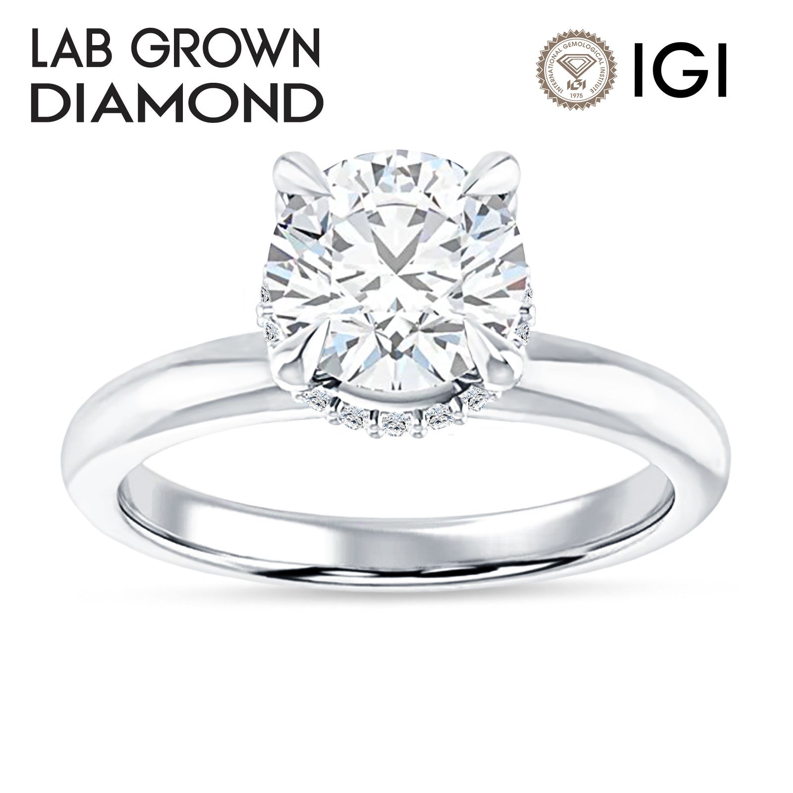 18K Gold IGI Certified Round 3 Carat Lab Grown Diamond Halo Solitaire Ring