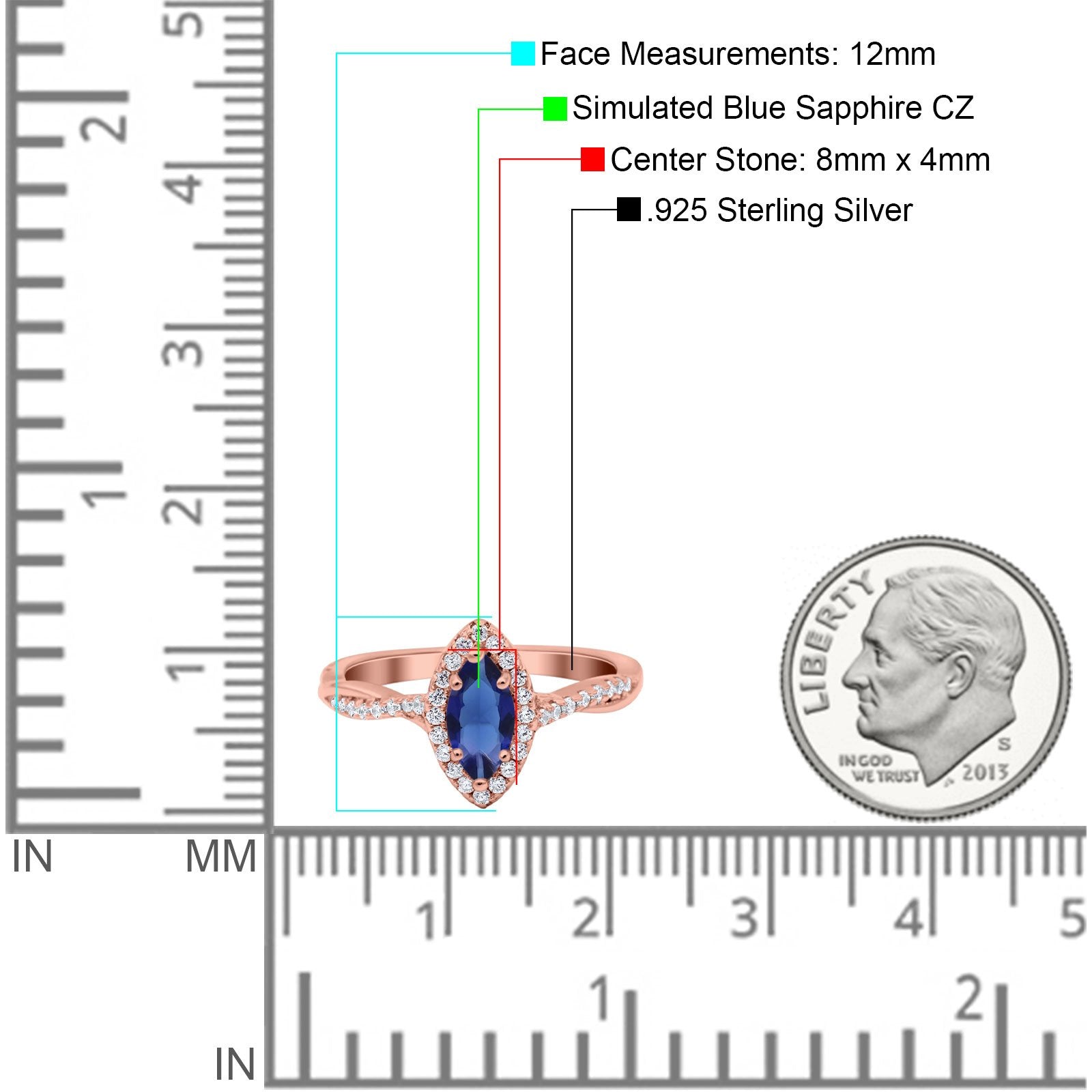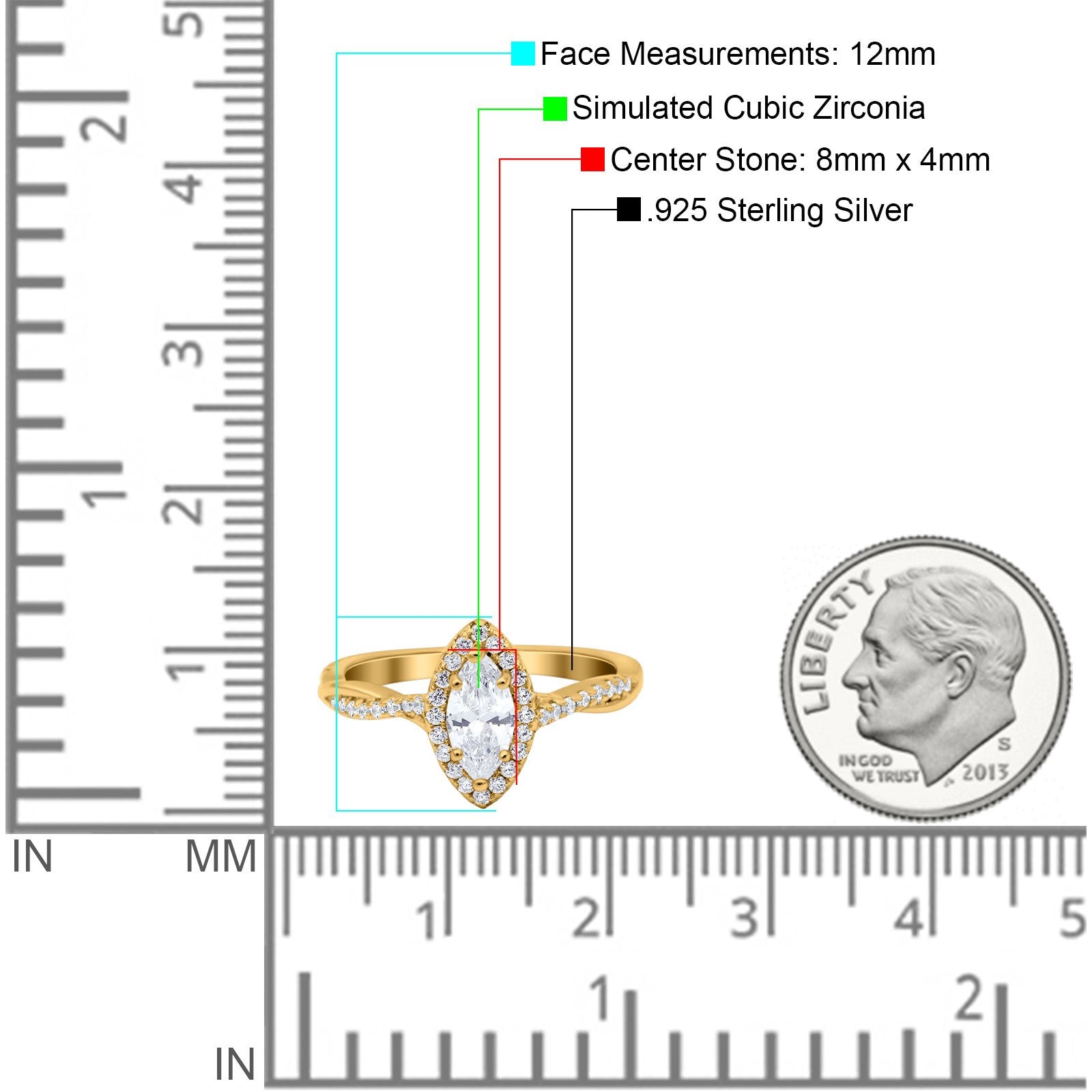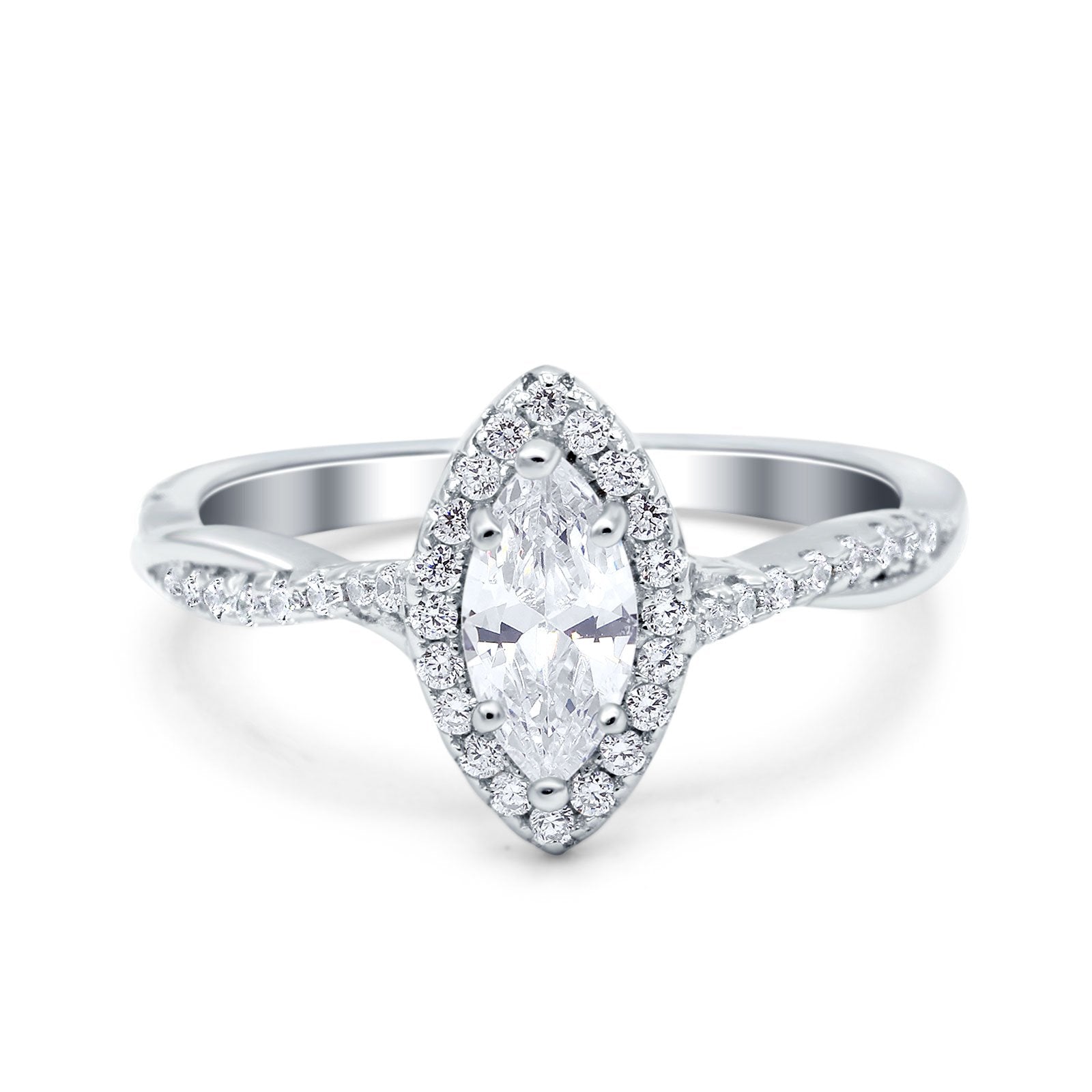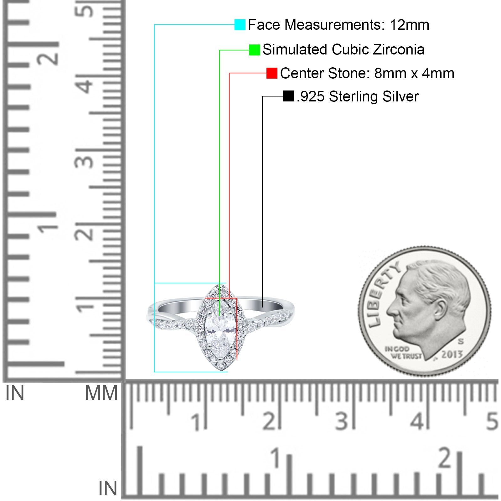 Infinity Twist Marquise Vintage Wedding Ring Simulated Cubic Zirconia 925 Sterling Silver