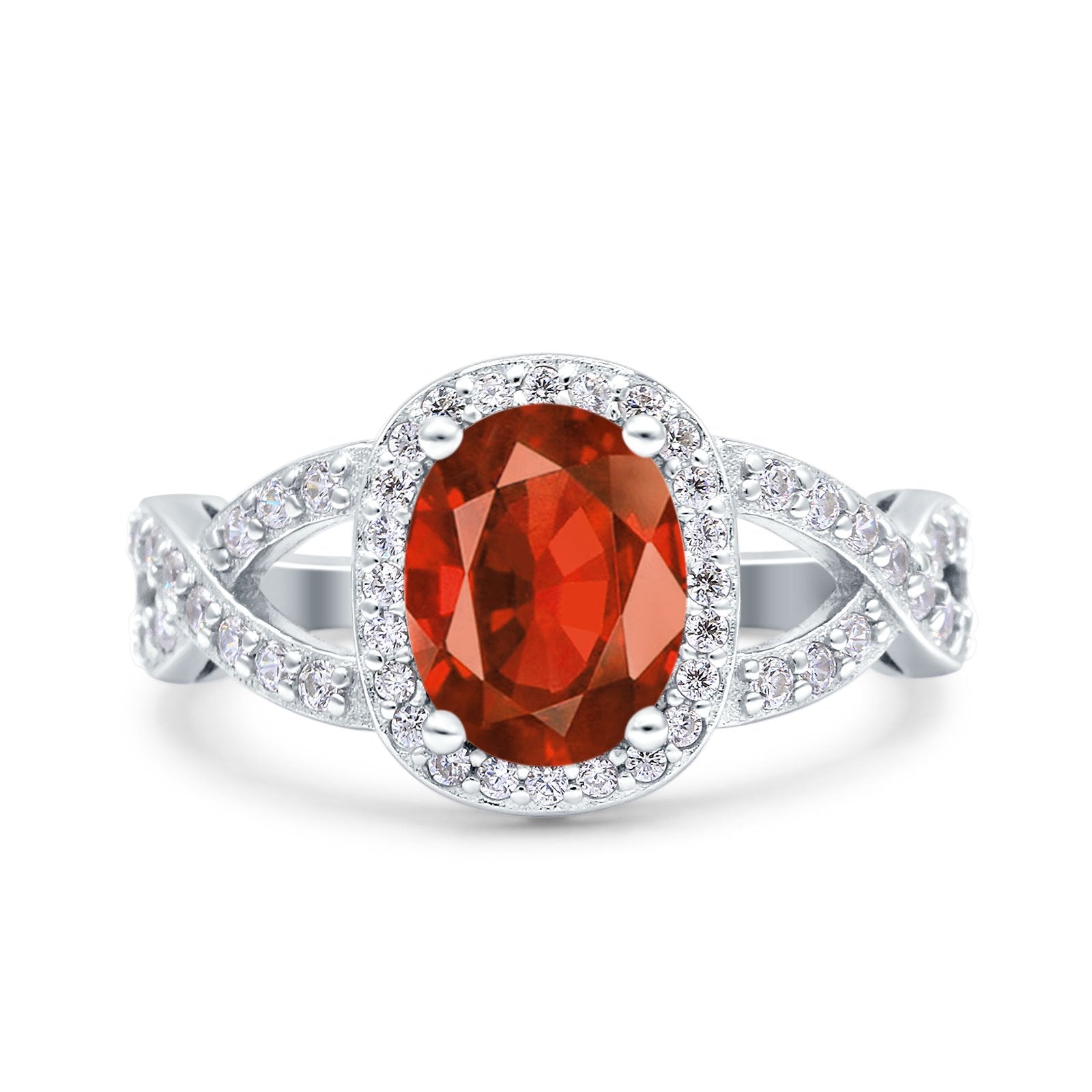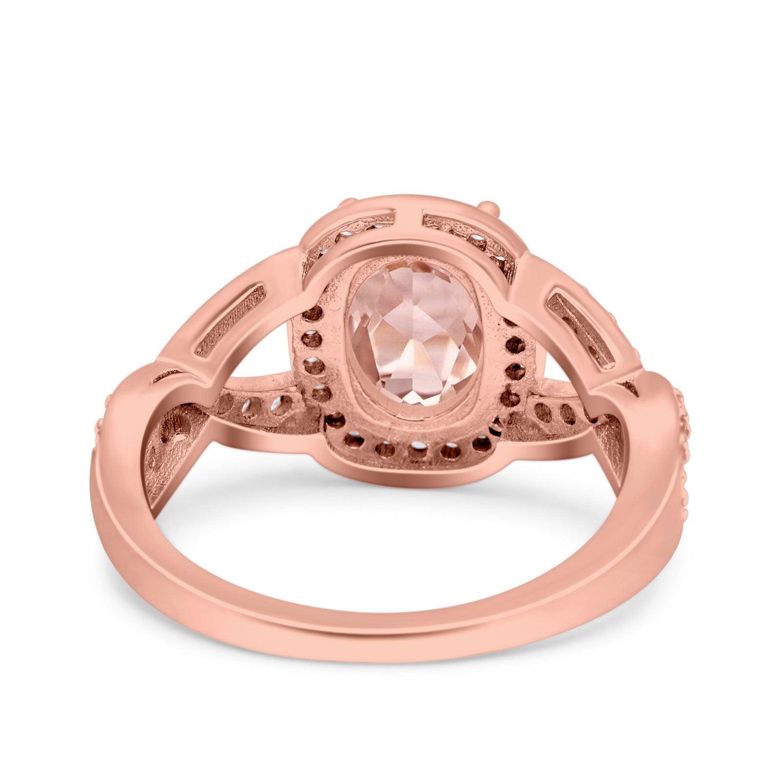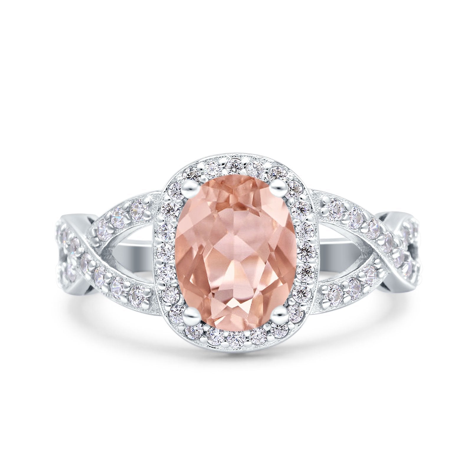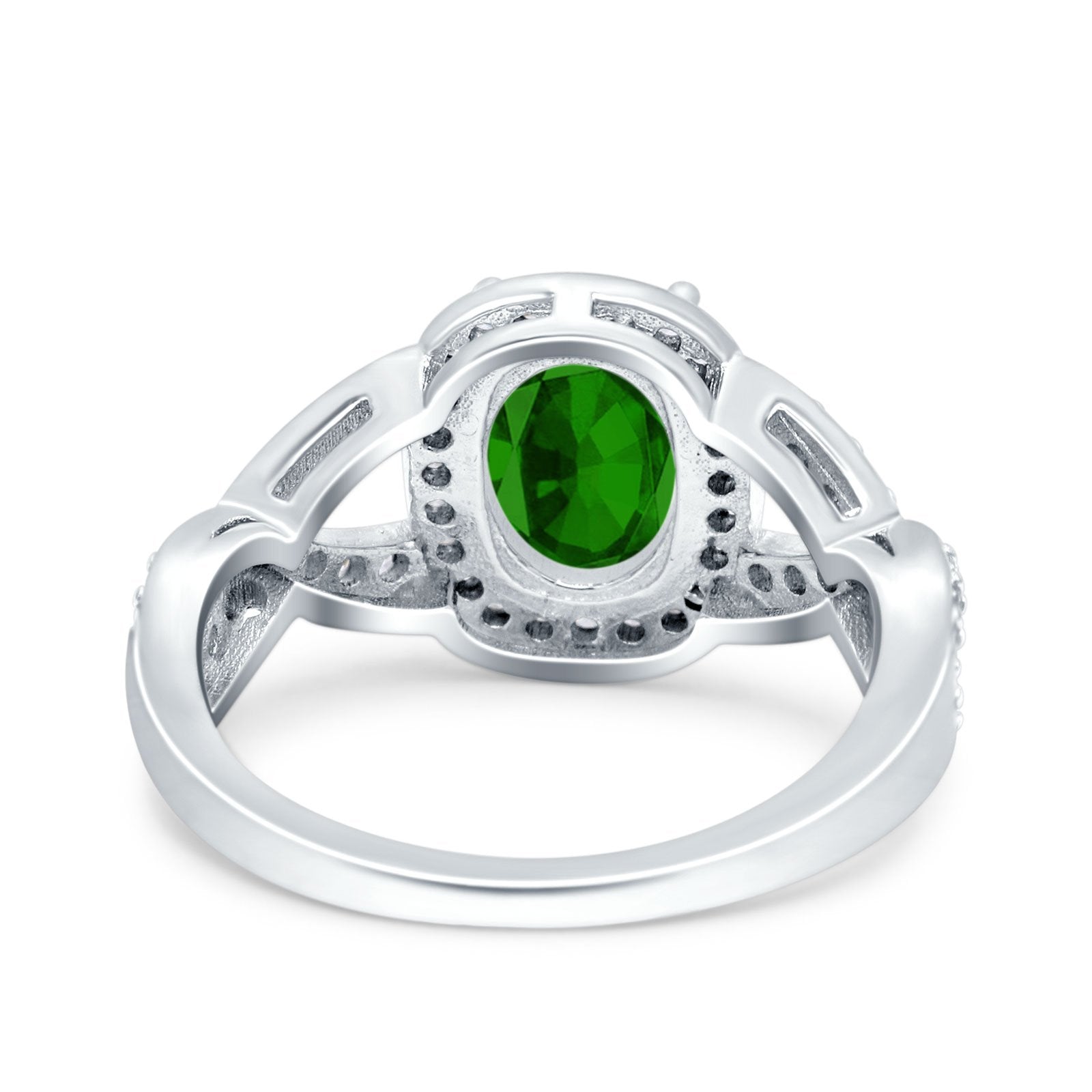 Infinity Twisted Shank Art Deco Halo Oval Wedding Engagement Ring Round Simulated Cubic Zirconia 925 Sterling Silver