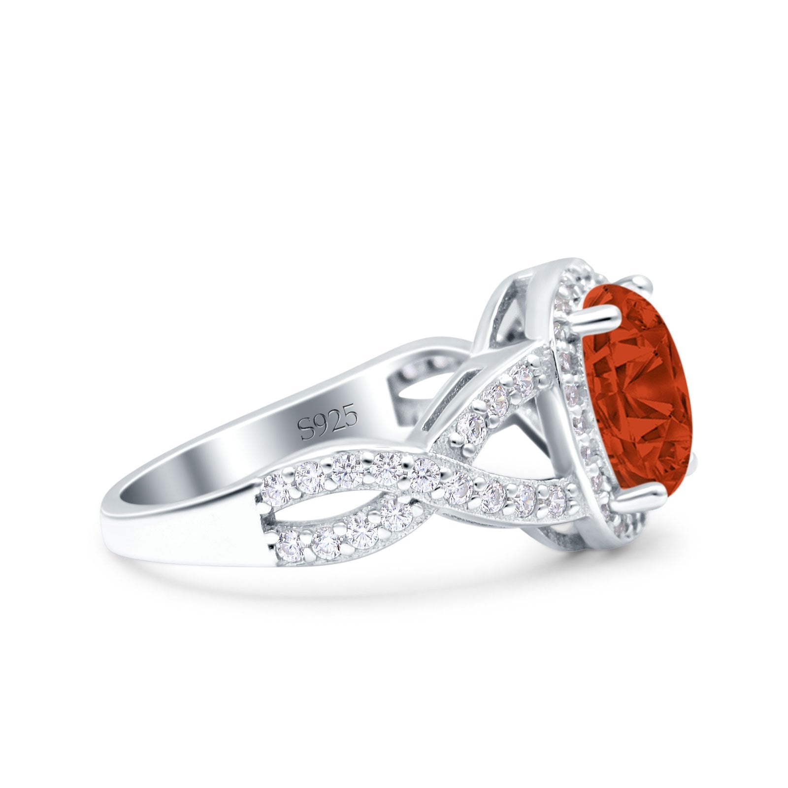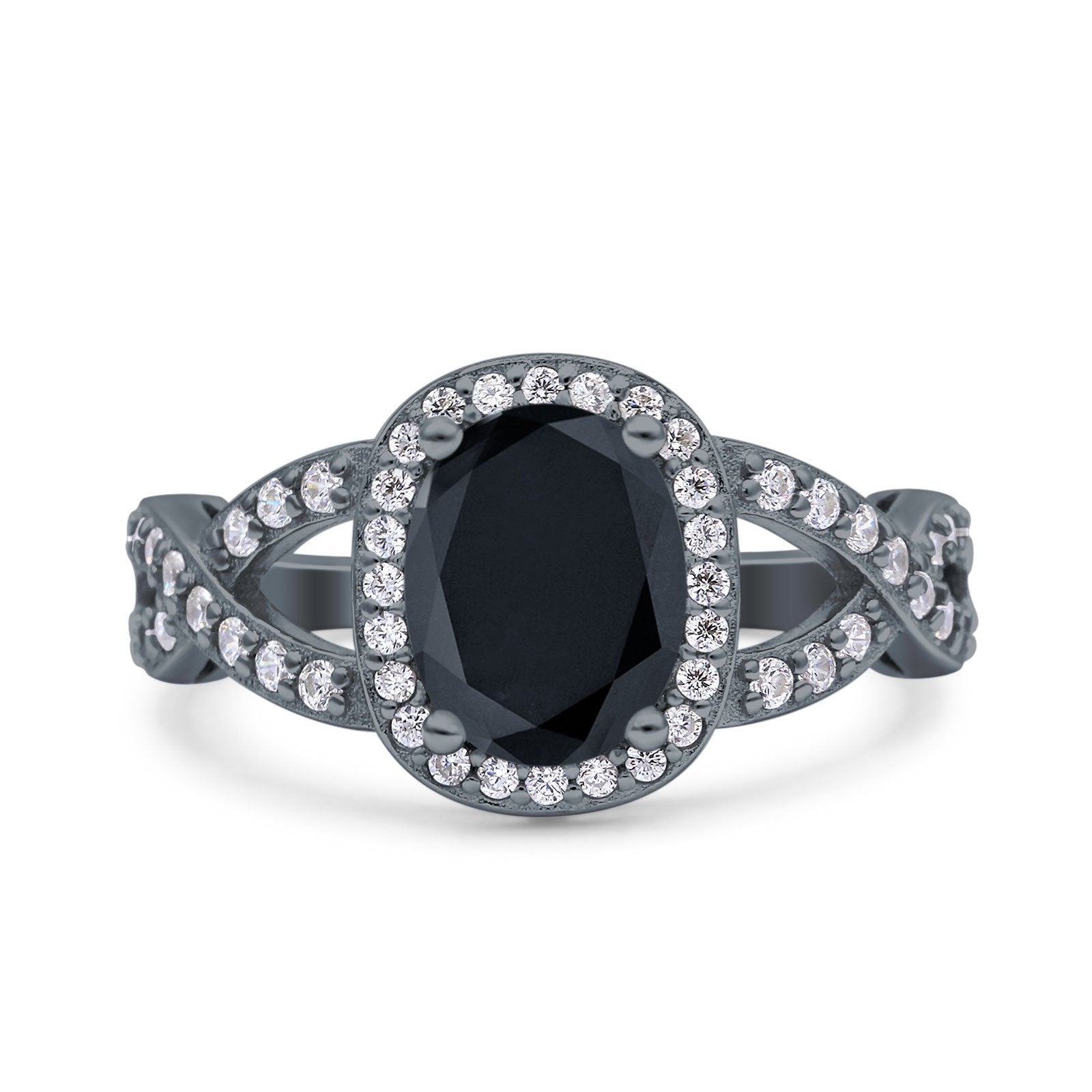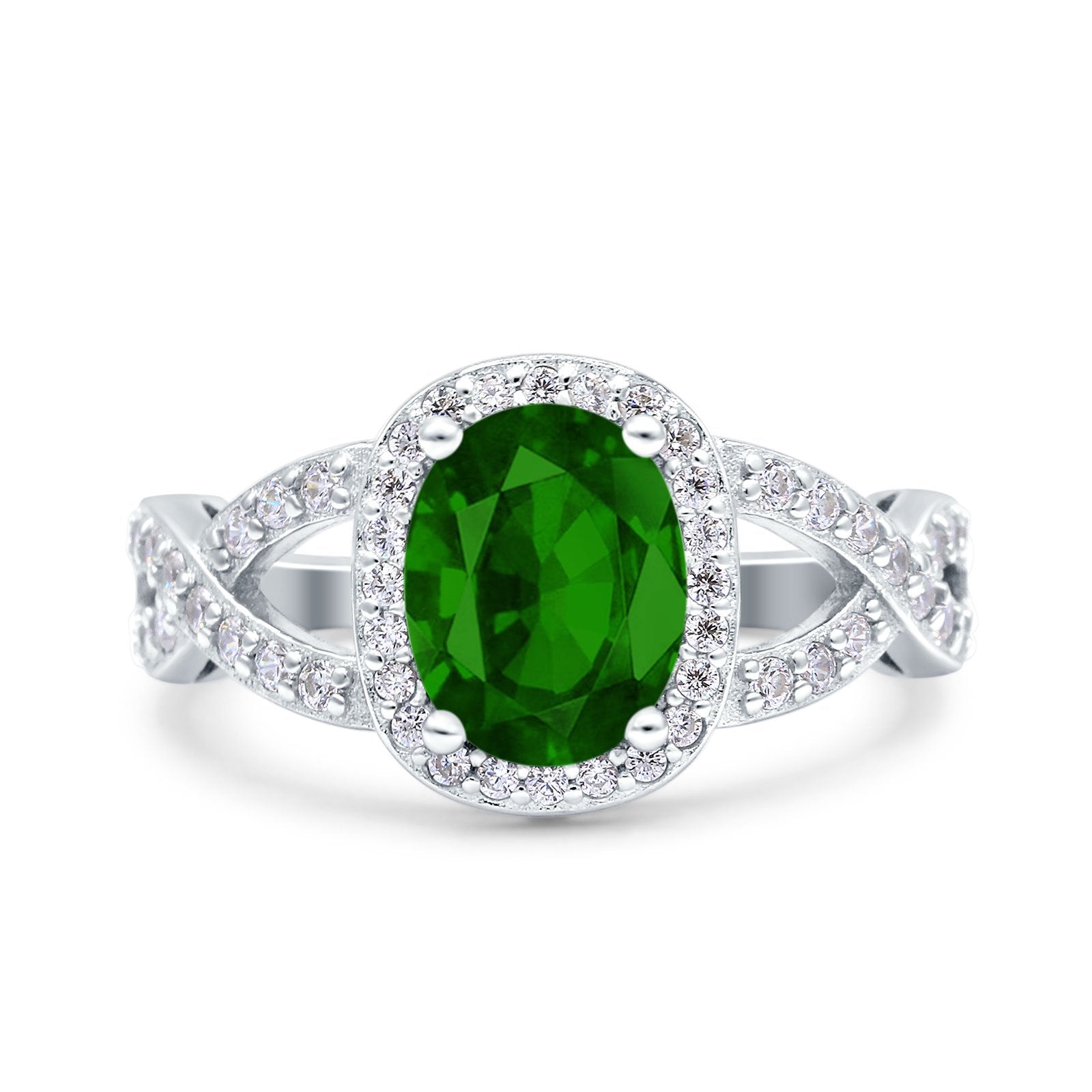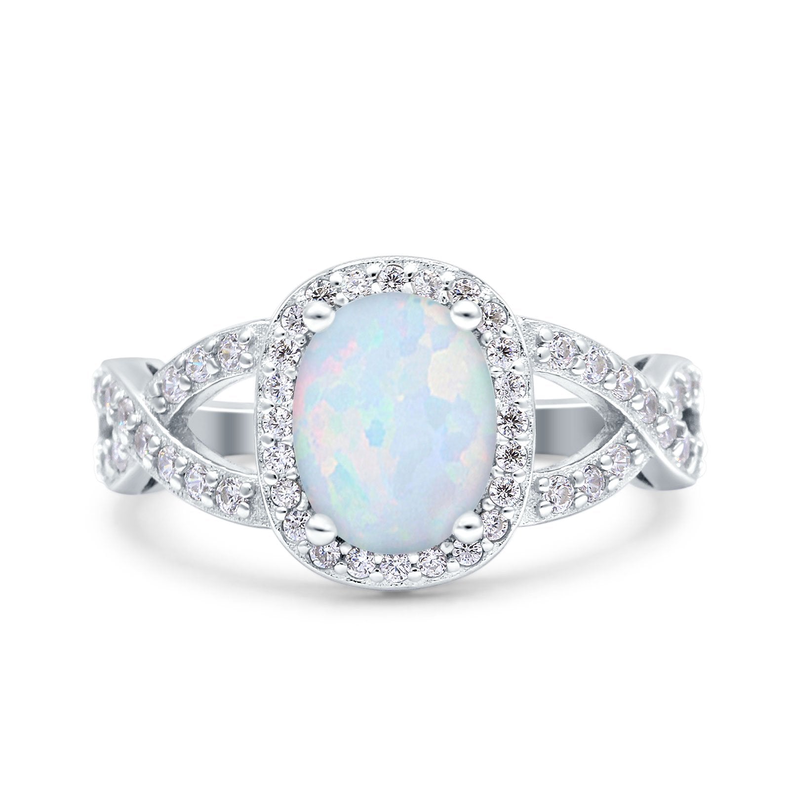 Infinity Twisted Shank Art Deco Halo Oval Wedding Engagement Ring Round Simulated Cubic Zirconia 925 Sterling Silver