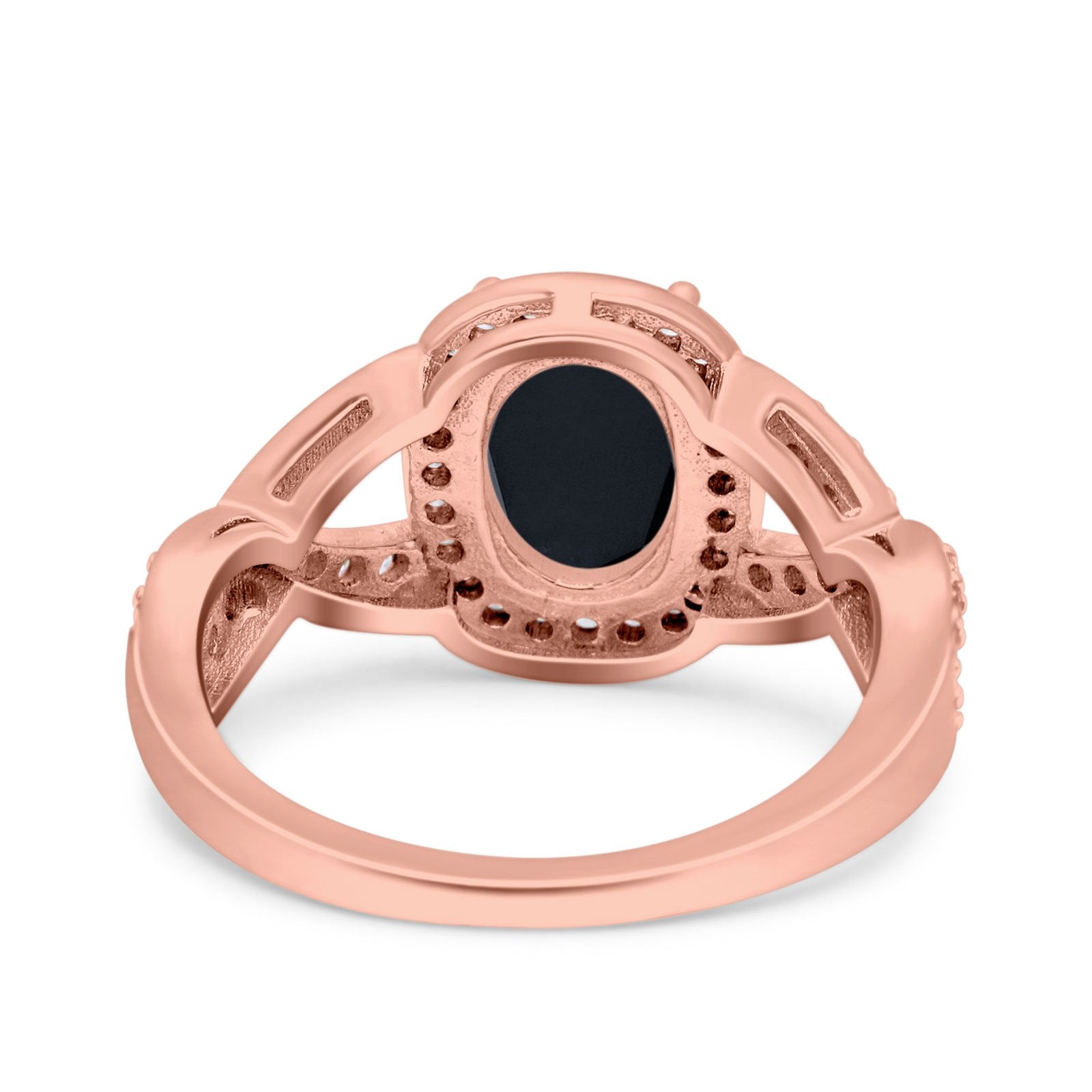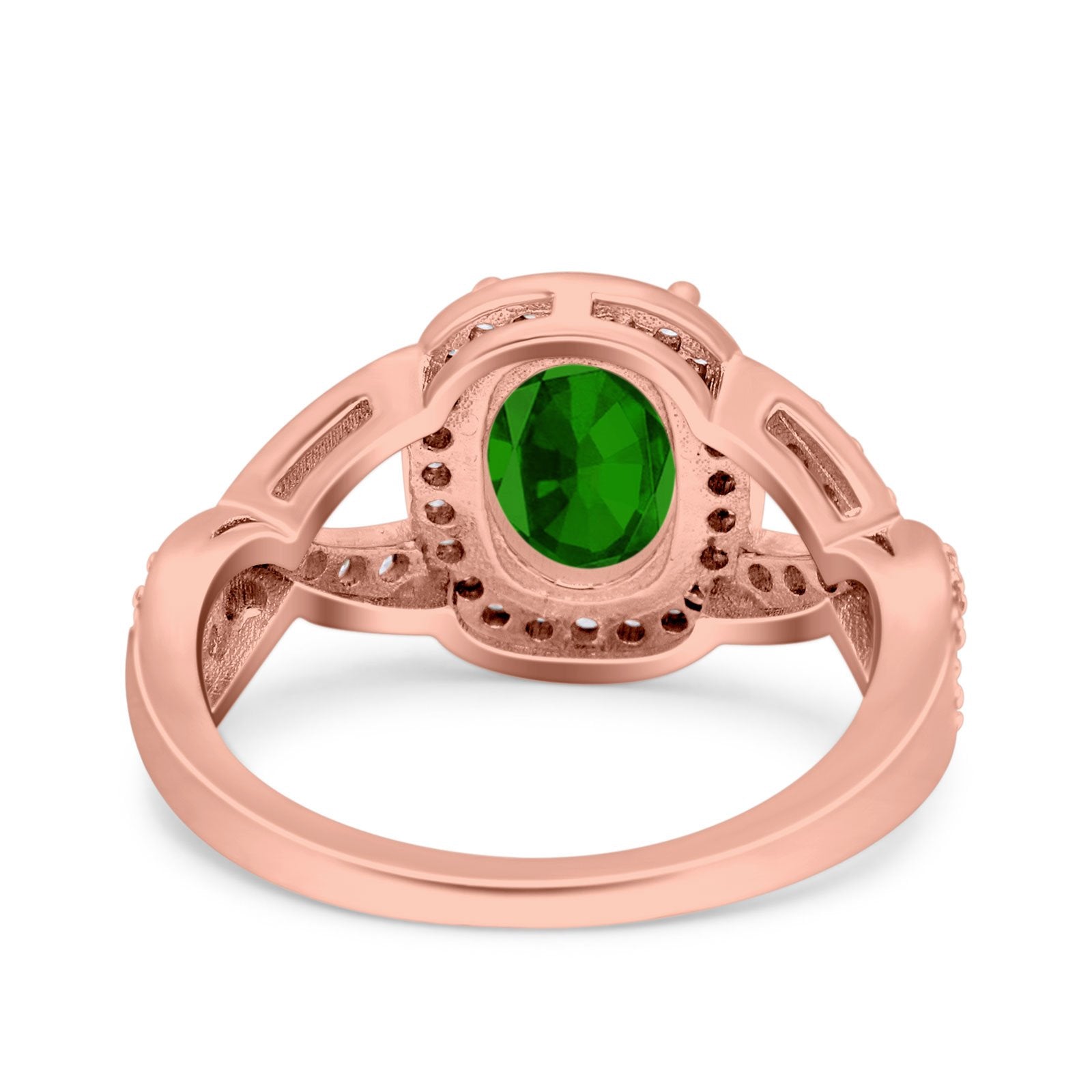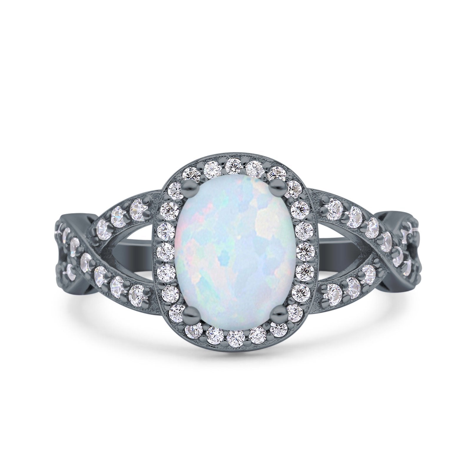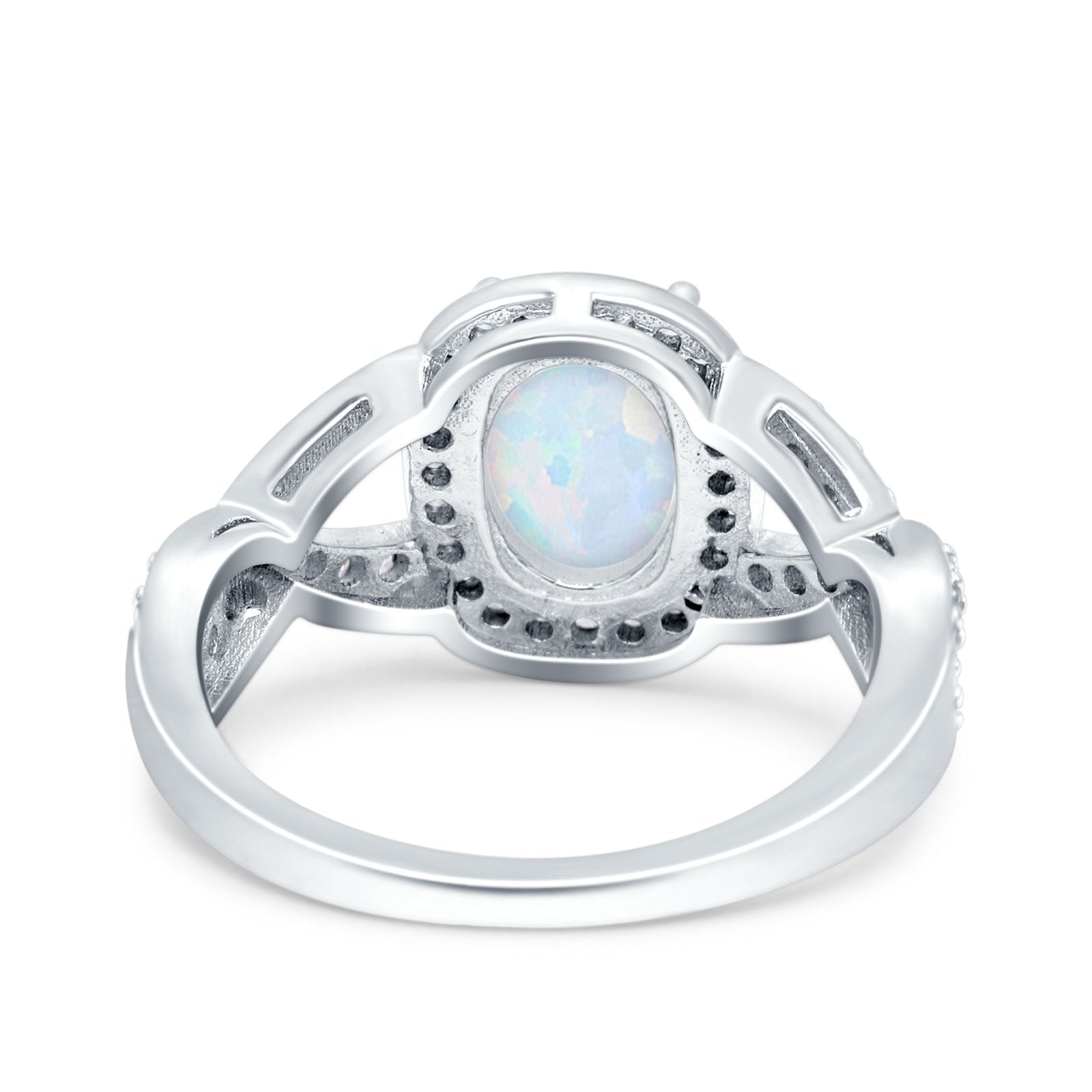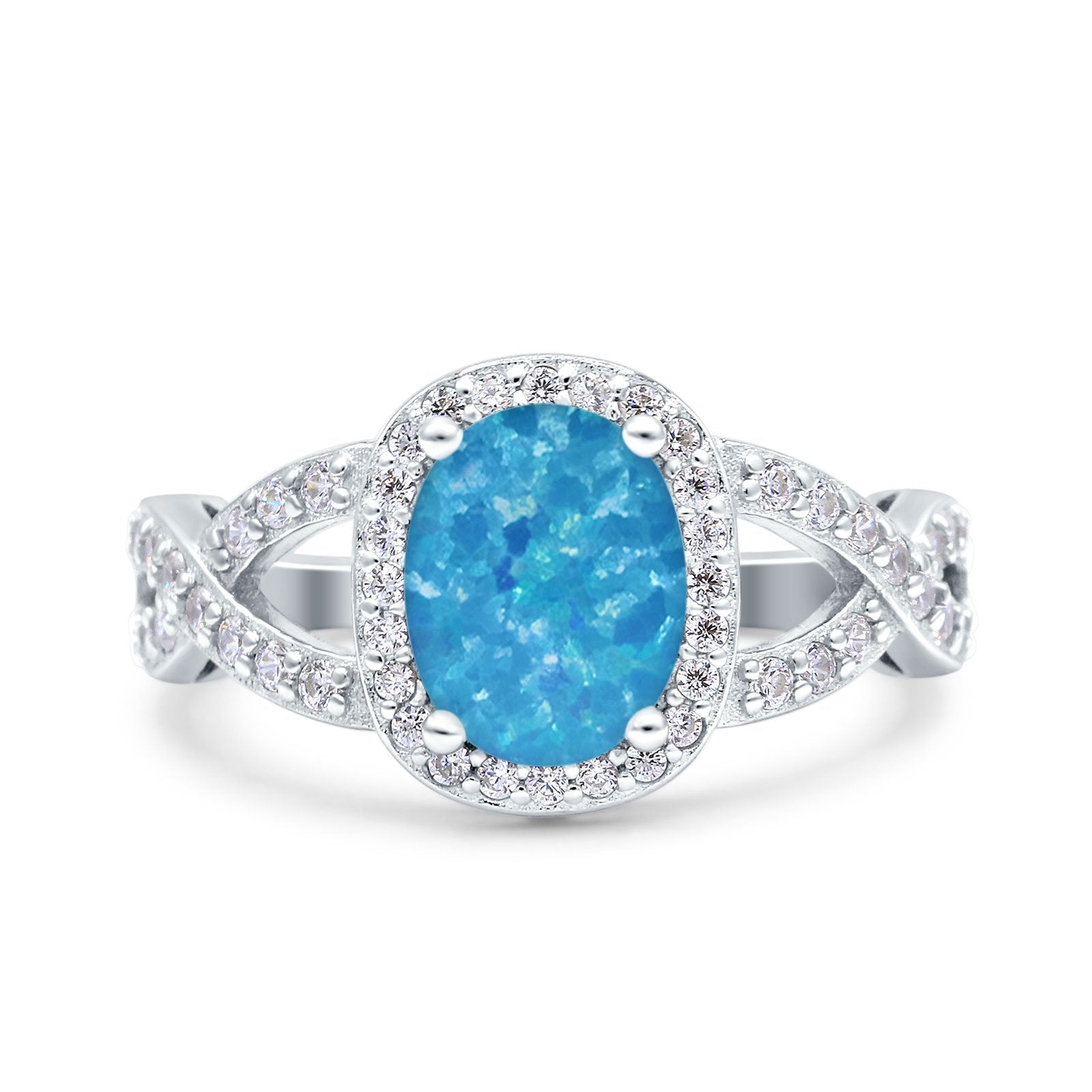 Infinity Twisted Shank Art Deco Halo Oval Wedding Engagement Ring Round Simulated Cubic Zirconia 925 Sterling Silver
