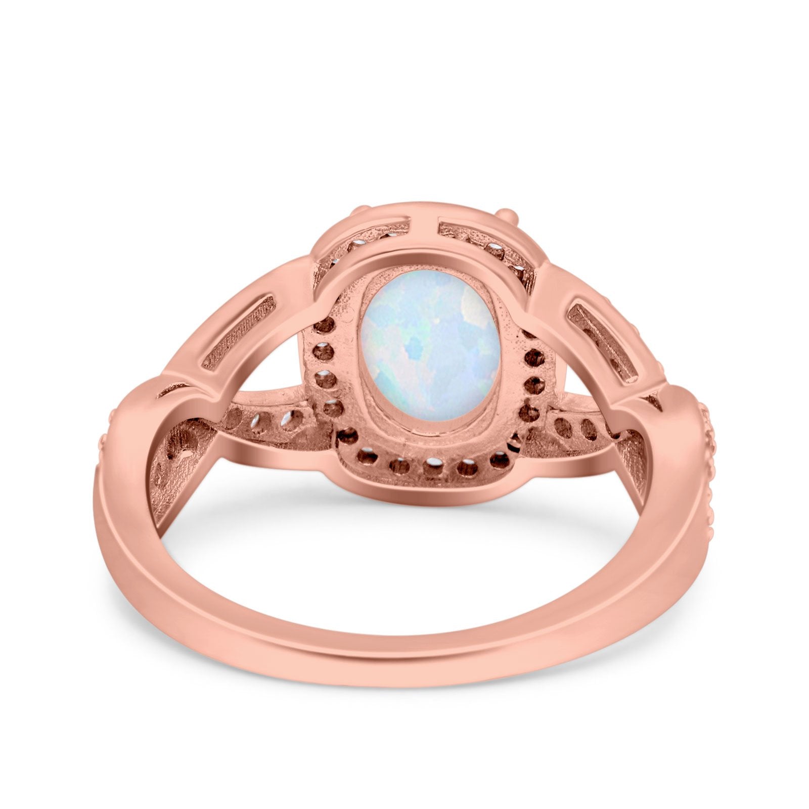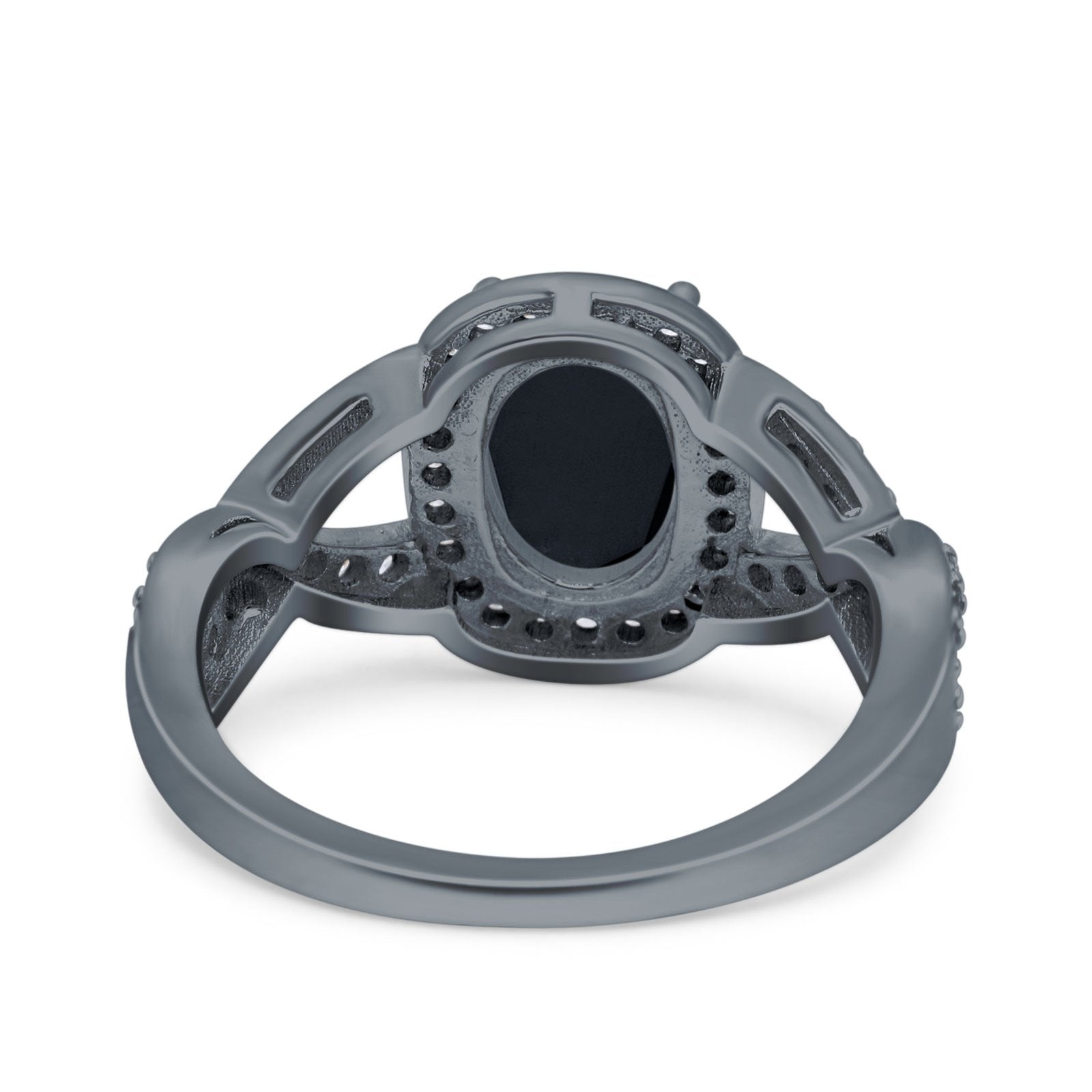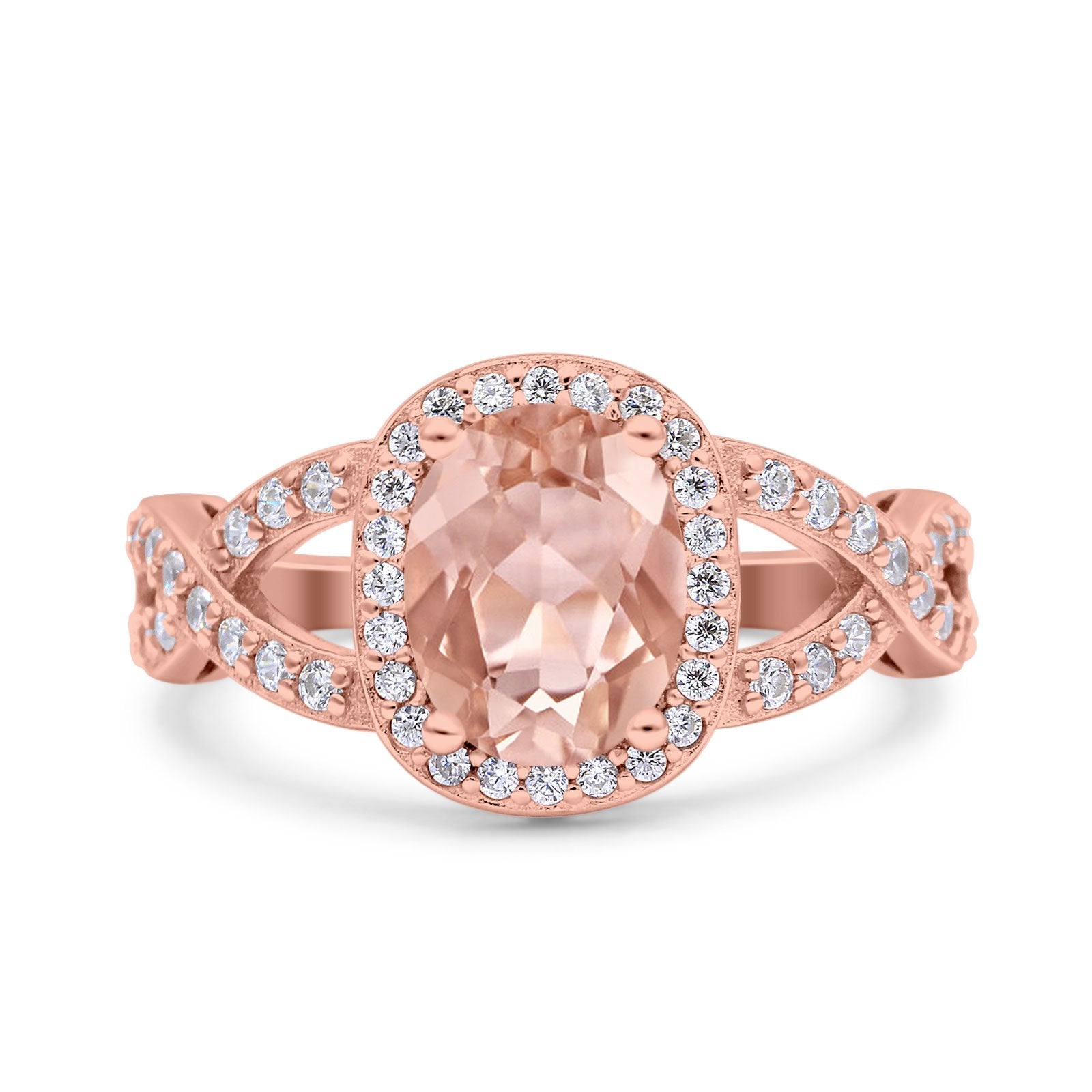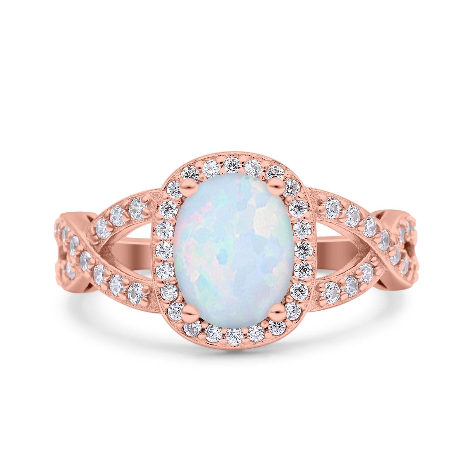 Infinity Twisted Shank Art Deco Halo Oval Wedding Engagement Ring Round Simulated Cubic Zirconia 925 Sterling Silver