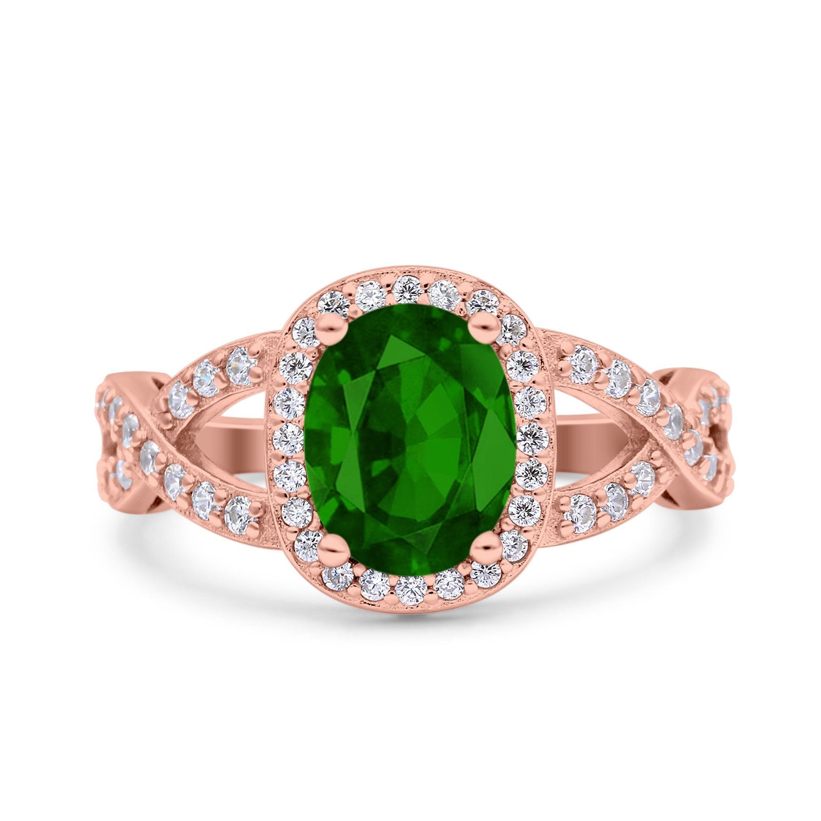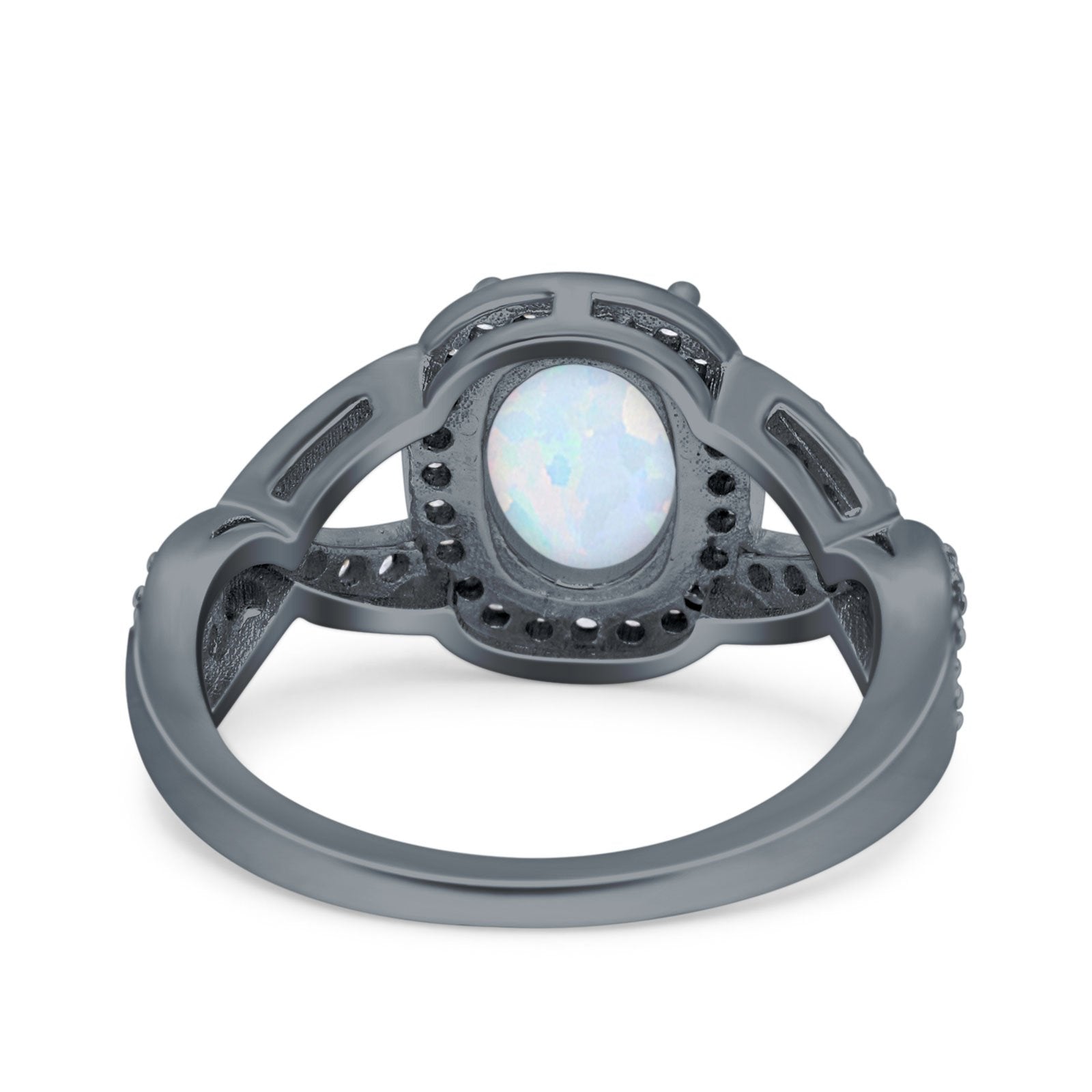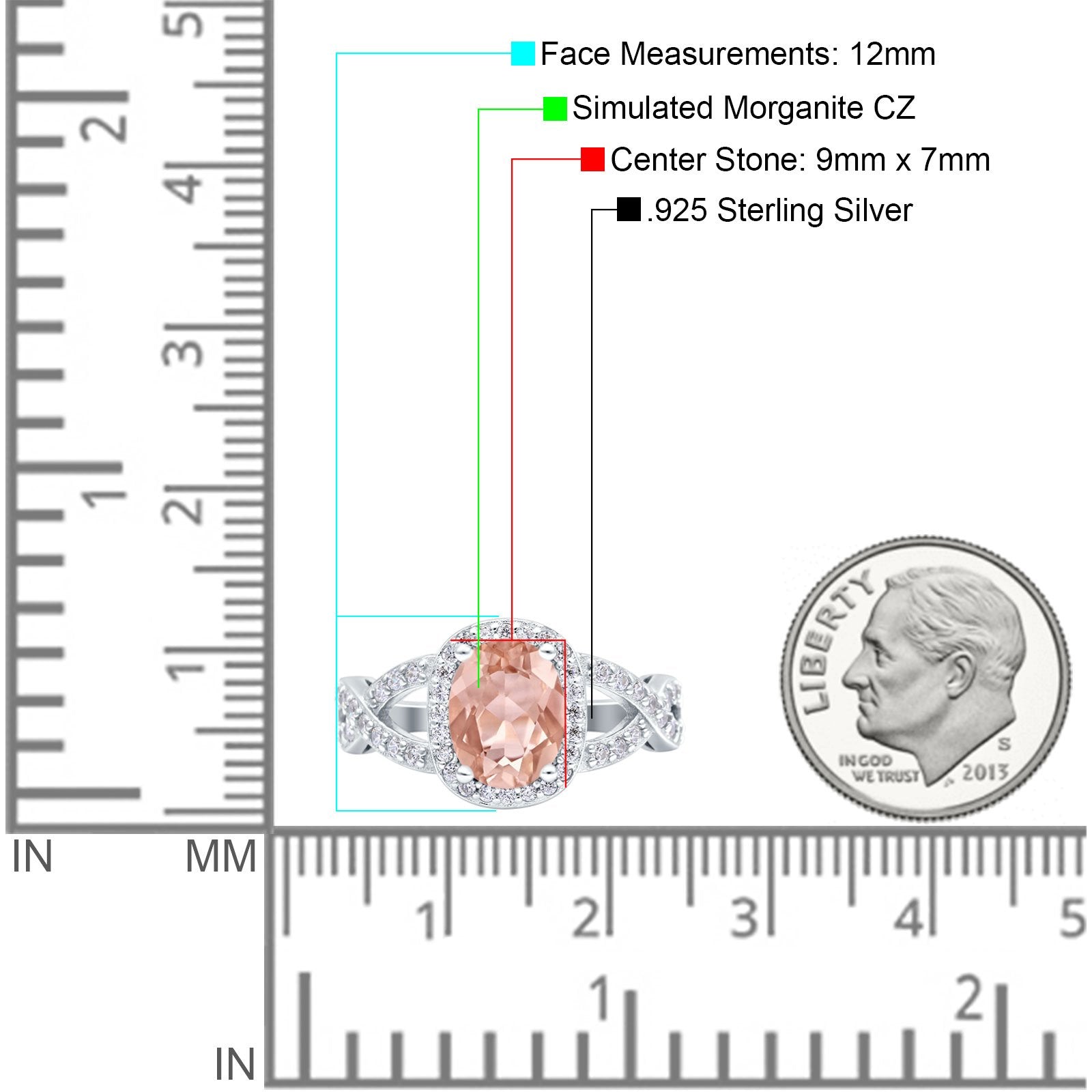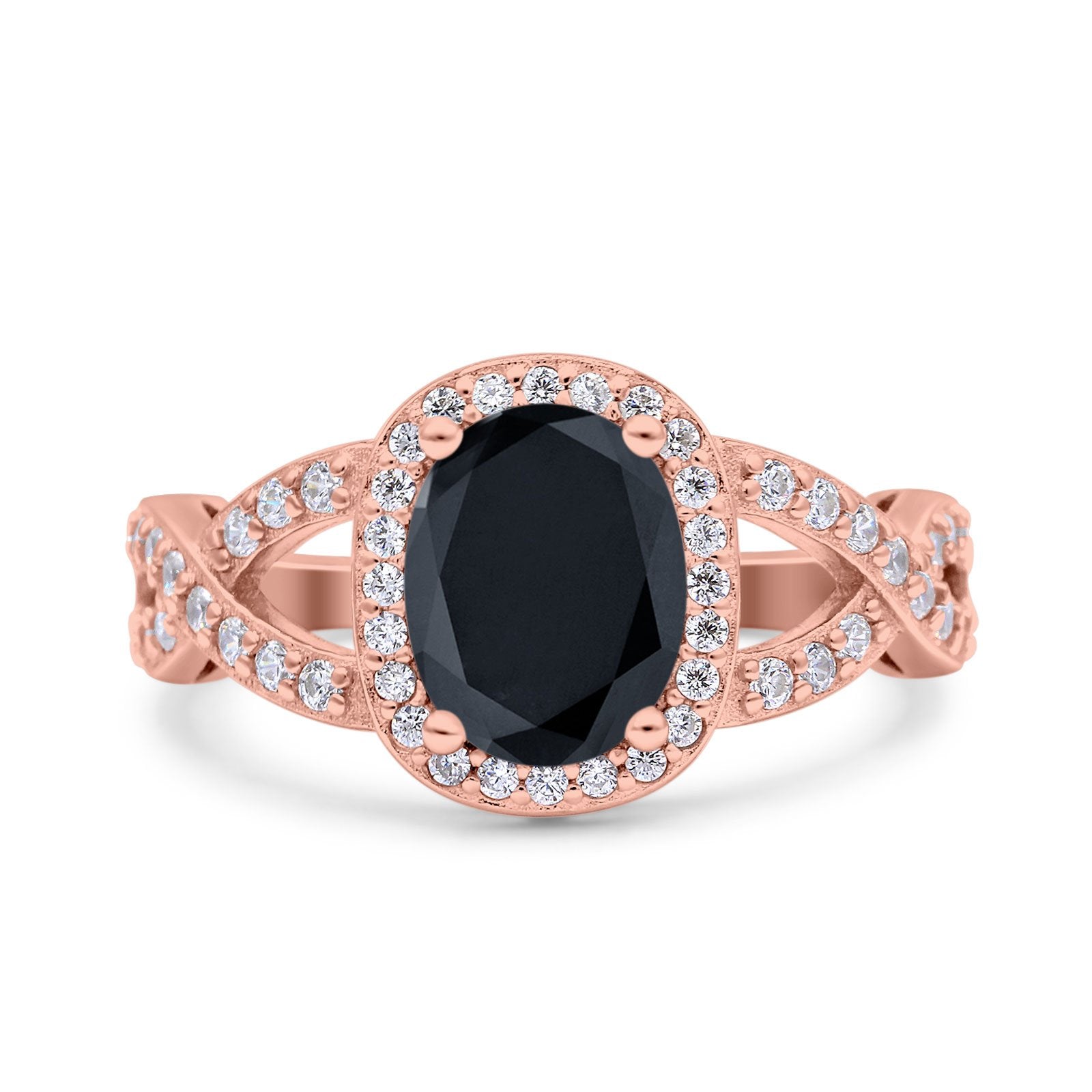 Infinity Twisted Shank Art Deco Halo Oval Wedding Engagement Ring Round Simulated Cubic Zirconia 925 Sterling Silver