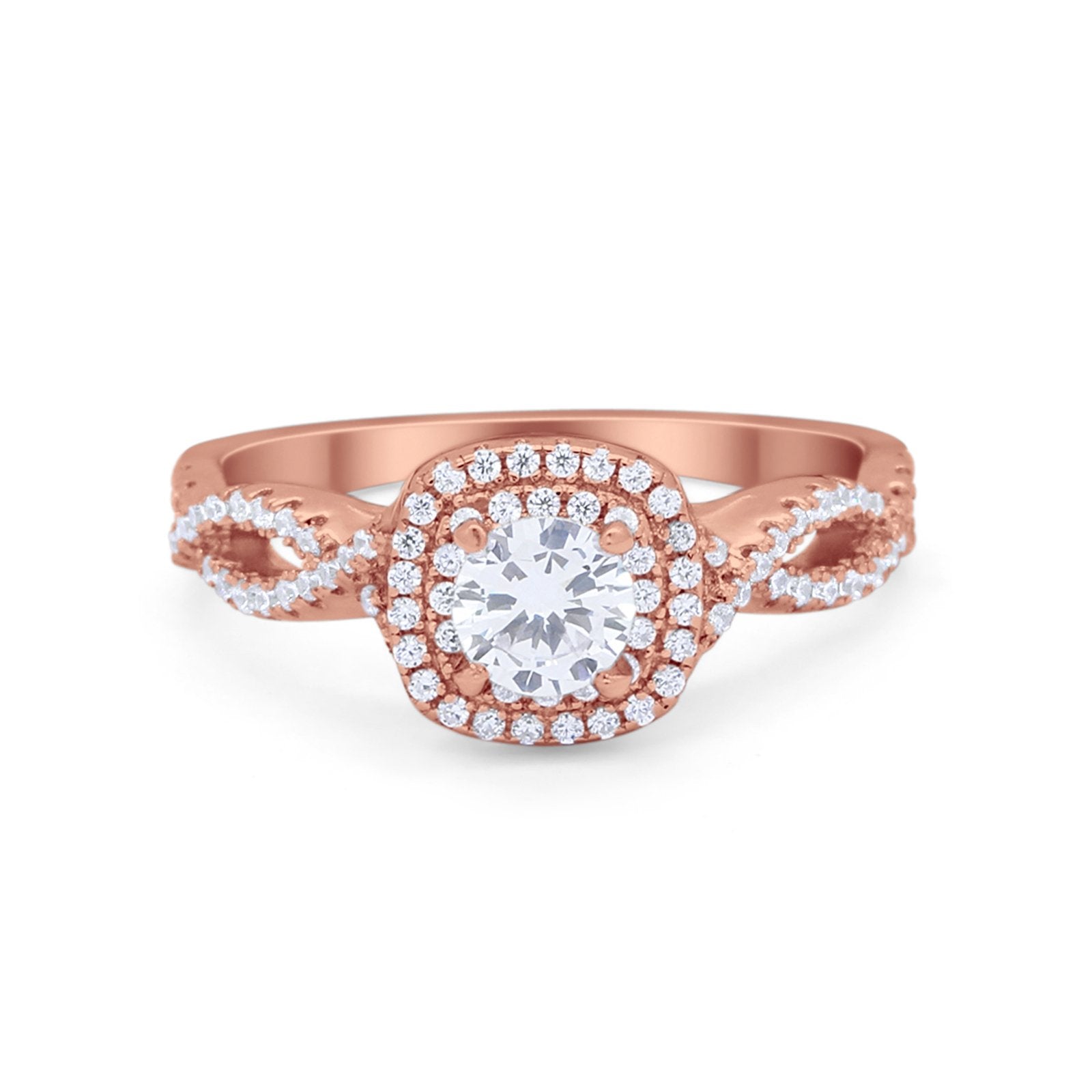 Infinity Twisted Shank Wedding Engagement Ring Round Cubic Zirconia 925 Sterling Silver