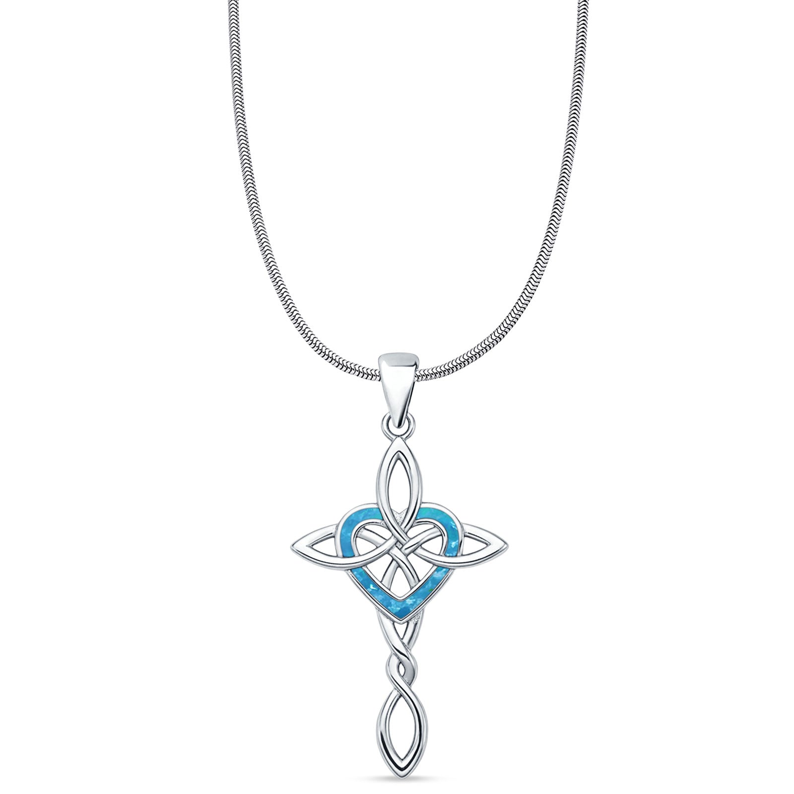 Style: Lab Created Blue Opal Celtic Cross & Heart Pendant Necklace