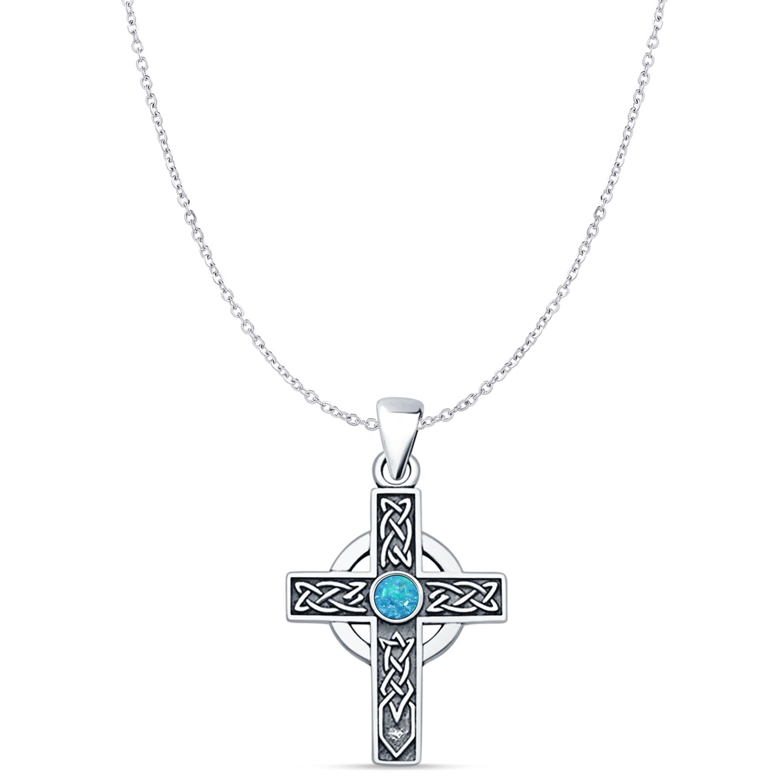 Style: Lab Created Blue Opal Celtic Cross Pendant Necklace