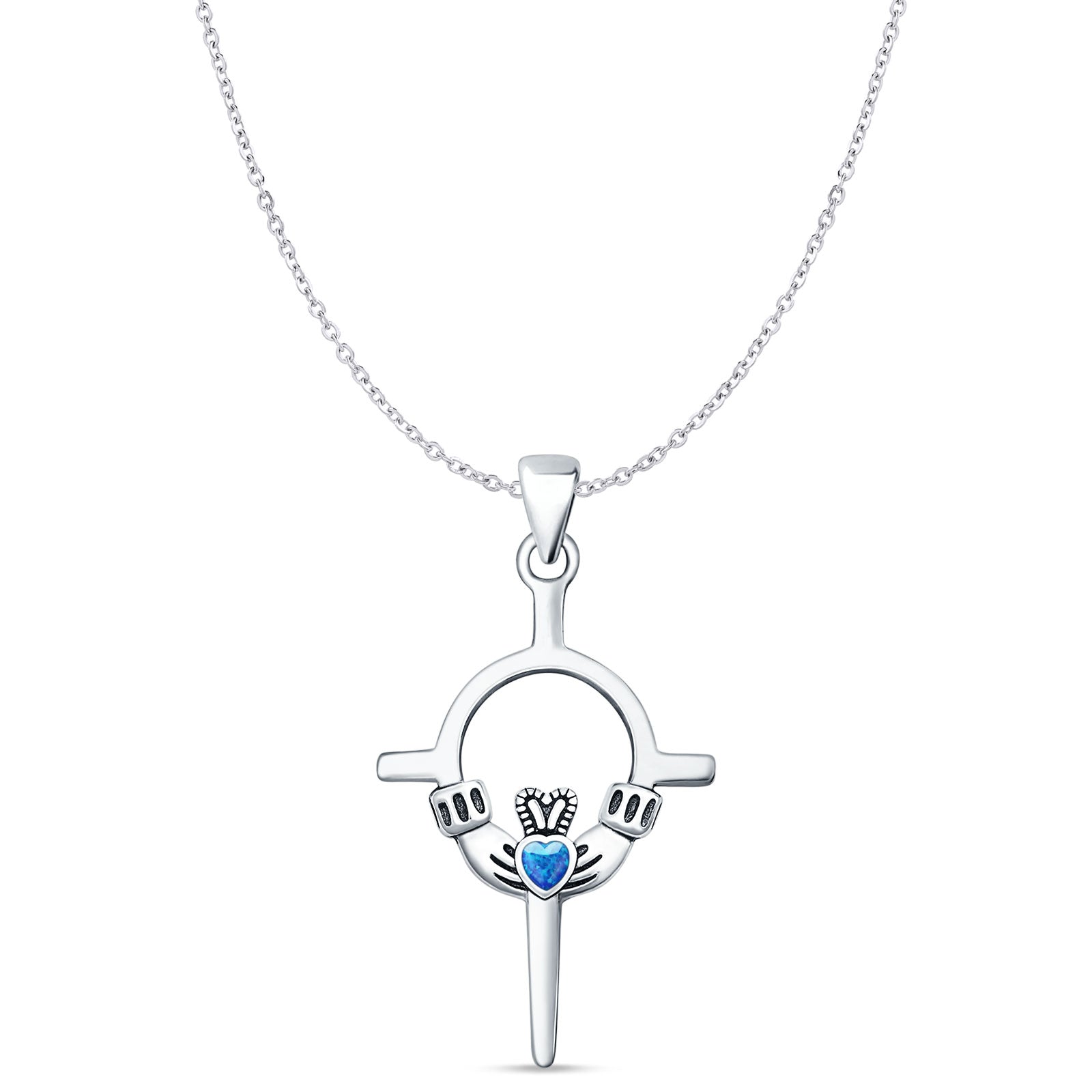 Style: Lab Created Blue Opal Claddagh Pendant Necklace