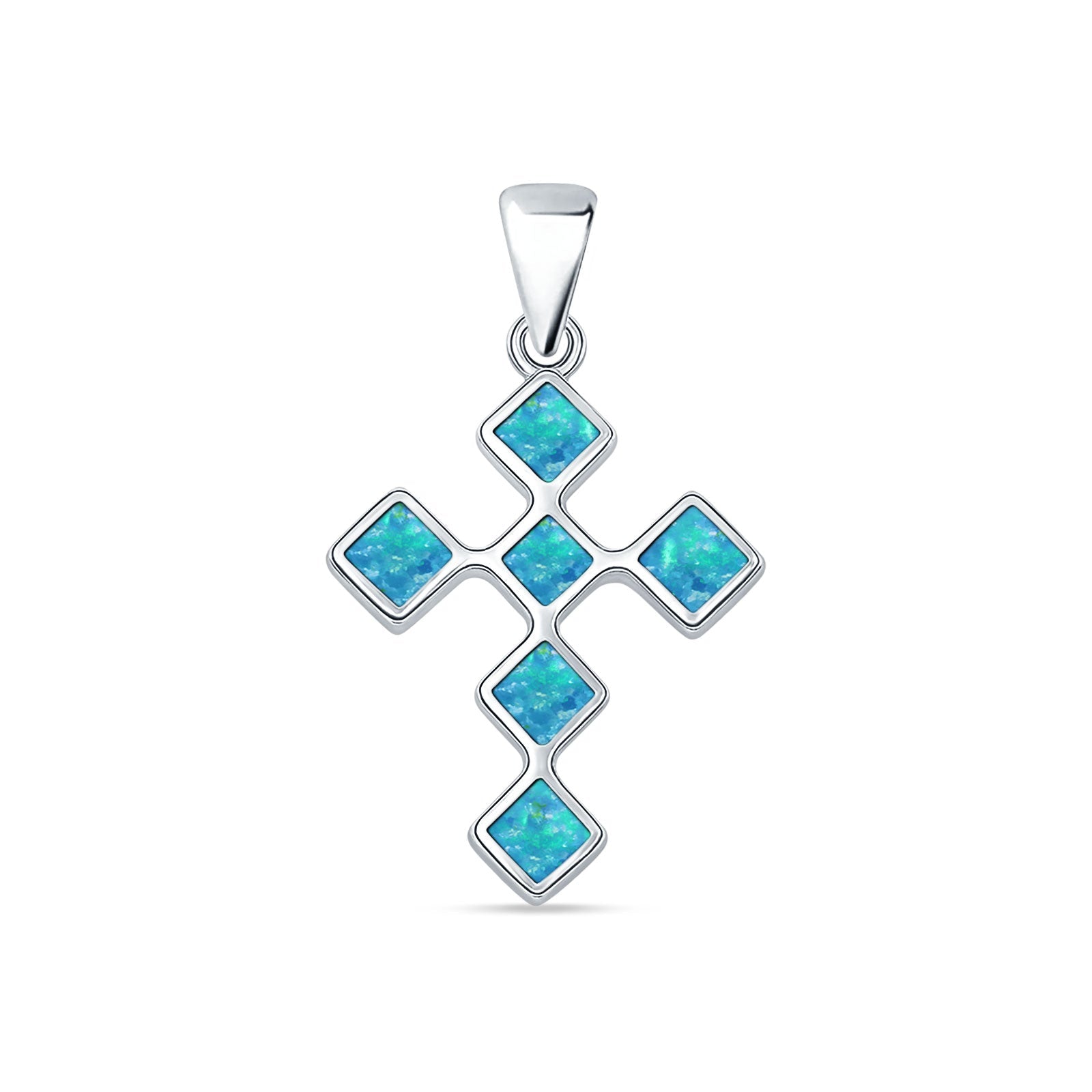 Style: Lab Created Blue Opal Cross Pendant Necklace