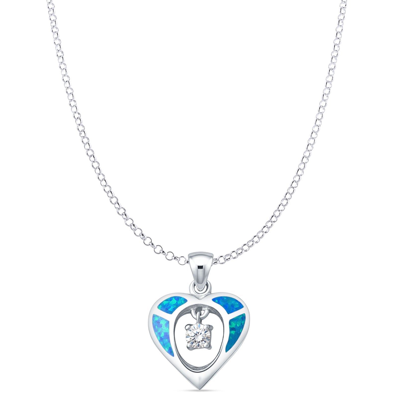 Style: Lab Created Blue Opal & CZ Heart Charm Pendant Necklace