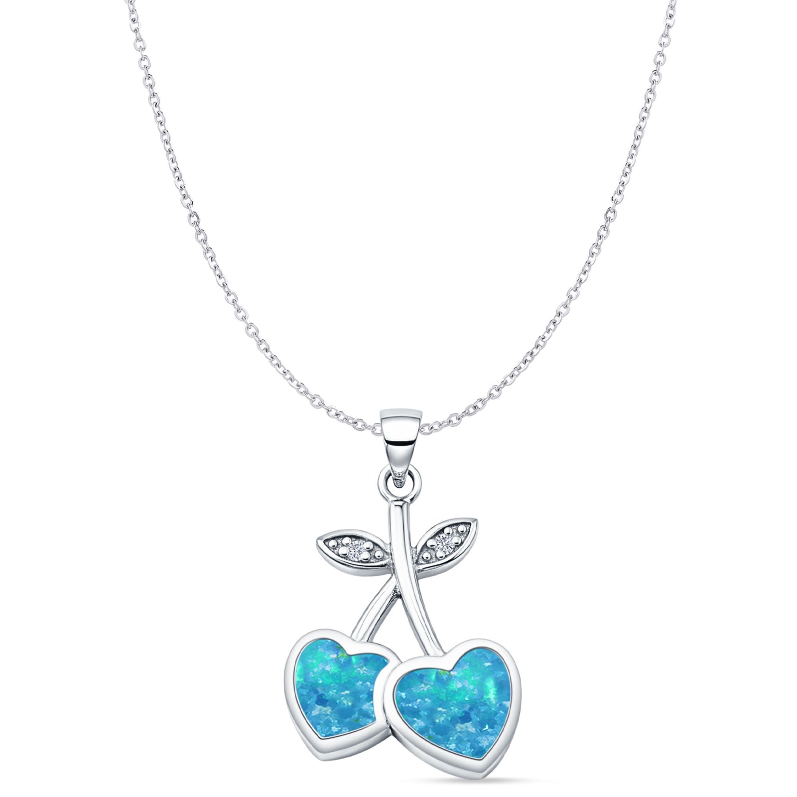 Style: Lab Created Blue Opal & CZ Heart Pendant Necklace