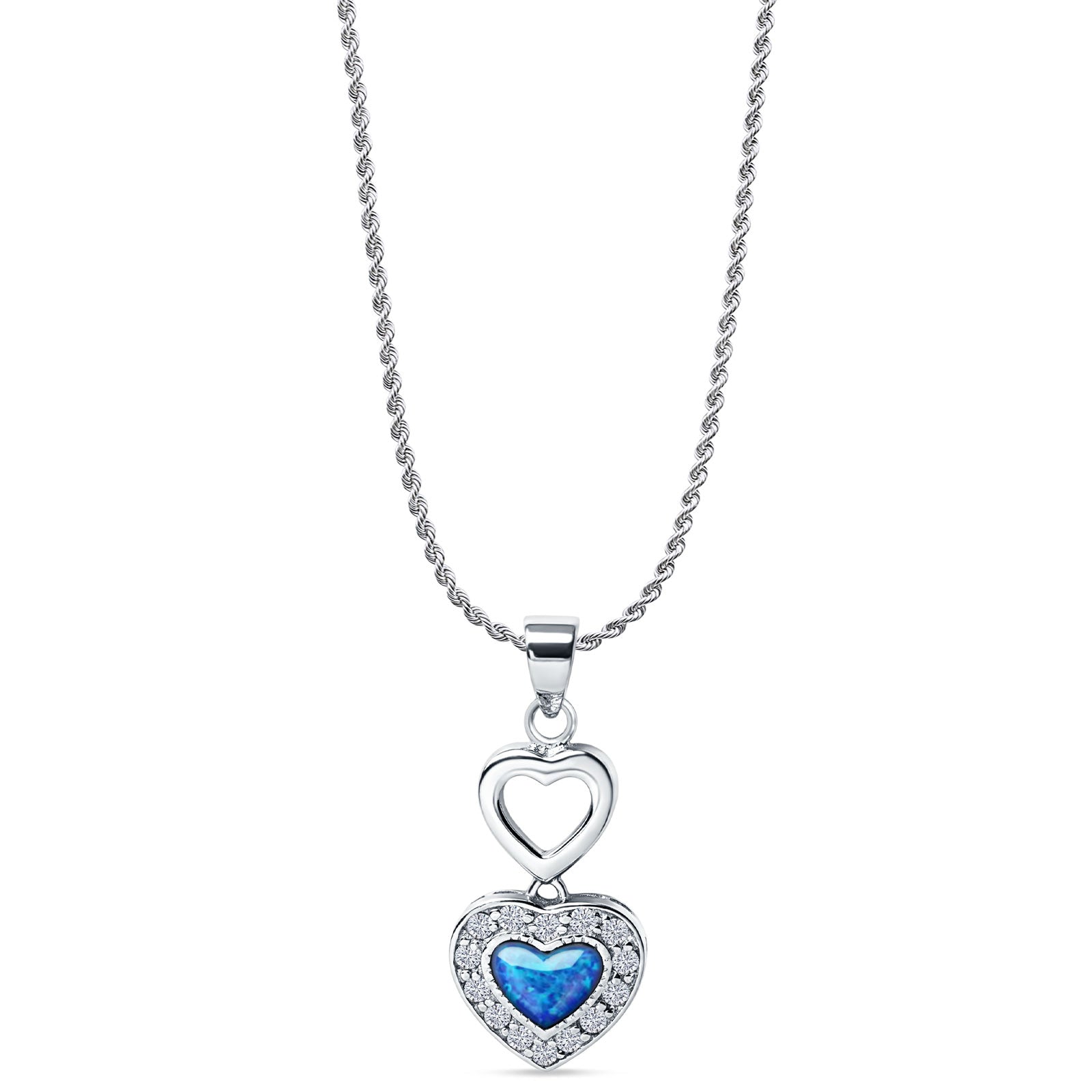 Style: Lab Created Blue Opal & CZ Heart Pendant Necklace