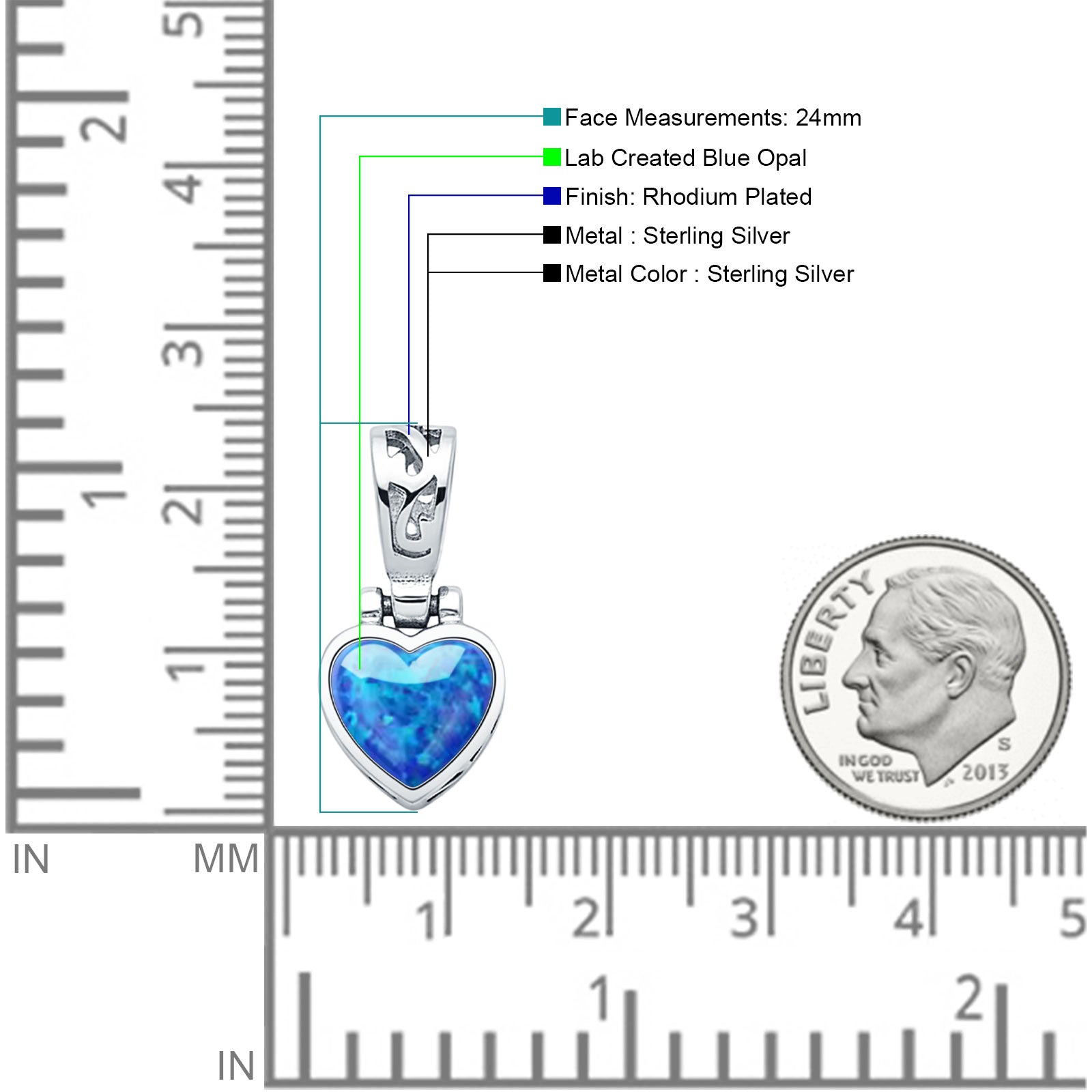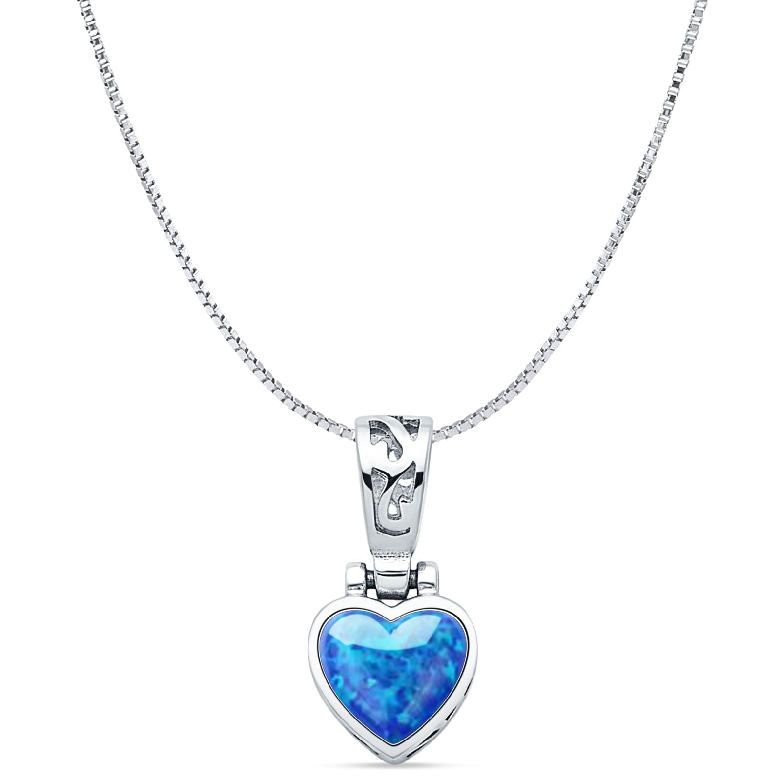 Lab Created Blue Opal Heart Pendant Box Chain Necklace 925 Sterling Silver