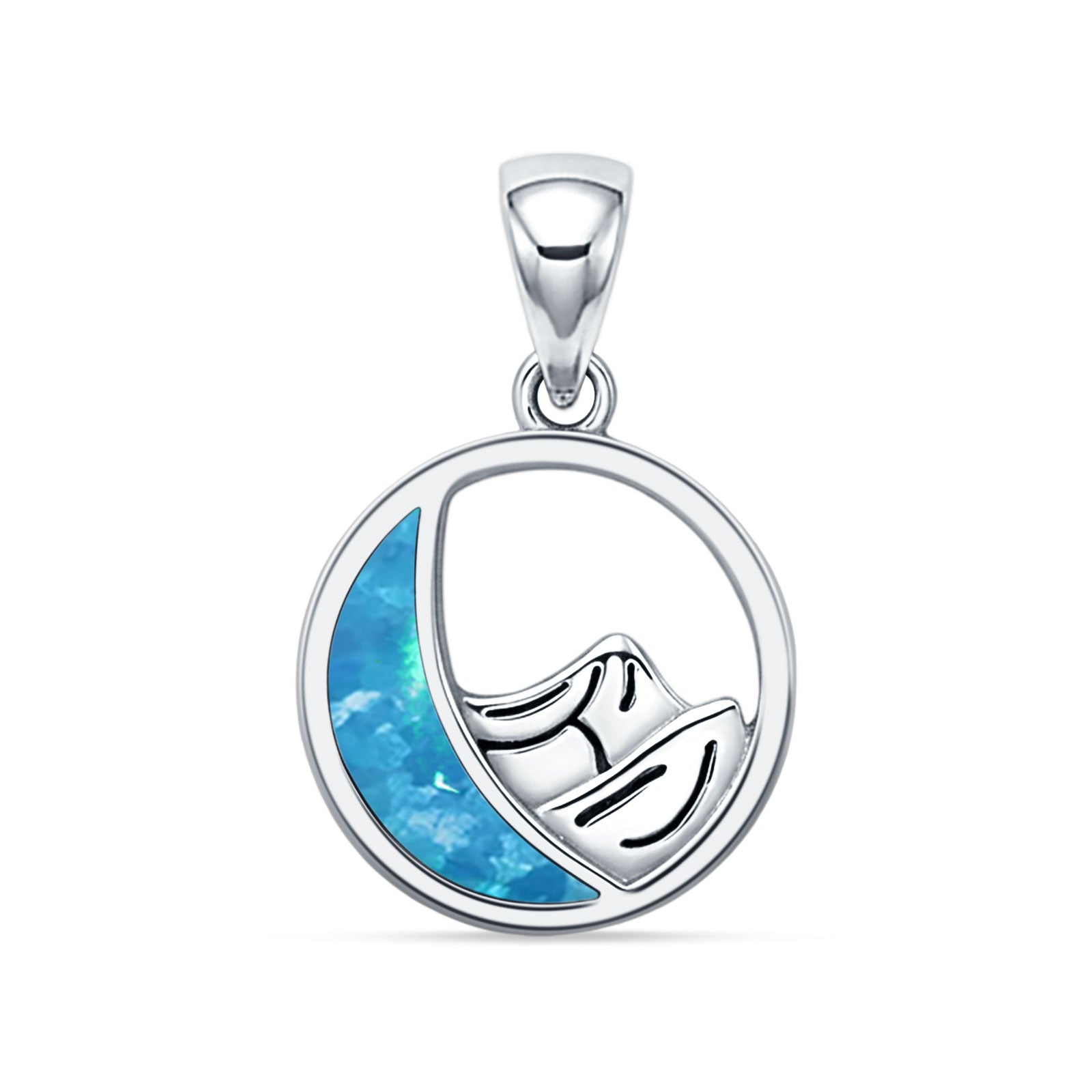 Style: Lab Created Blue Opal Oxidized Mountains Pendant Necklace
