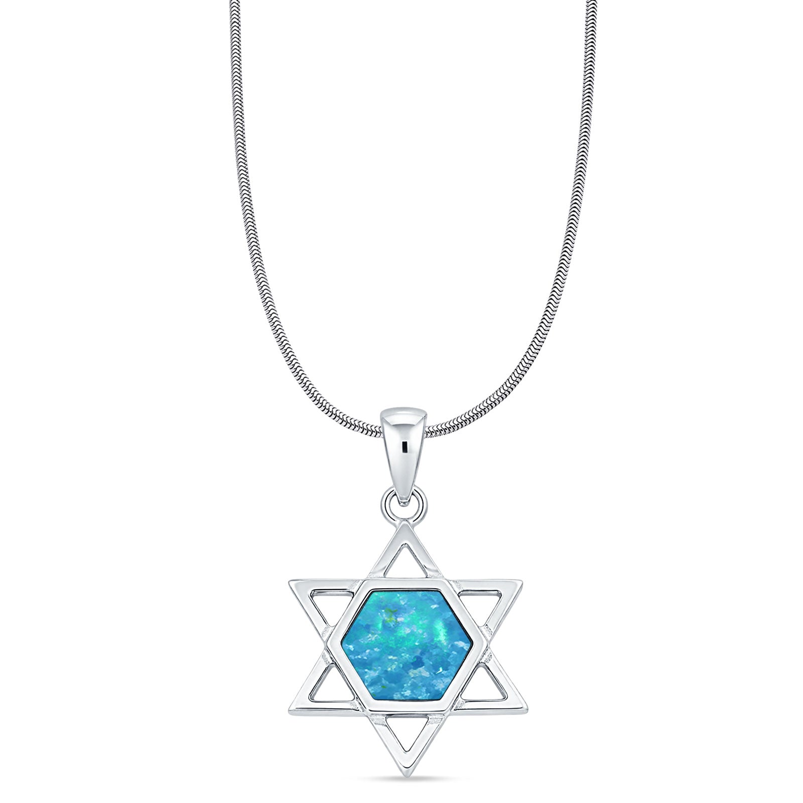 Style: Lab Created Blue Opal Star Of David Pendant Necklace