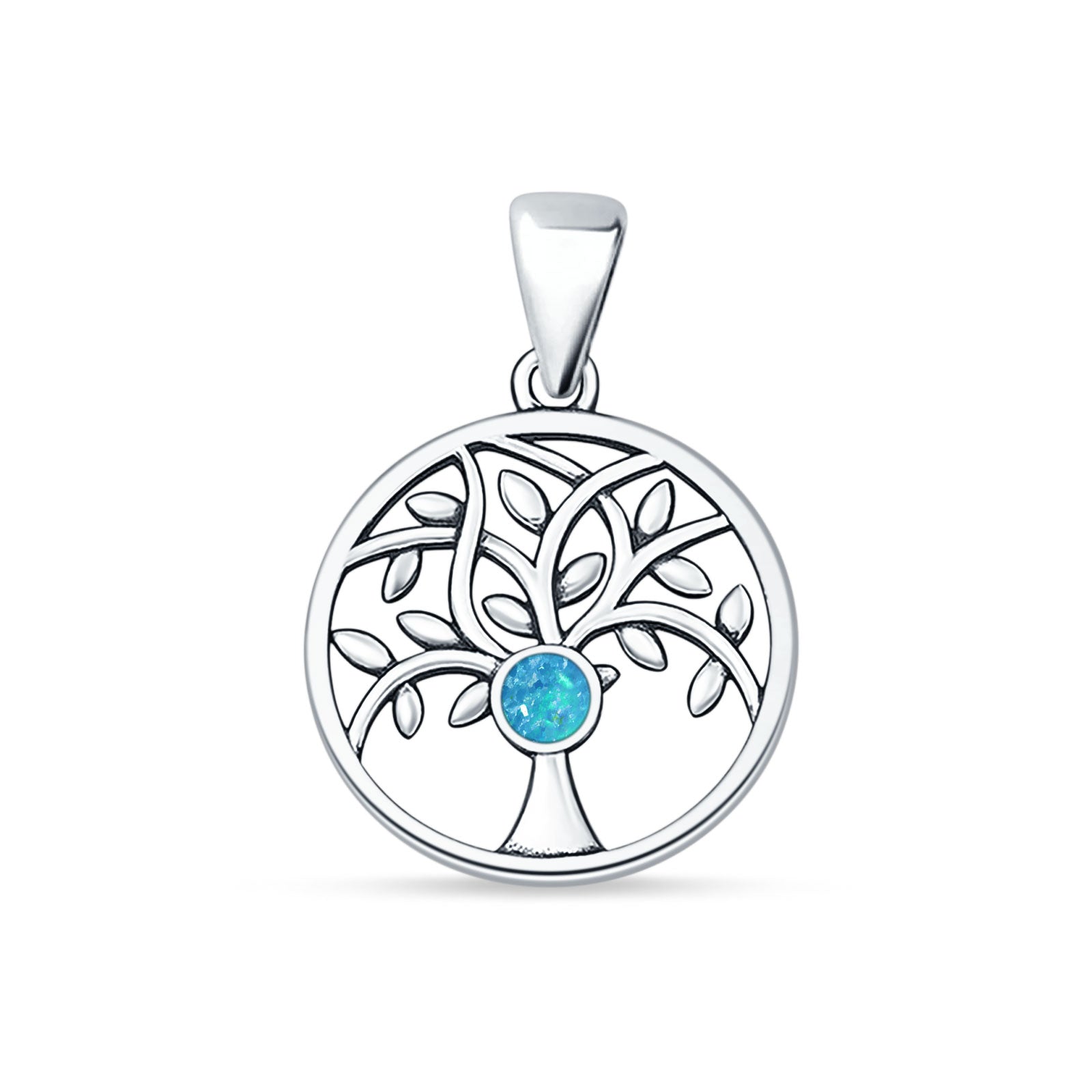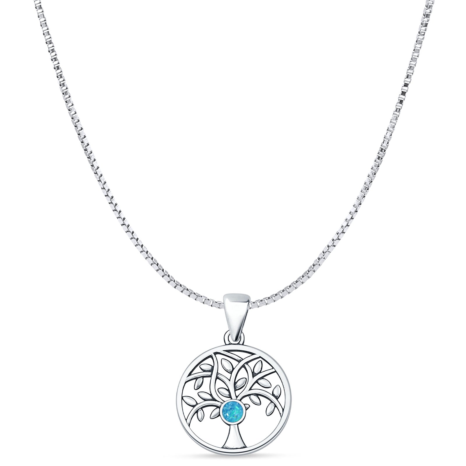 Style: Lab Created Blue Opal Tree Of Life Pendant Necklace