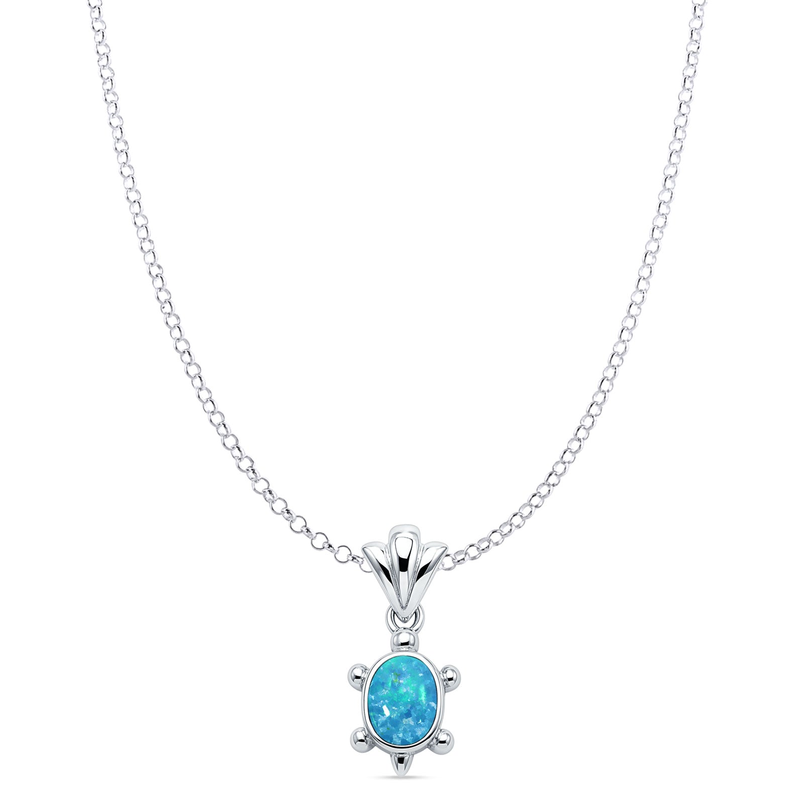 Style: Lab Created Blue Opal Turtle Pendant Necklace
