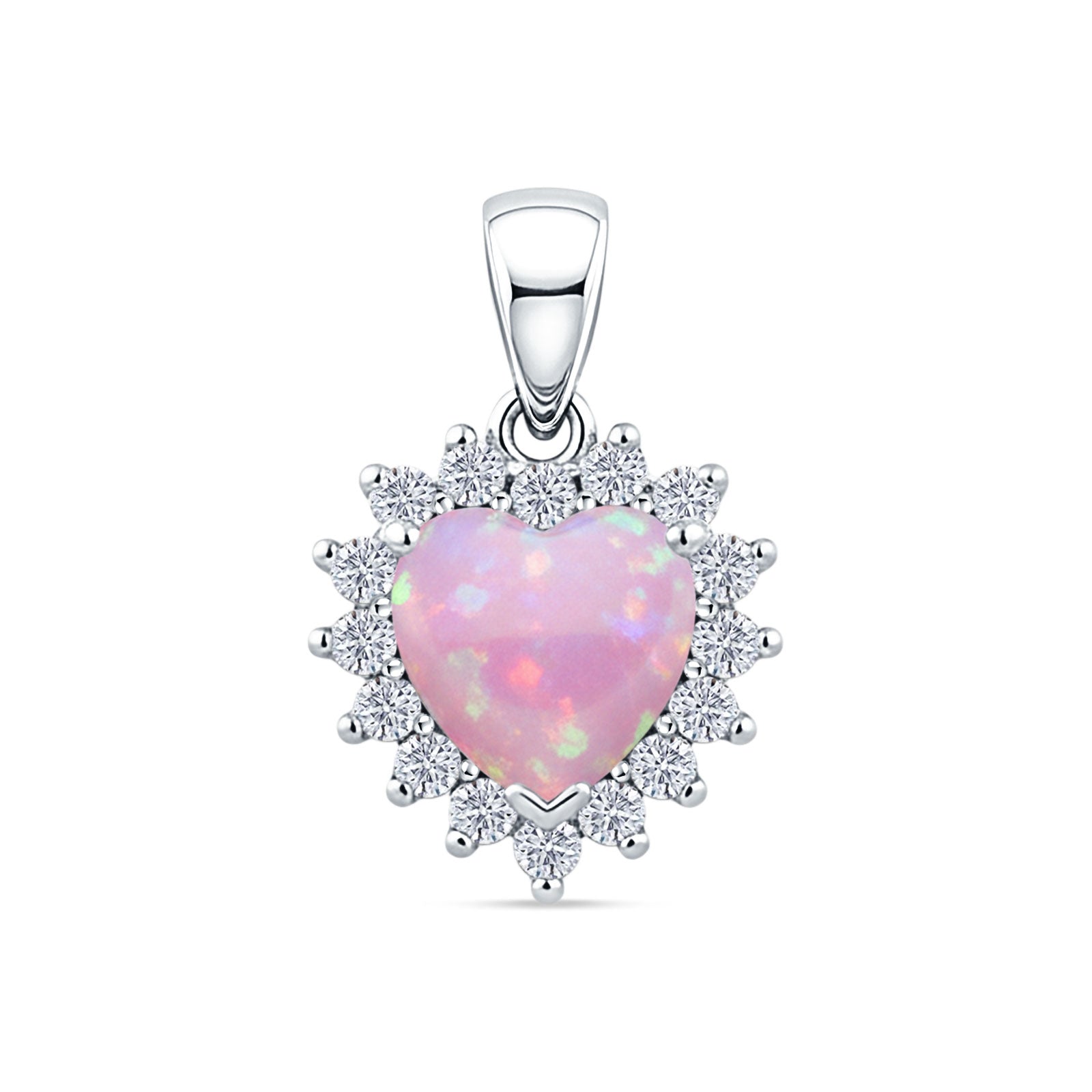 Style: Lab Created Pink Opal & CZ Heart Pendant Necklace