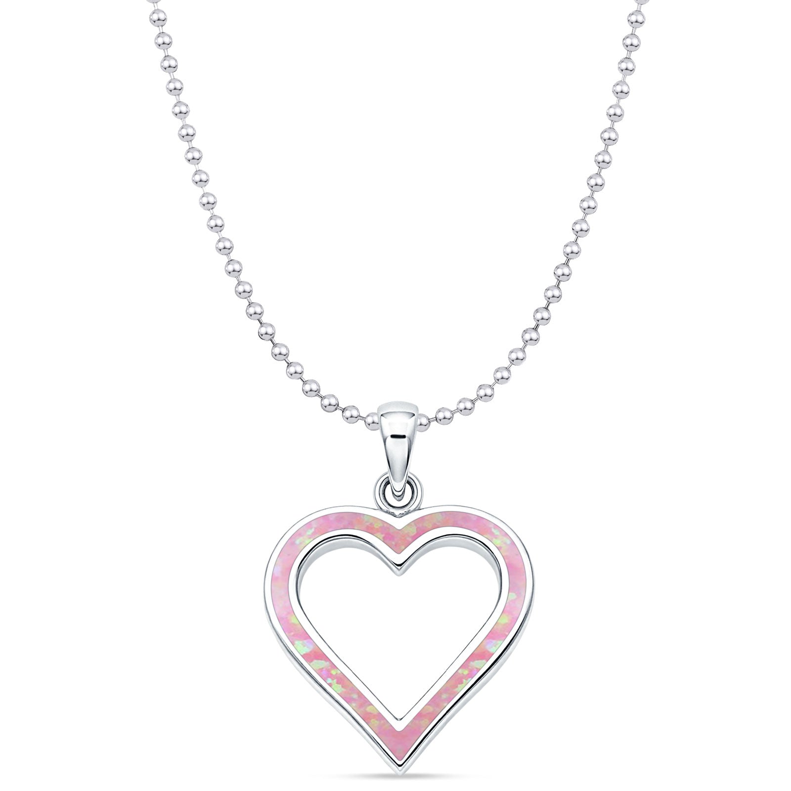 Style: Lab Created Pink Opal Heart Pendant Necklace