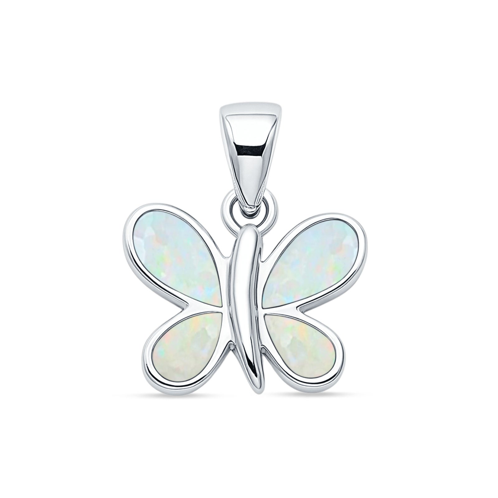 Style: Lab Created White Opal Butterfly Pendant Necklace