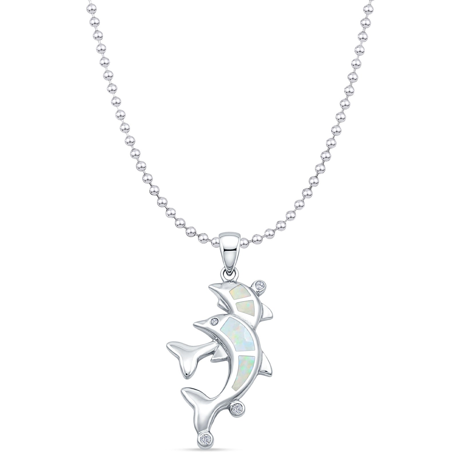 Style: Lab Created White Opal & CZ Dolphins Pendant Necklace