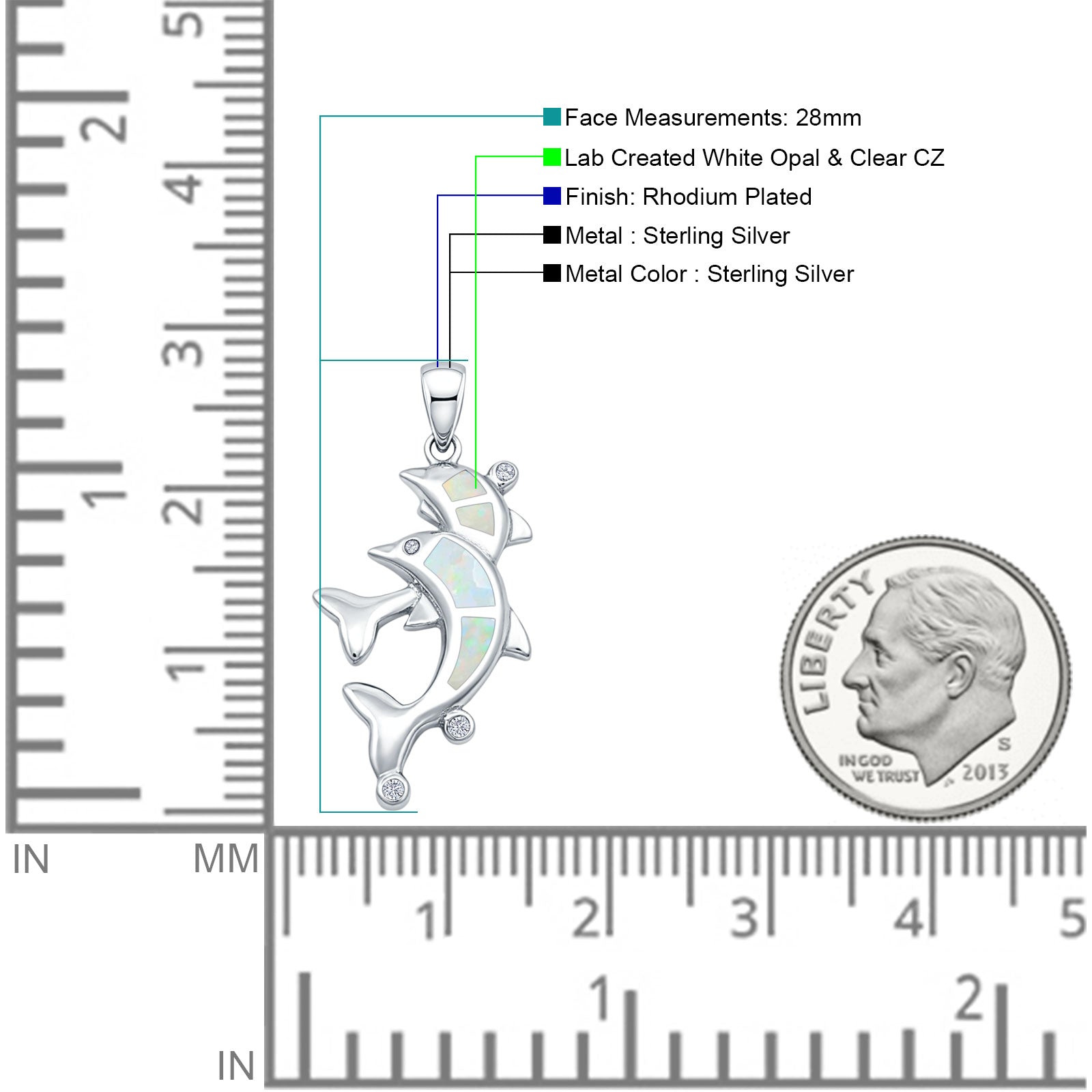 Lab Created White Opal & CZ Dolphins Pendant Rope Chain Necklace 925 Sterling Silver