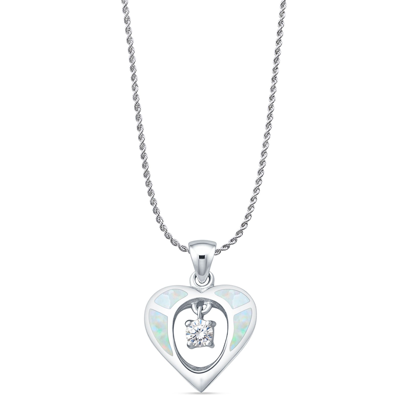 Style: Lab Created White Opal & CZ Heart Pendant Necklace