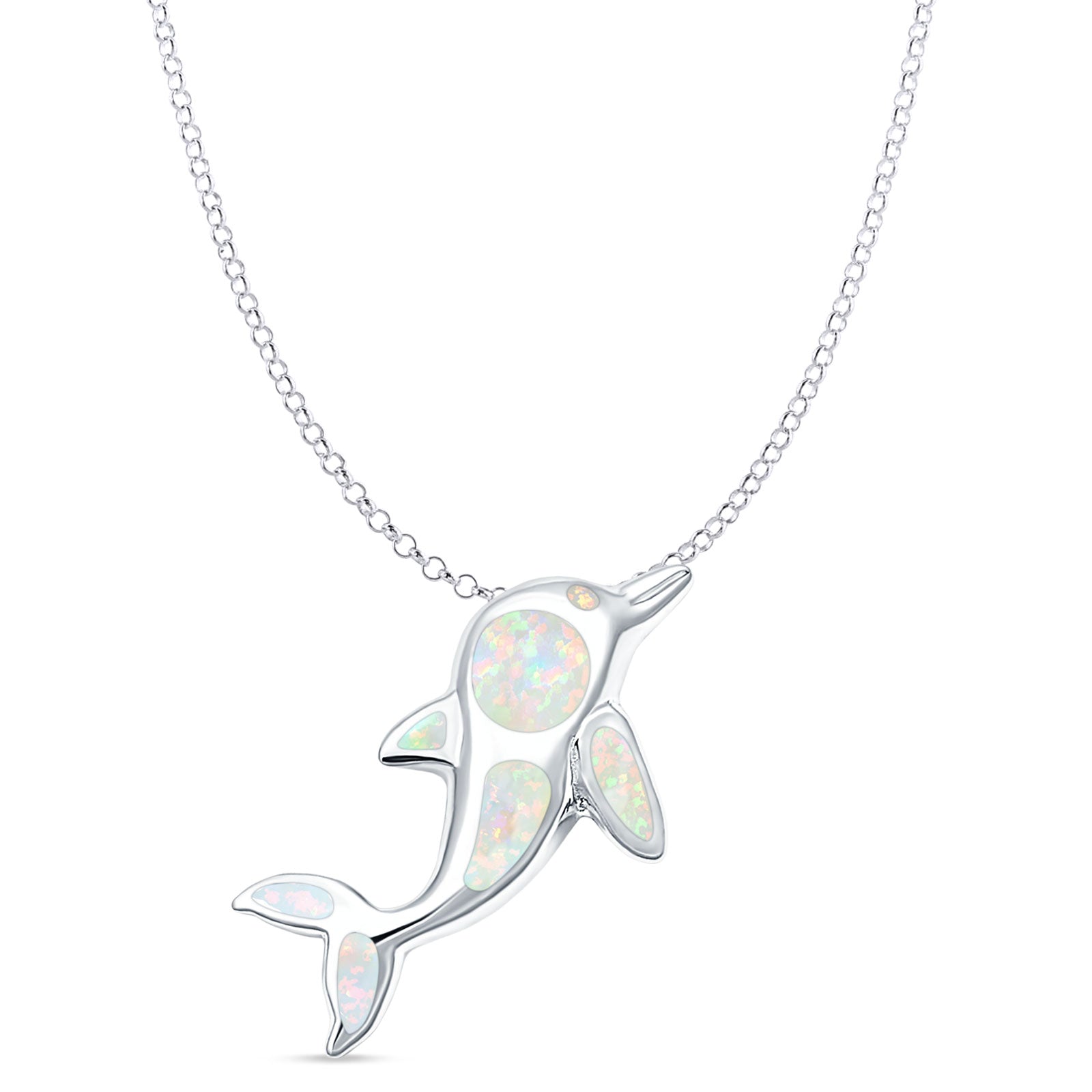 Style: Lab Created White Opal Dolphin Pendant Necklace