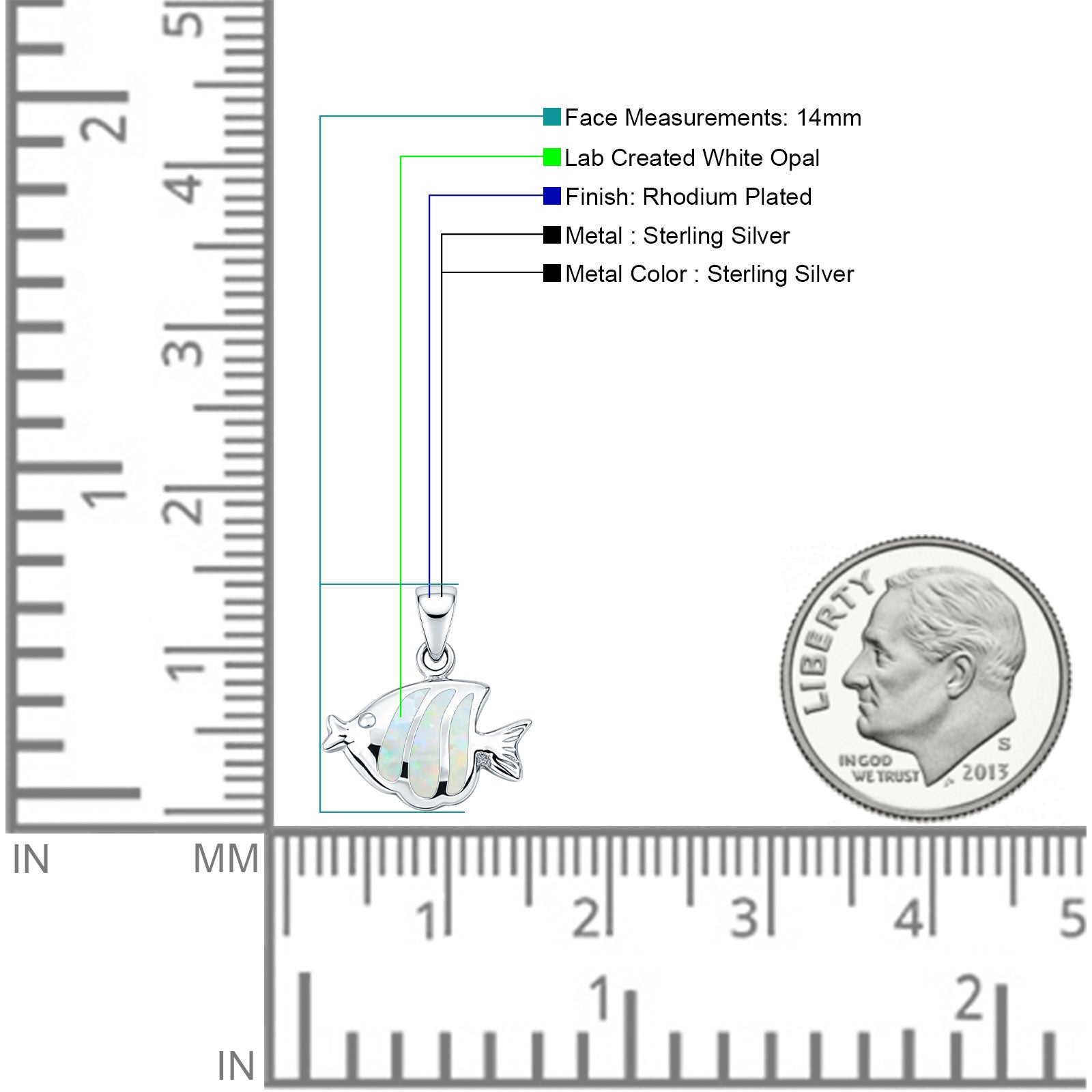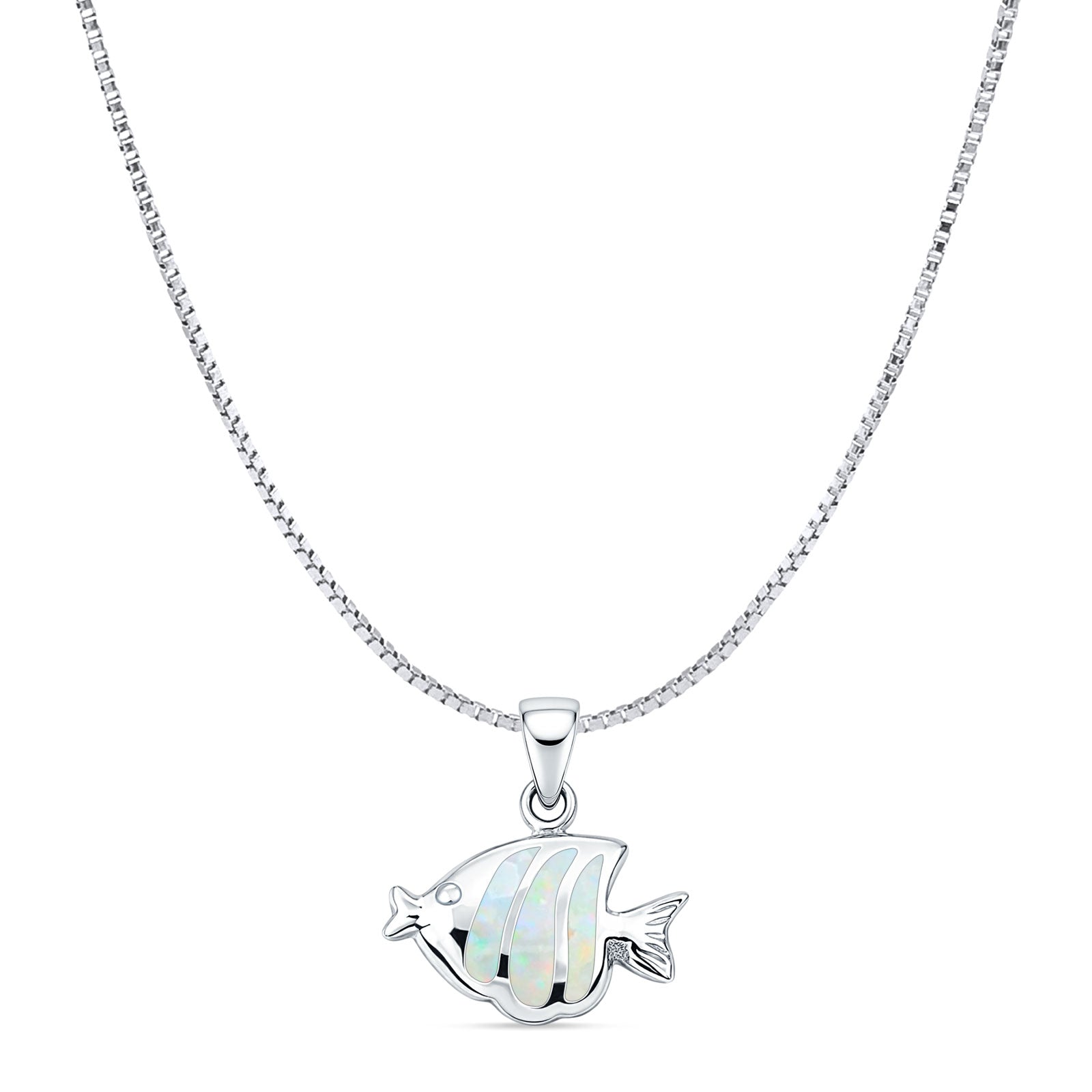 Lab Created White Opal Fish Pendant Box Chain Necklace 925 Sterling Silver