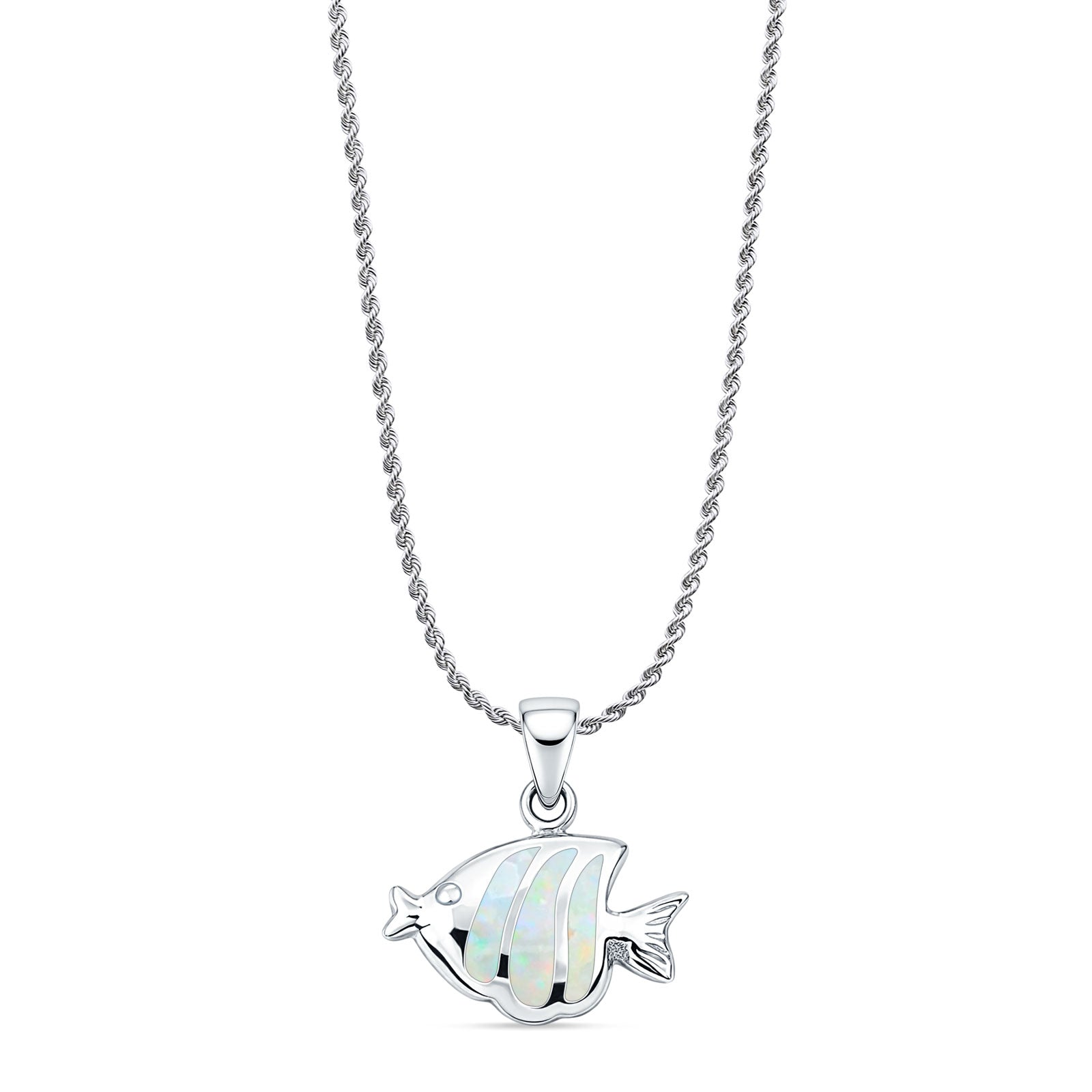Style: Lab Created White Opal Fish Pendant Necklace