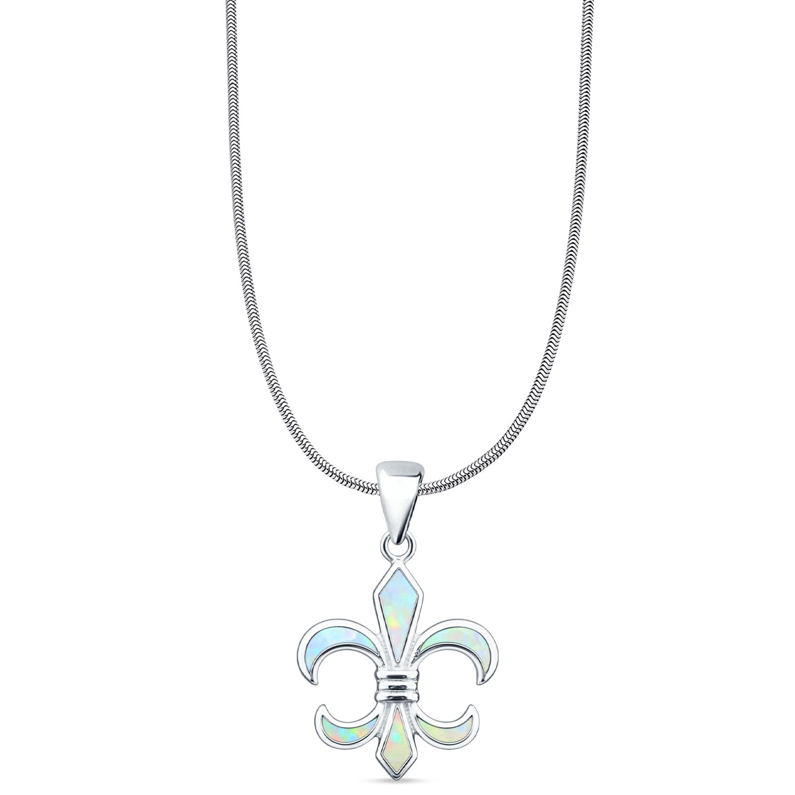 Style: Lab Created White Opal Fleur De Lis Pendant Necklace
